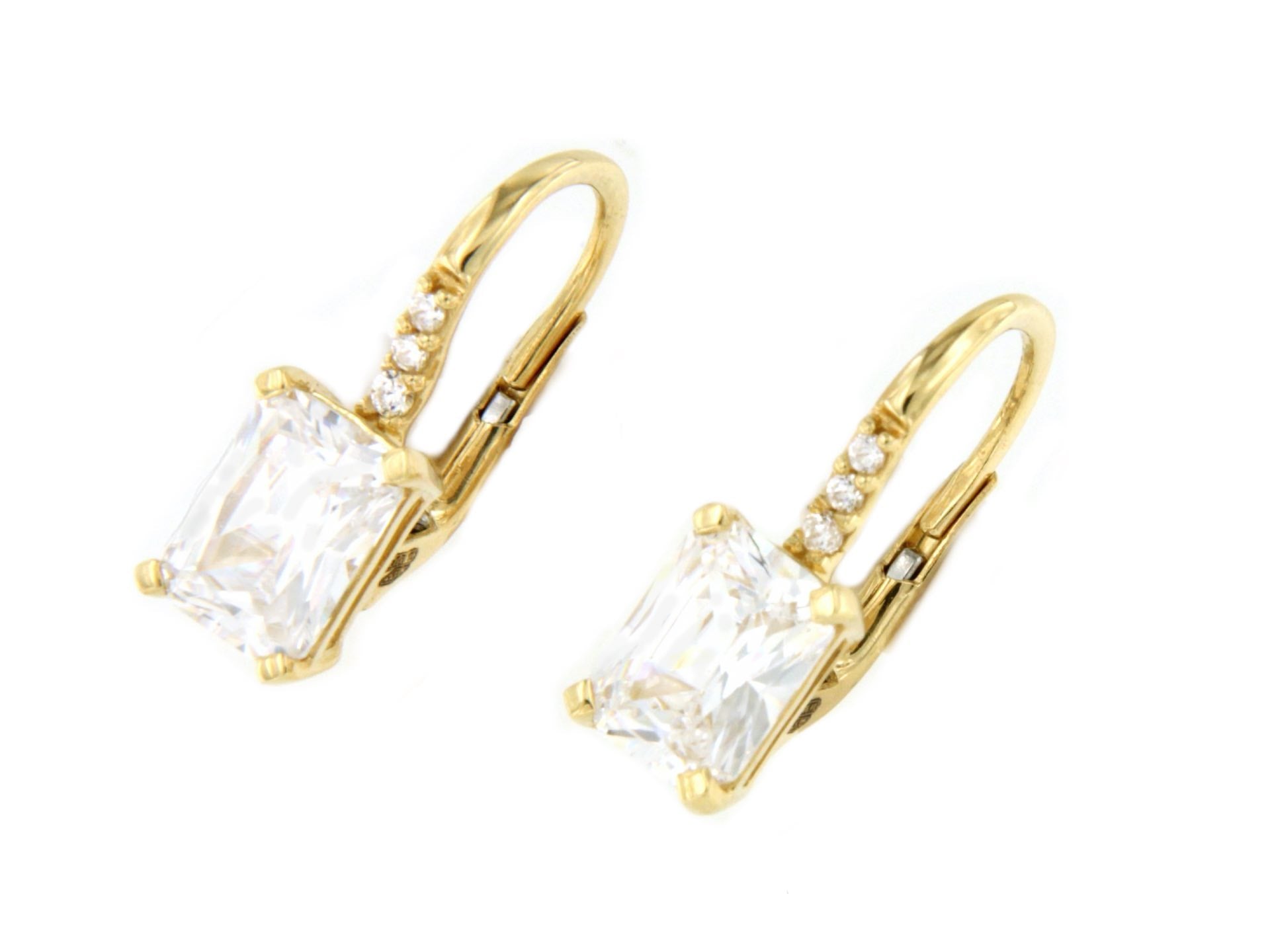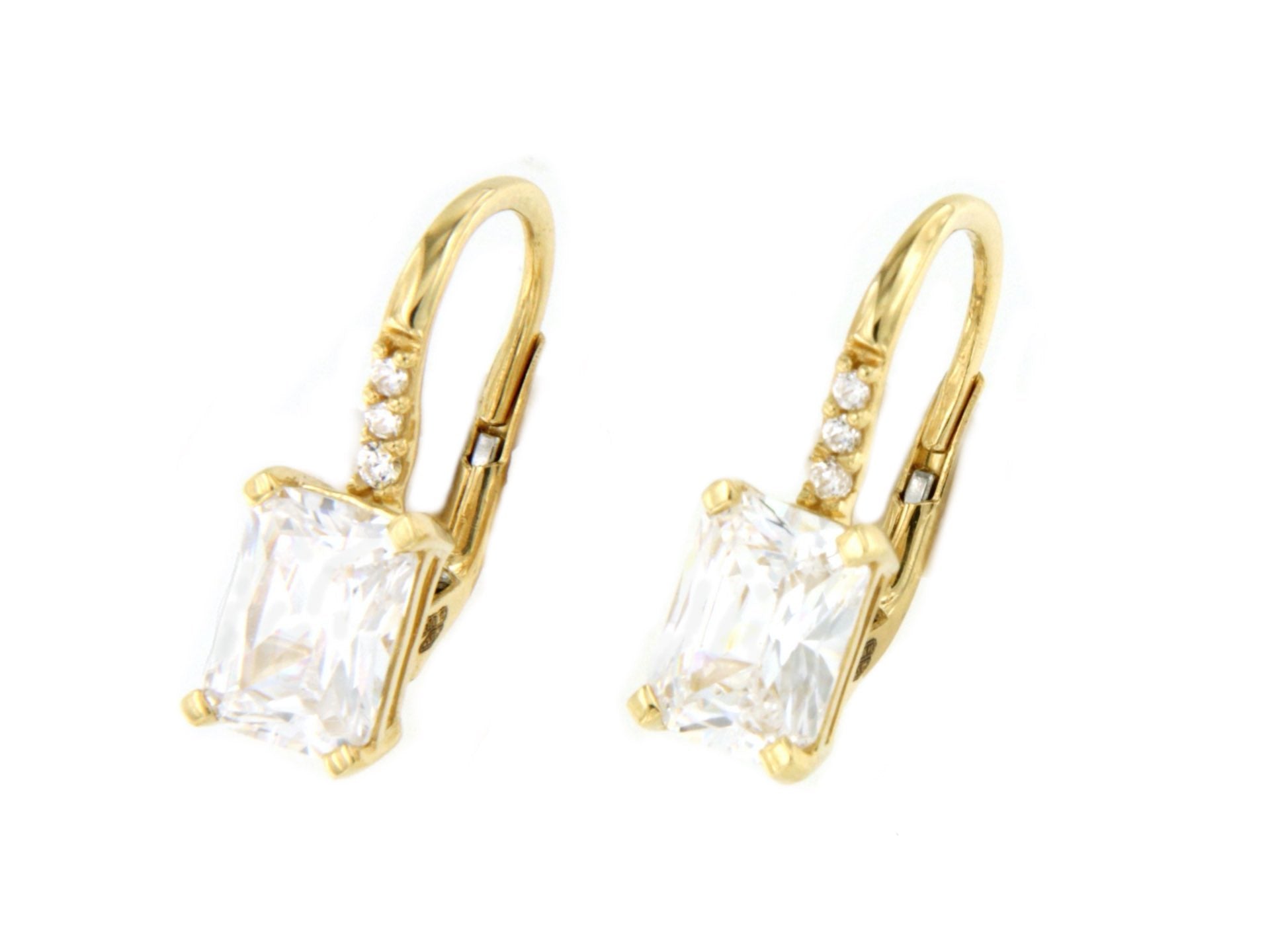 BELMONTE , 18-karat yellow gold earrings with an emerald-cut cubic zirconia center and cubic zirconias on the Catalan lever-back body.