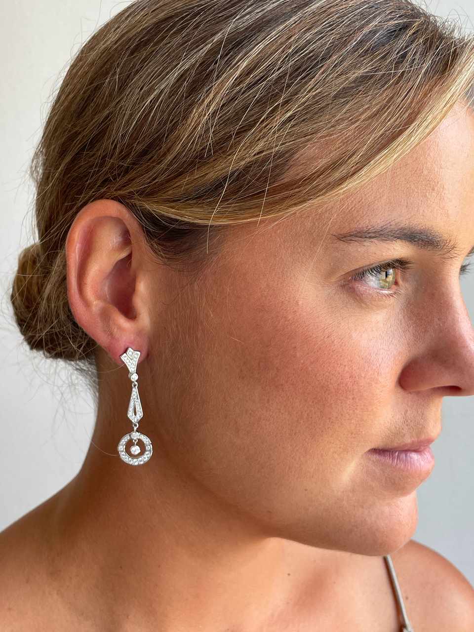The BUDAPEST earrings are a piece of jewelry inspired by the art deco style, ideal for brides looking for an elegant and vintage touch in their look.