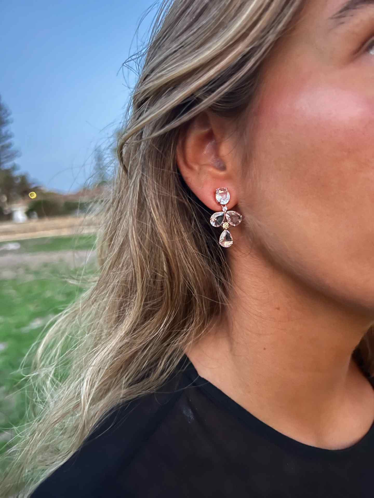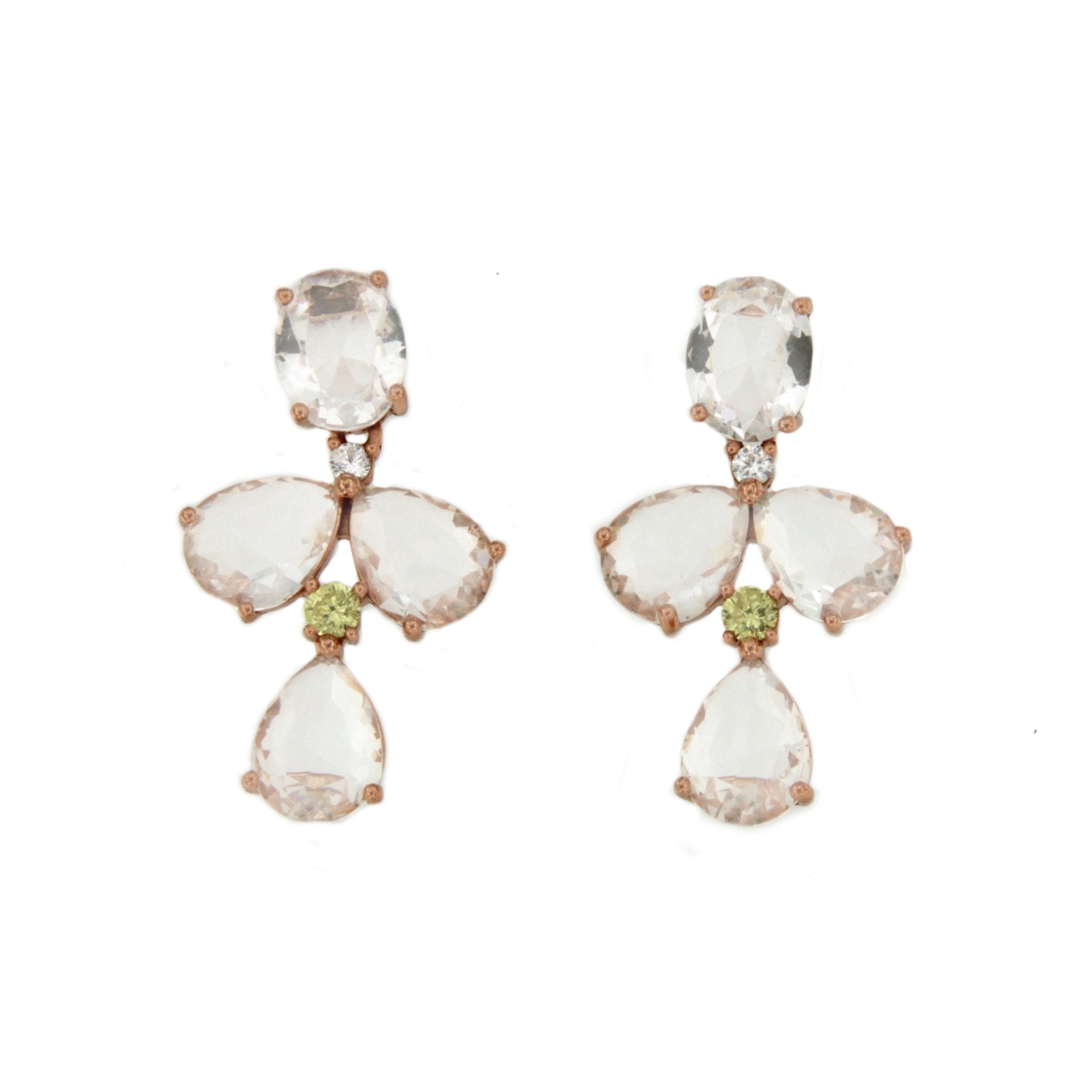 Quarry earrings in sterling silver plated with rose gold and quartz crystals