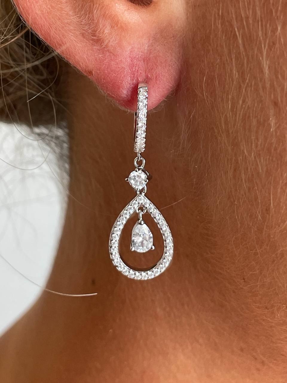 Long Corsica earrings in sterling silver with cubic zirconia.