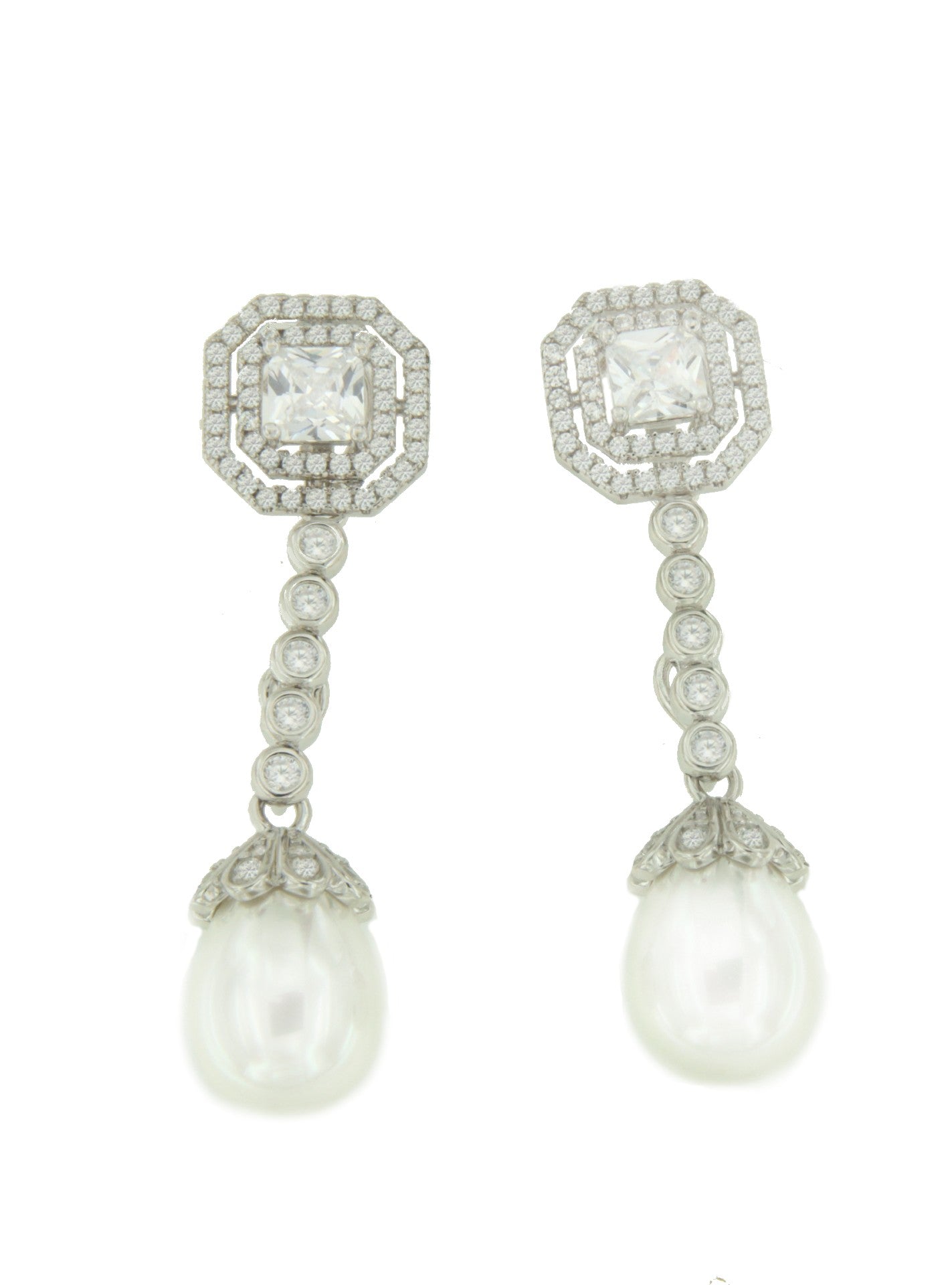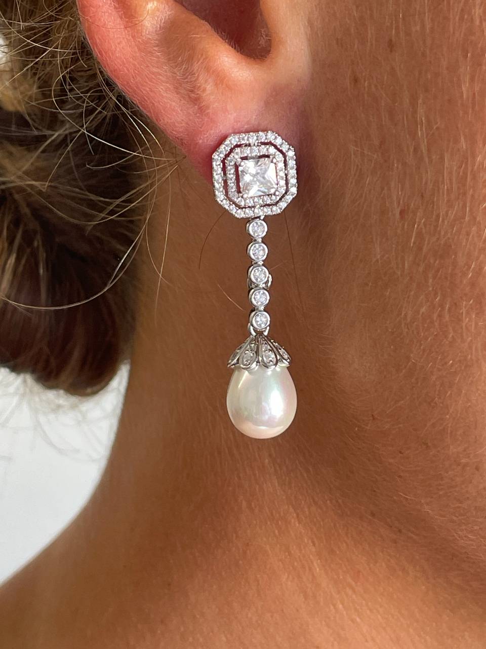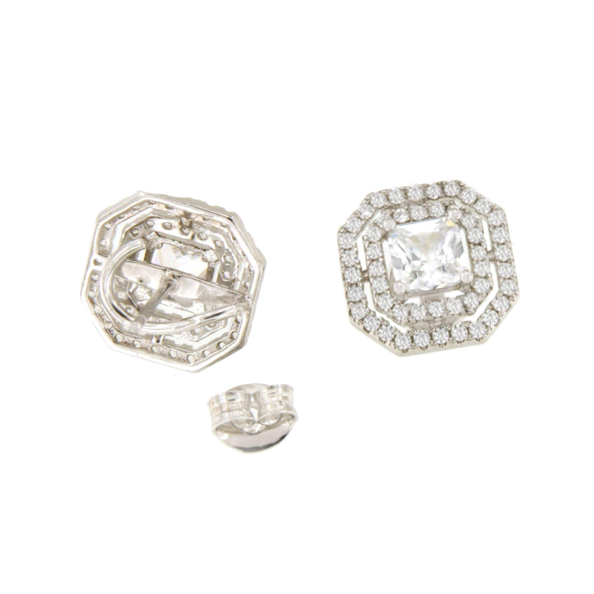 RUSSIA are detachable sterling silver earrings featuring a central cubic zirconia princess surrounded by two halos of cubic zirconia. A simple, square design perfect for everyday wear, ideal for pairing with other accessories and making a statement on any occasion.