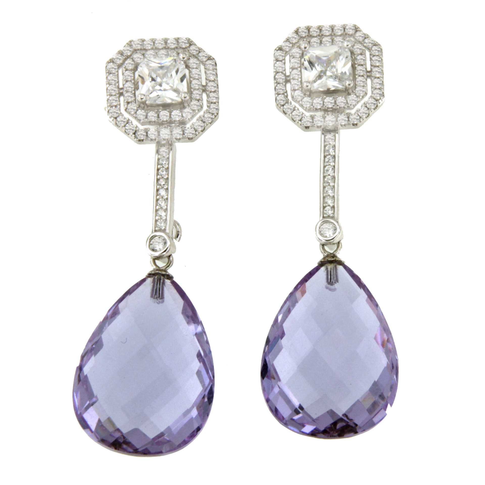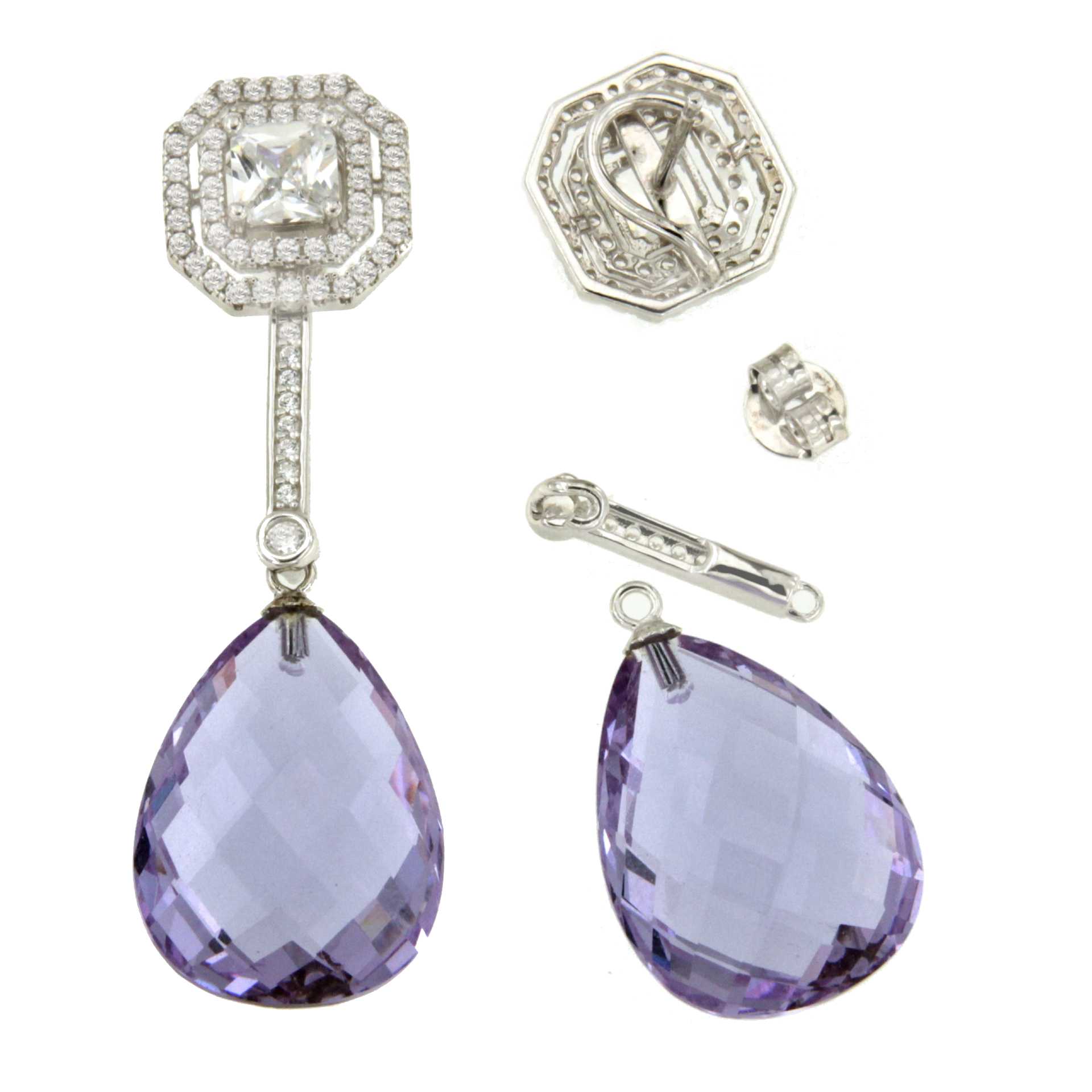 Detachable RUSSIA earrings in silver with cubic zirconia.