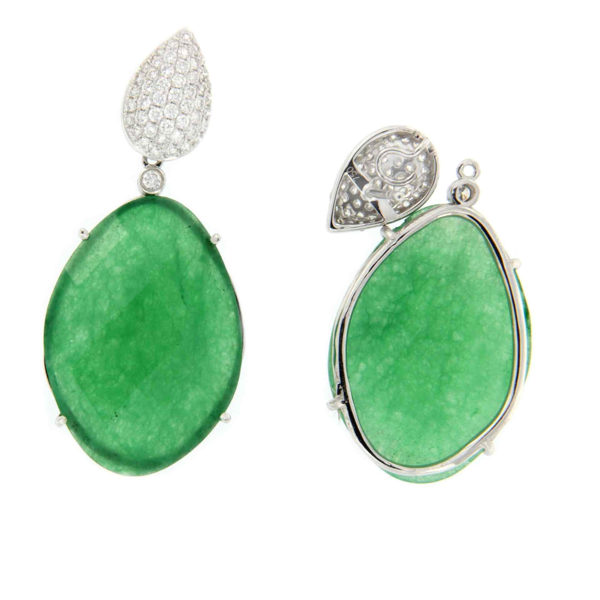 Detachable short earrings in 18K white gold with 98 brilliant-cut diamonds totaling 0.78 carats, pavé-set to form a small teardrop shape. The earring is designed to be worn with a detachable pendant.