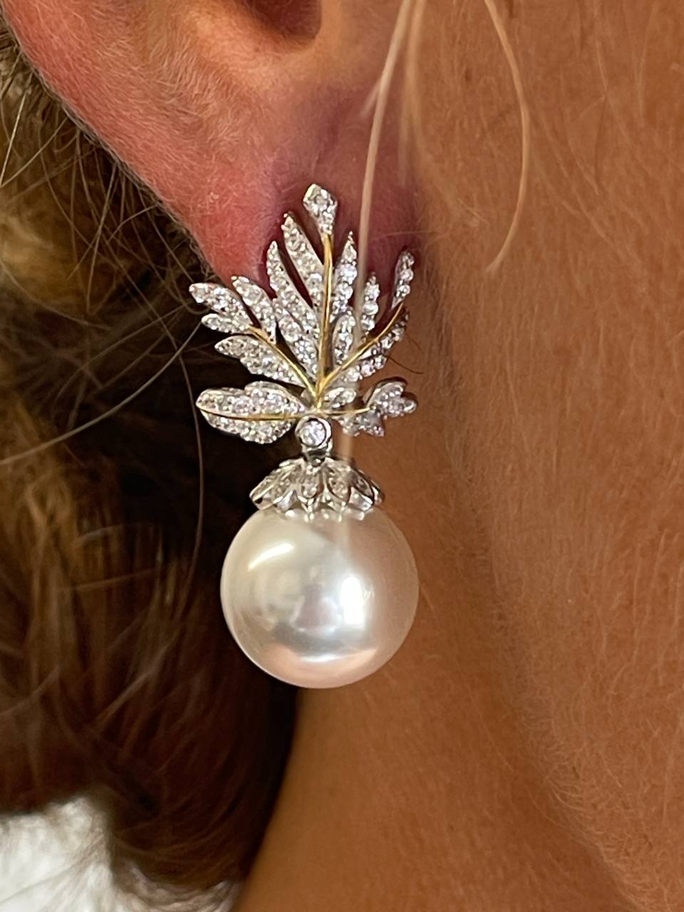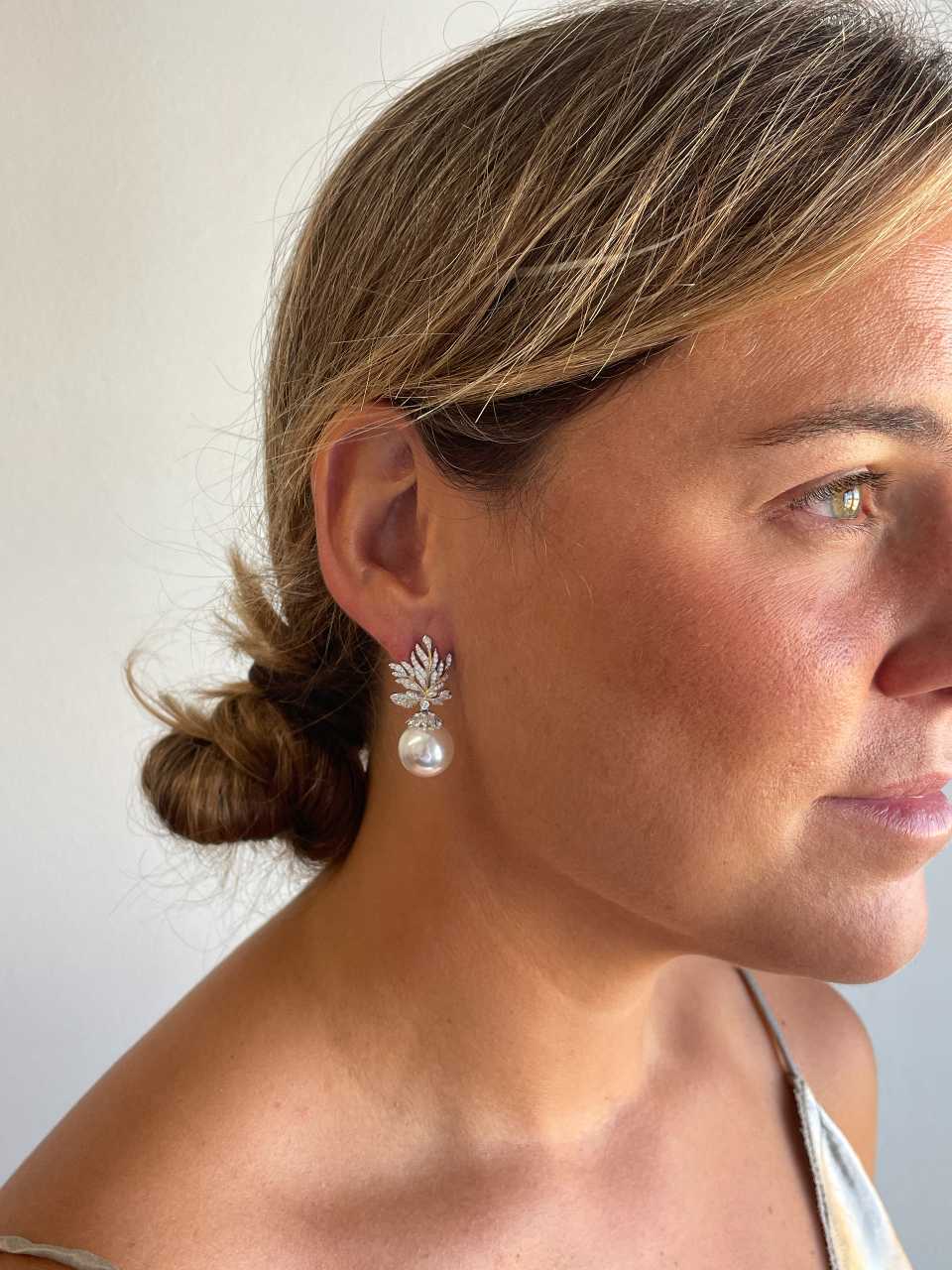 The centerpiece is a beautiful round pearl , considered the must-have accessory of the season. Pearls not only add a classic and refined touch, but they also brighten the face, making them perfect for guests and bridesmaids at special events.