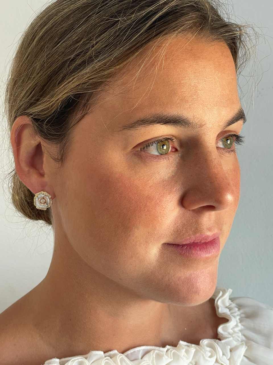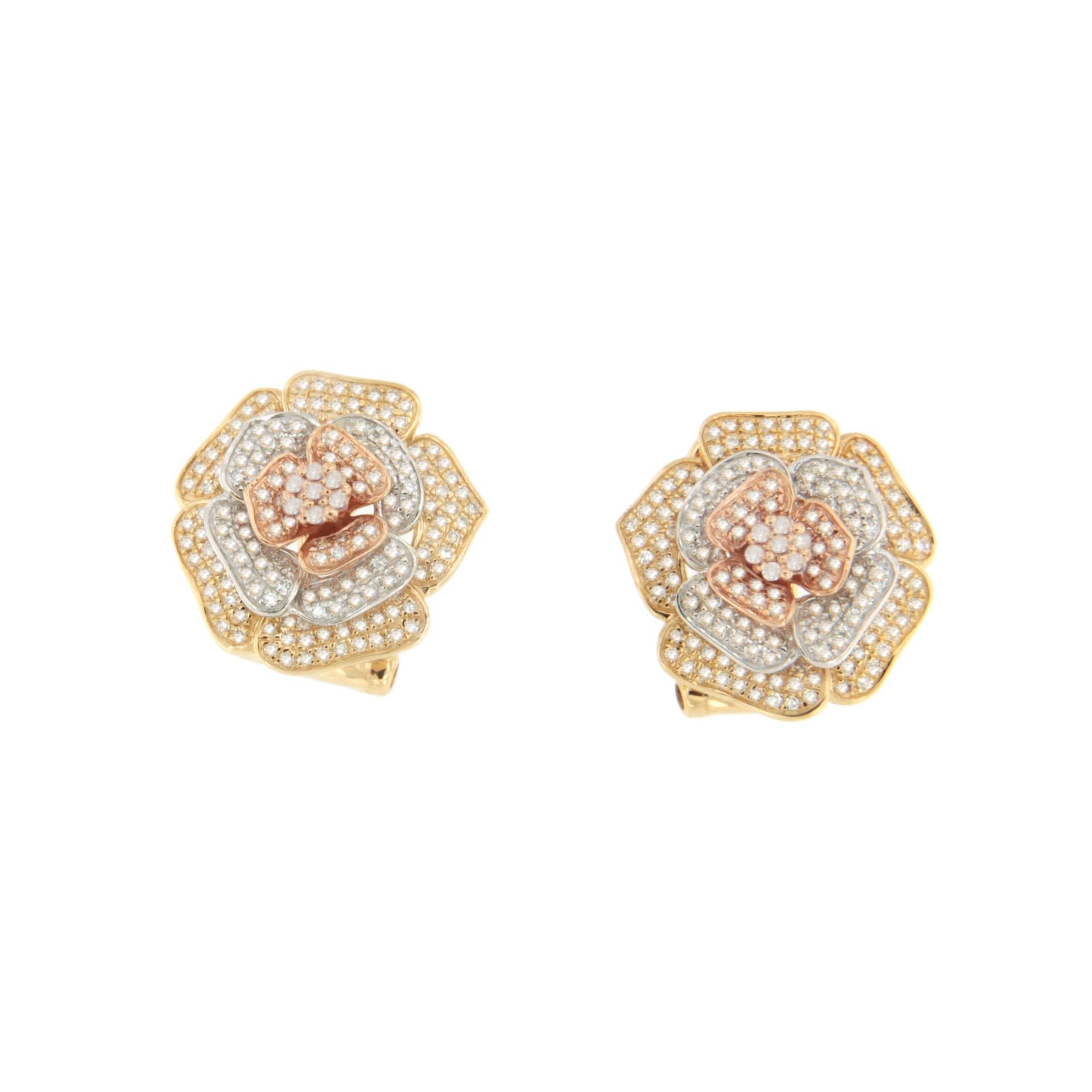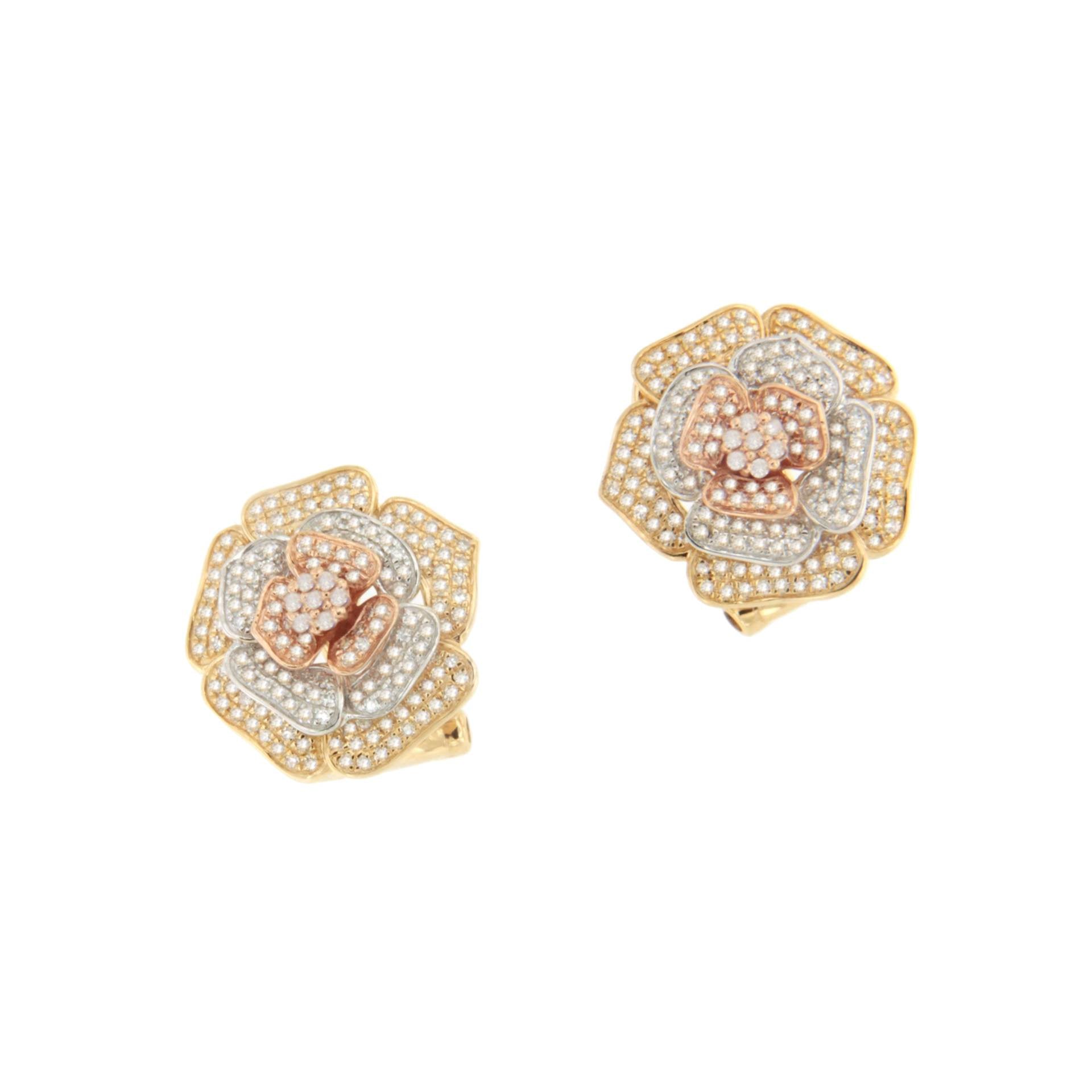 LIMA flower earrings in three colors 18 karat gold with diamond