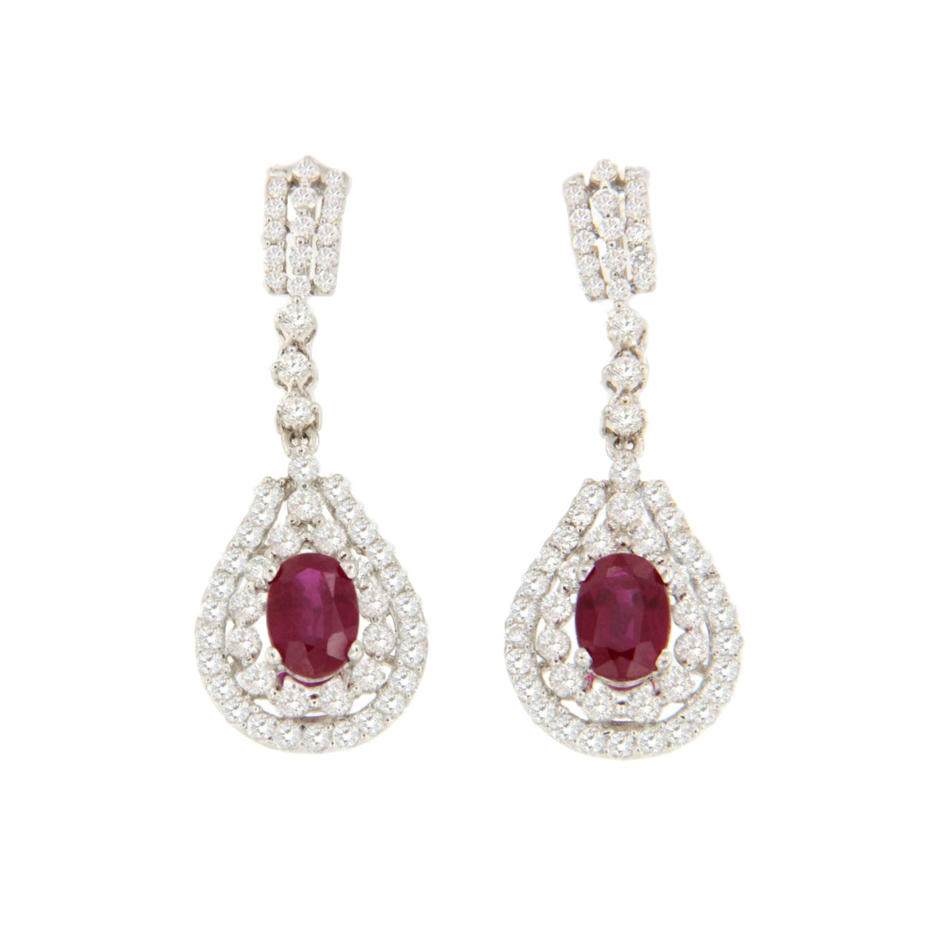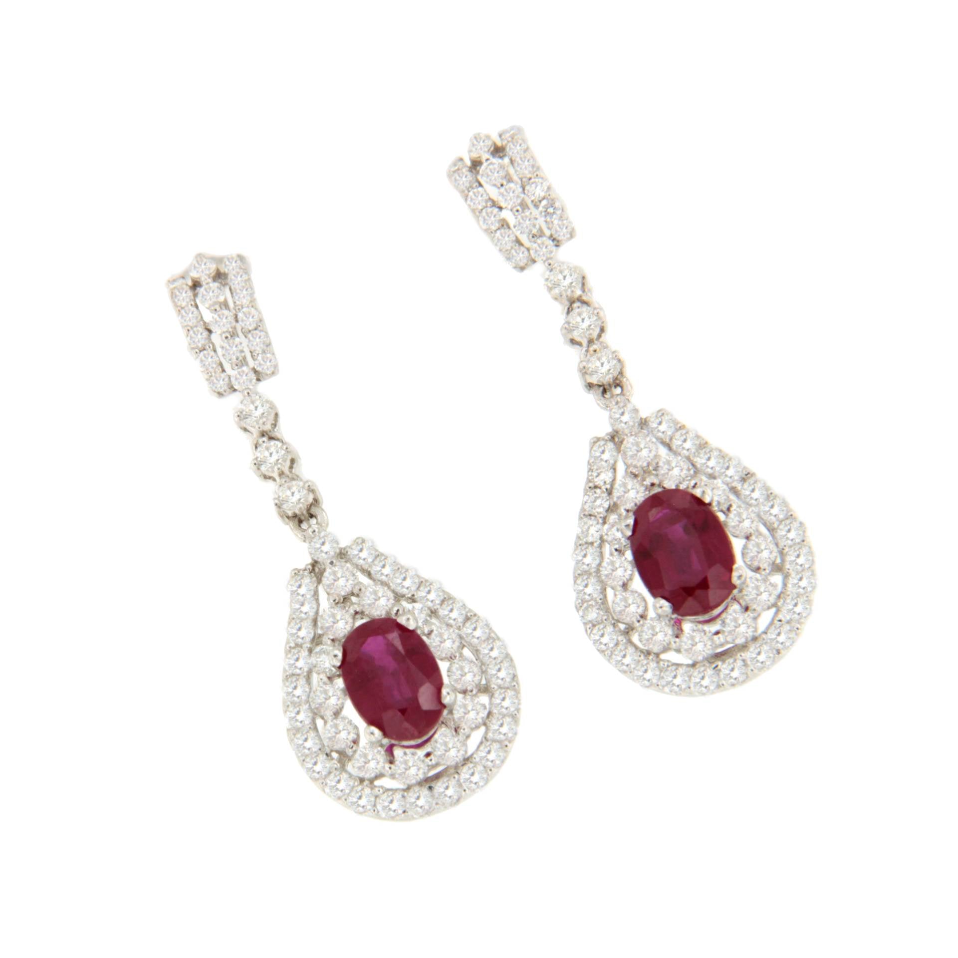 Mandarin long earrings in 18k white gold with rubies and diamonds