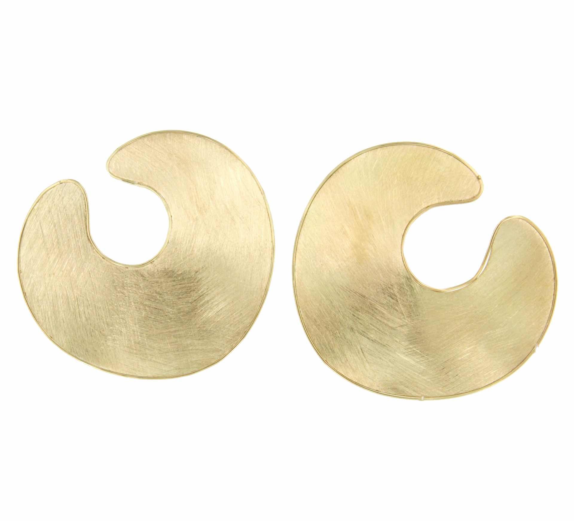 MARGARITA , are large earrings in 18-karat yellow gold with a satin effect that makes them very modern and current .