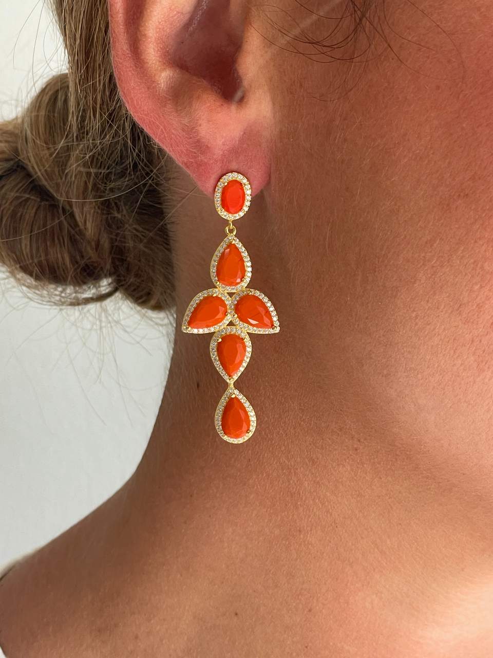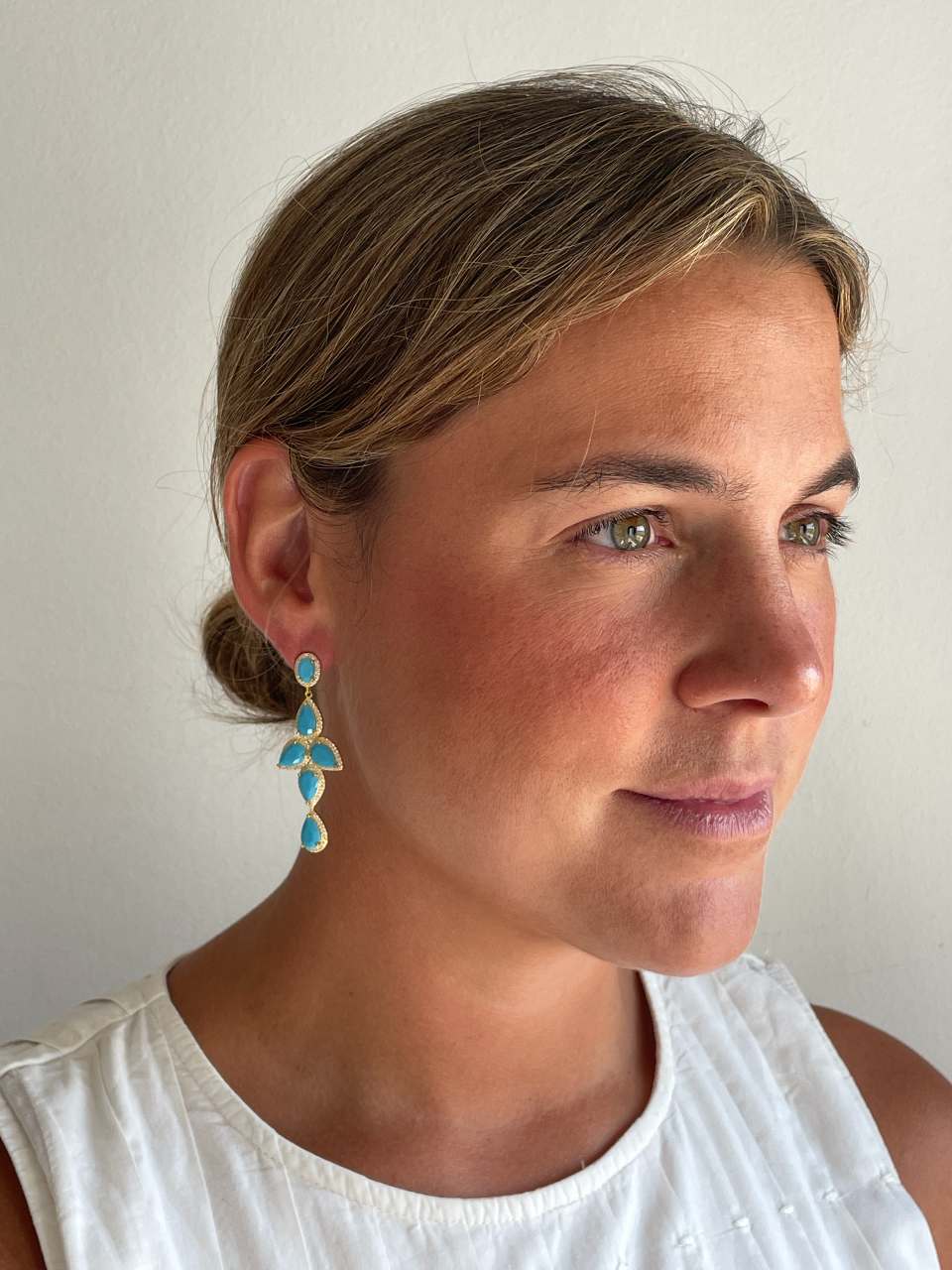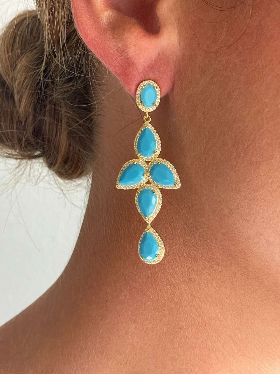 NAIRA is the perfect pair of earrings to elevate any look with a touch of color , elegance, and understated sophistication. With a long, lightweight design, enhanced by a vibrant central stone, they become the ideal accessory for summer days or events where you want to stand out with a fresh yet sophisticated style.