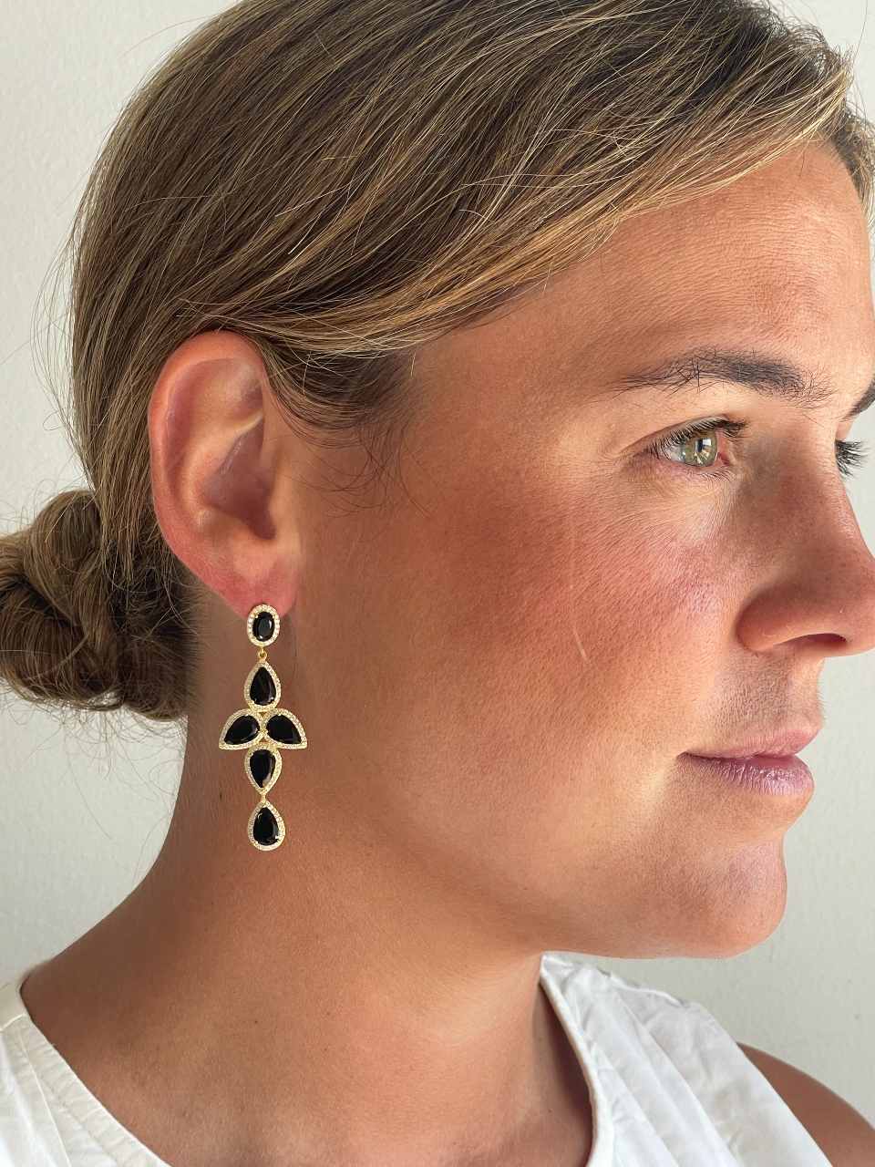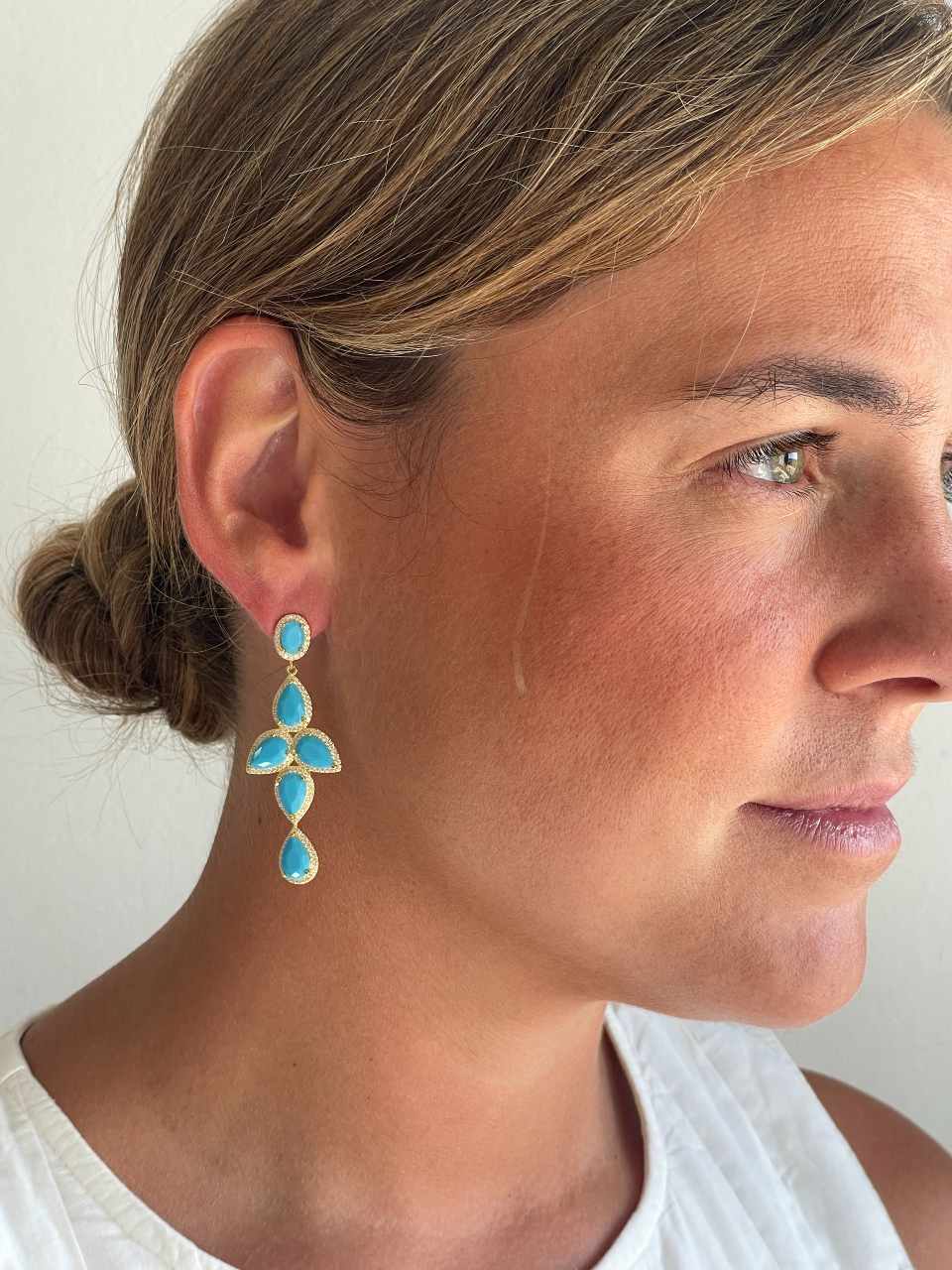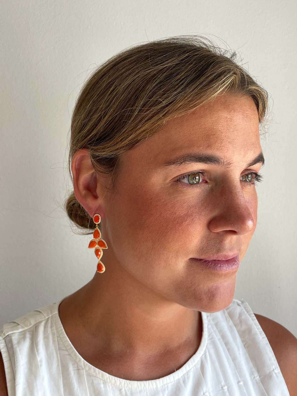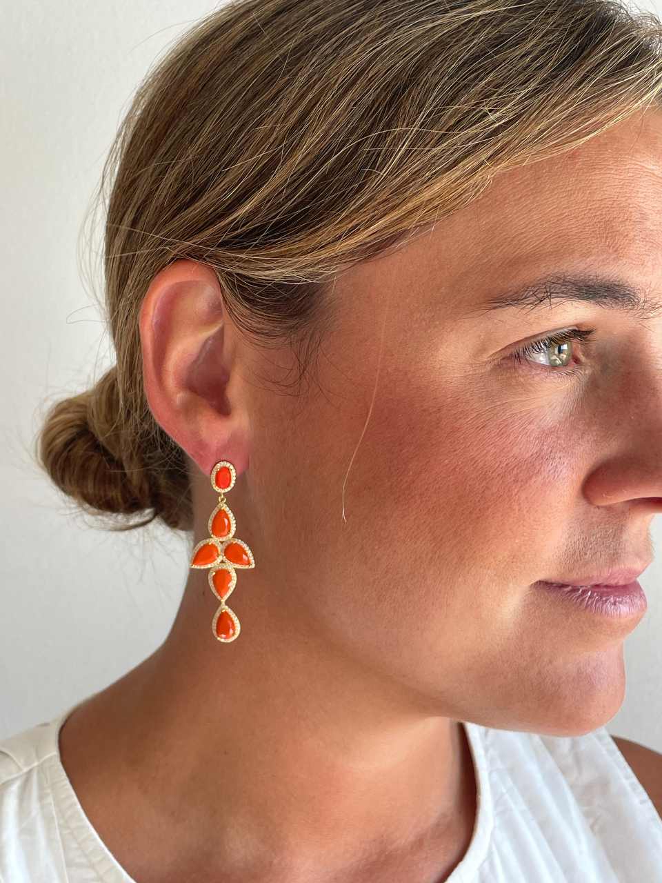 NAIRA is the perfect pair of earrings to elevate any look with a touch of color , elegance, and understated sophistication. With a long, lightweight design, enhanced by a vibrant central stone, they become the ideal accessory for summer days or events where you want to stand out with a fresh yet sophisticated style.