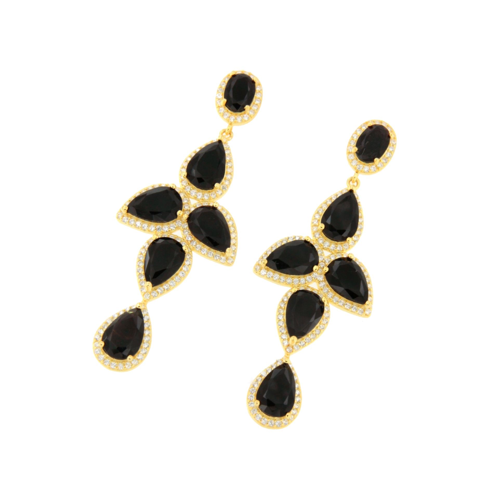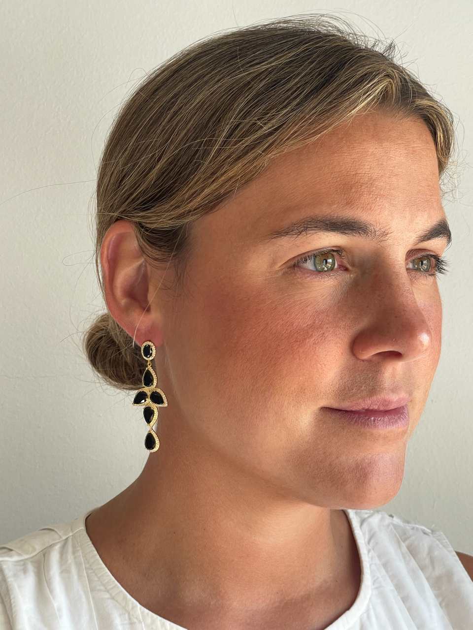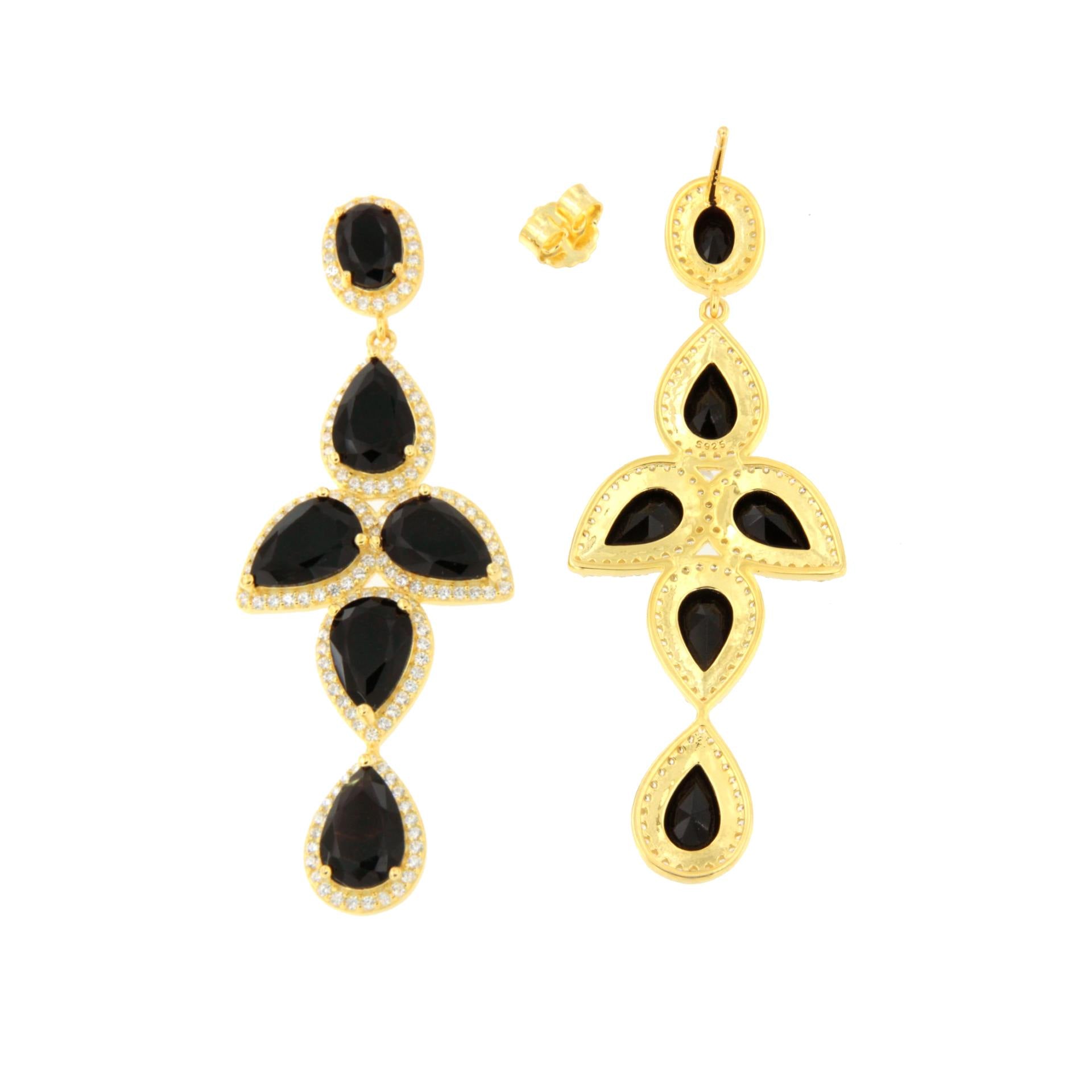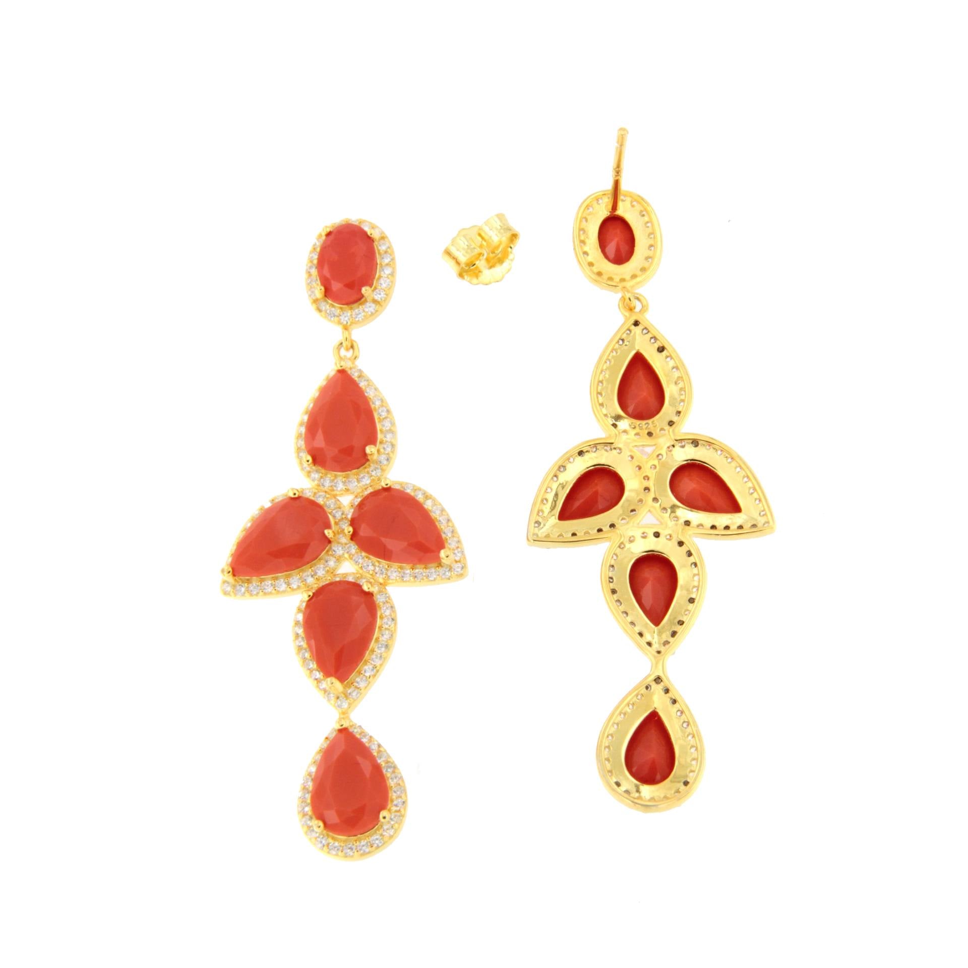 NAIRA earrings, in sterling silver plated in 18 karat gold, coral / turquoise / onyx