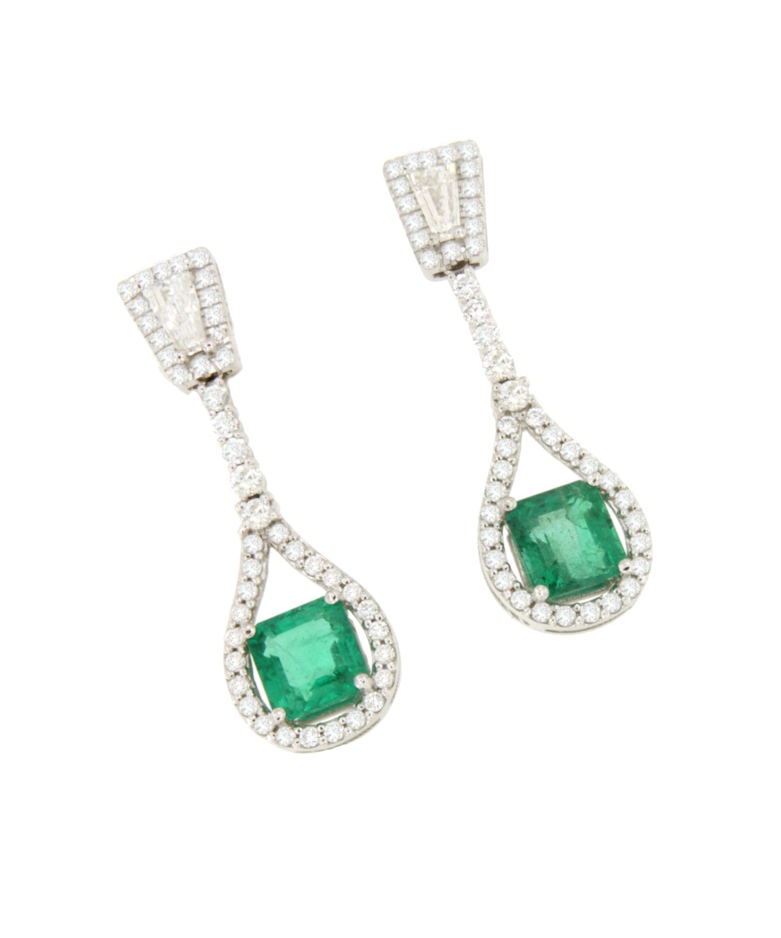 PAWPAW , a beautiful long emerald- cut earring with diamonds and a trapezoid, crafted in 18-karat white gold . Absolutely stunning!