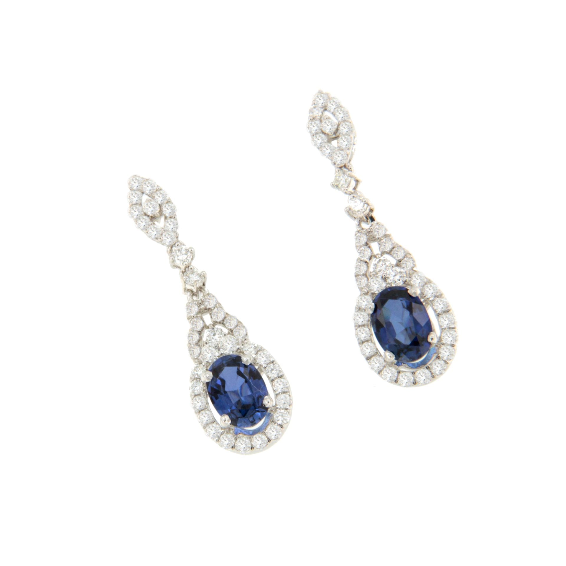 PENZA long earrings with diamonds and sapphires in 18k white gold