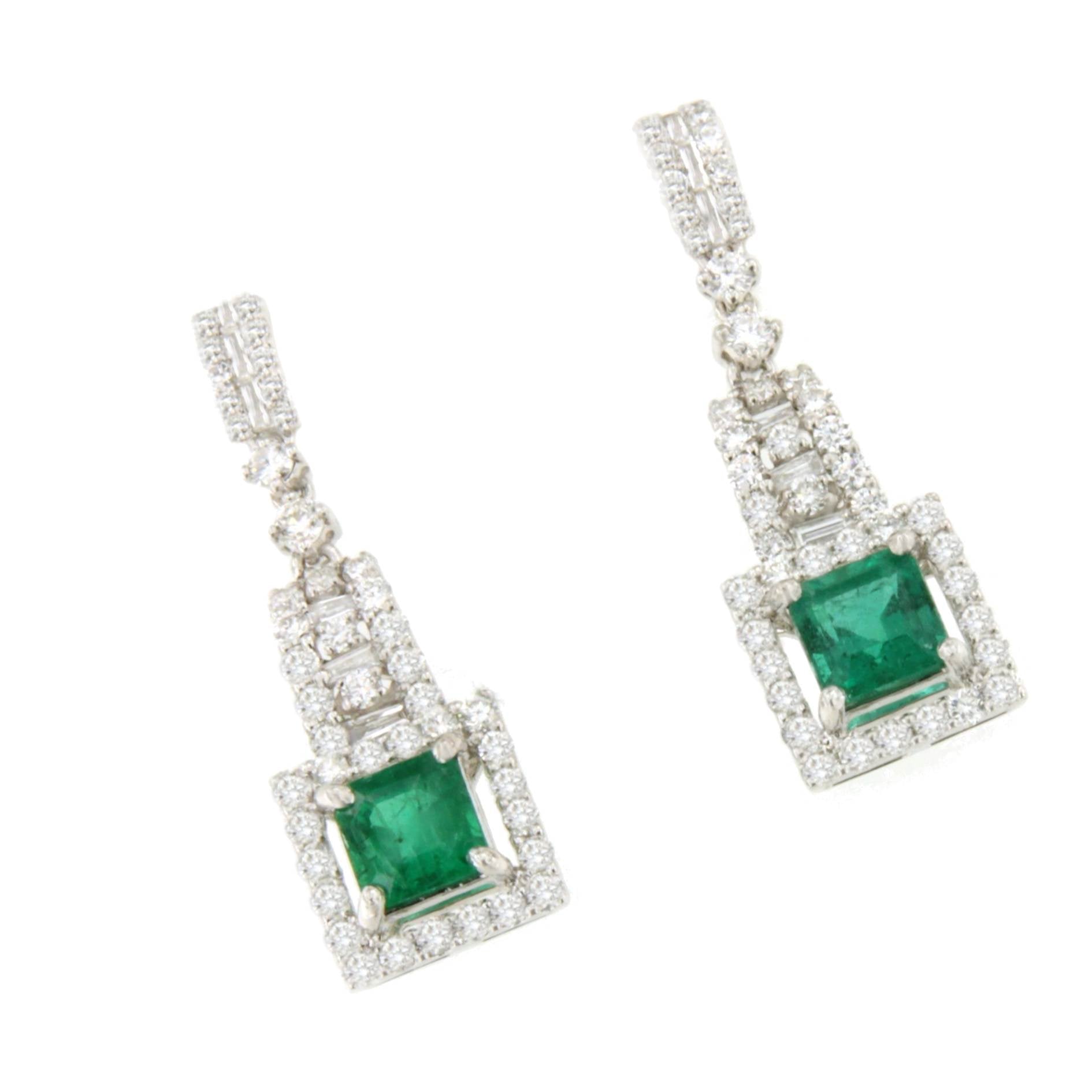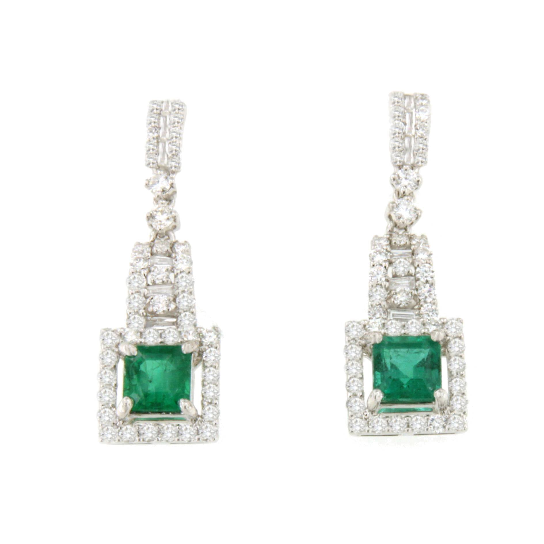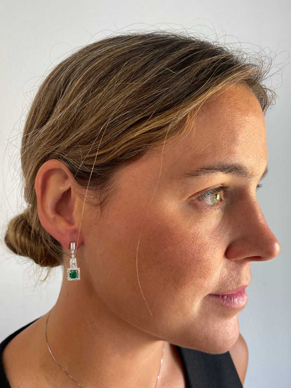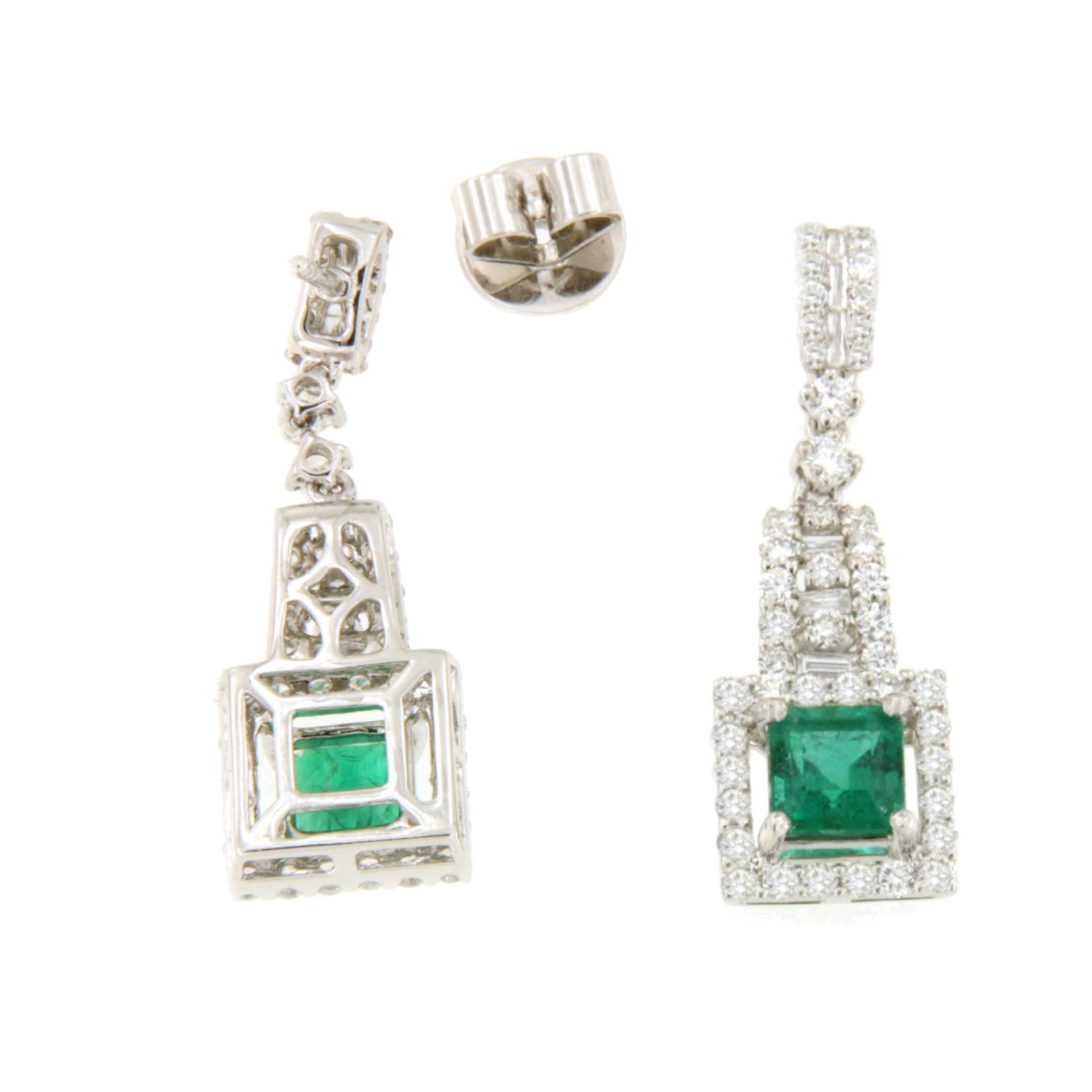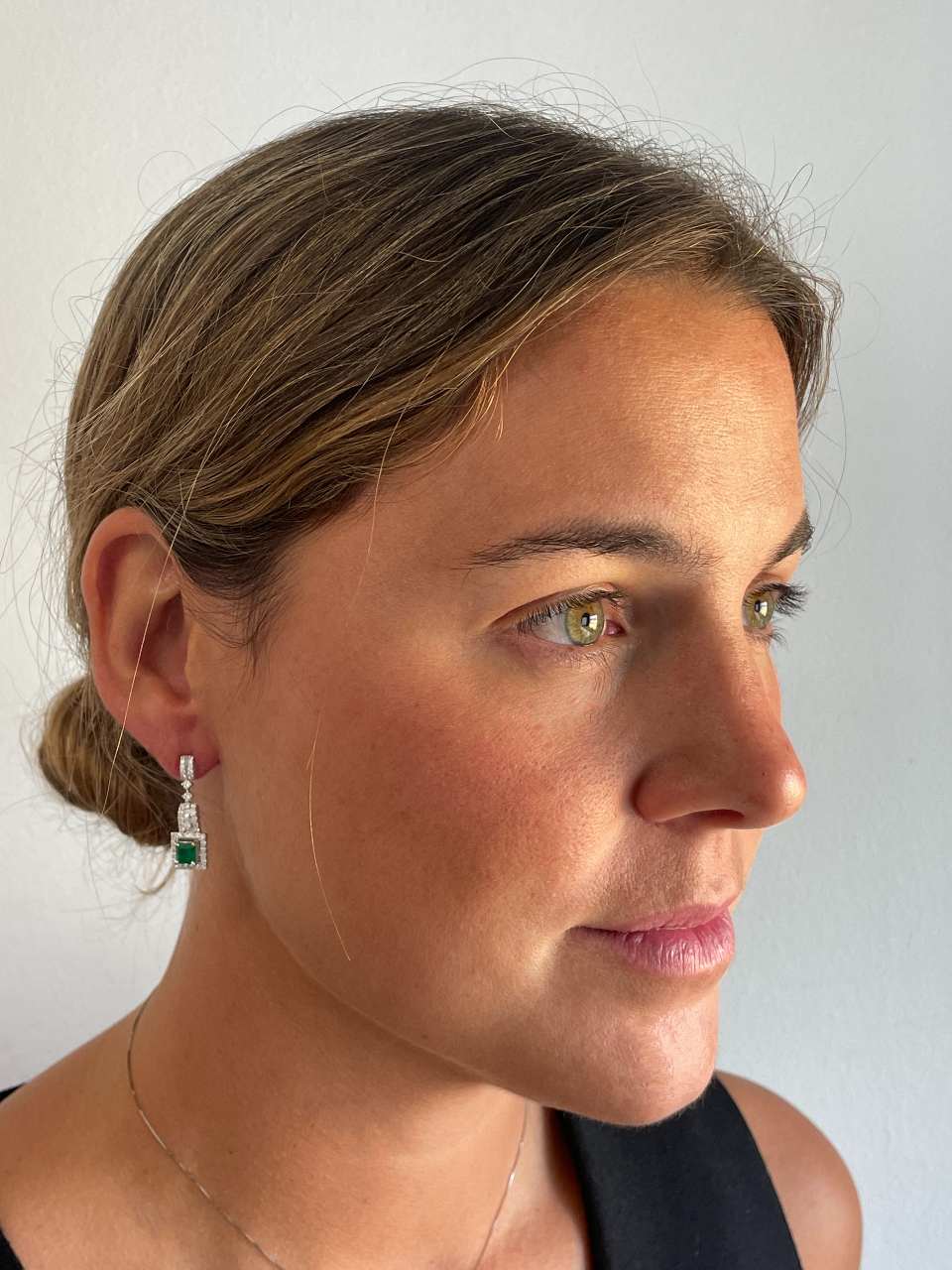 PERSIMO , a beautiful long emerald earring Colombian emerald with diamonds and baguettes, made in 18-karat white gold . Wonderful!