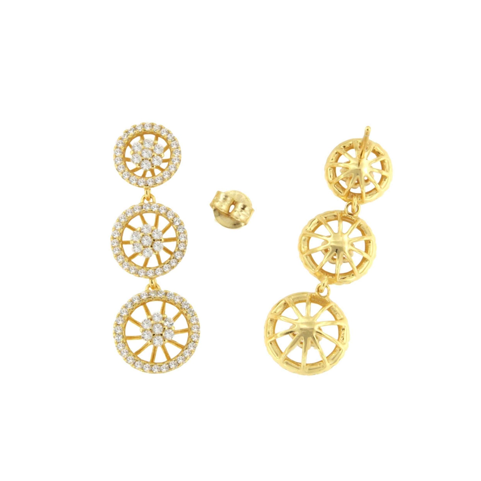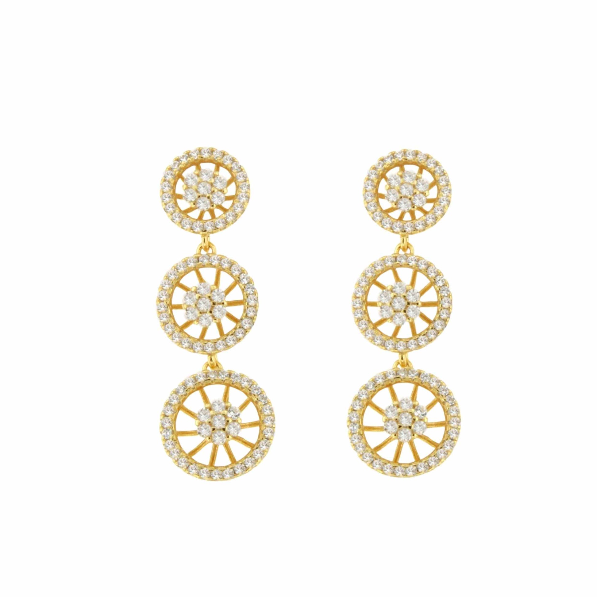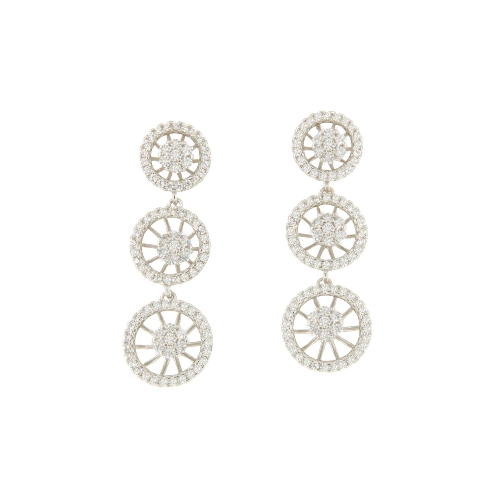 SAN ANDRES earrings, triple rosette in sterling silver with cubic zirconia
