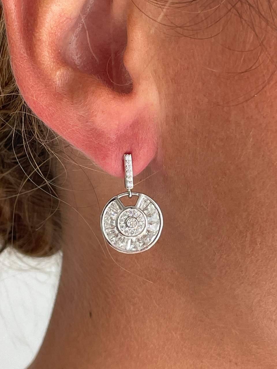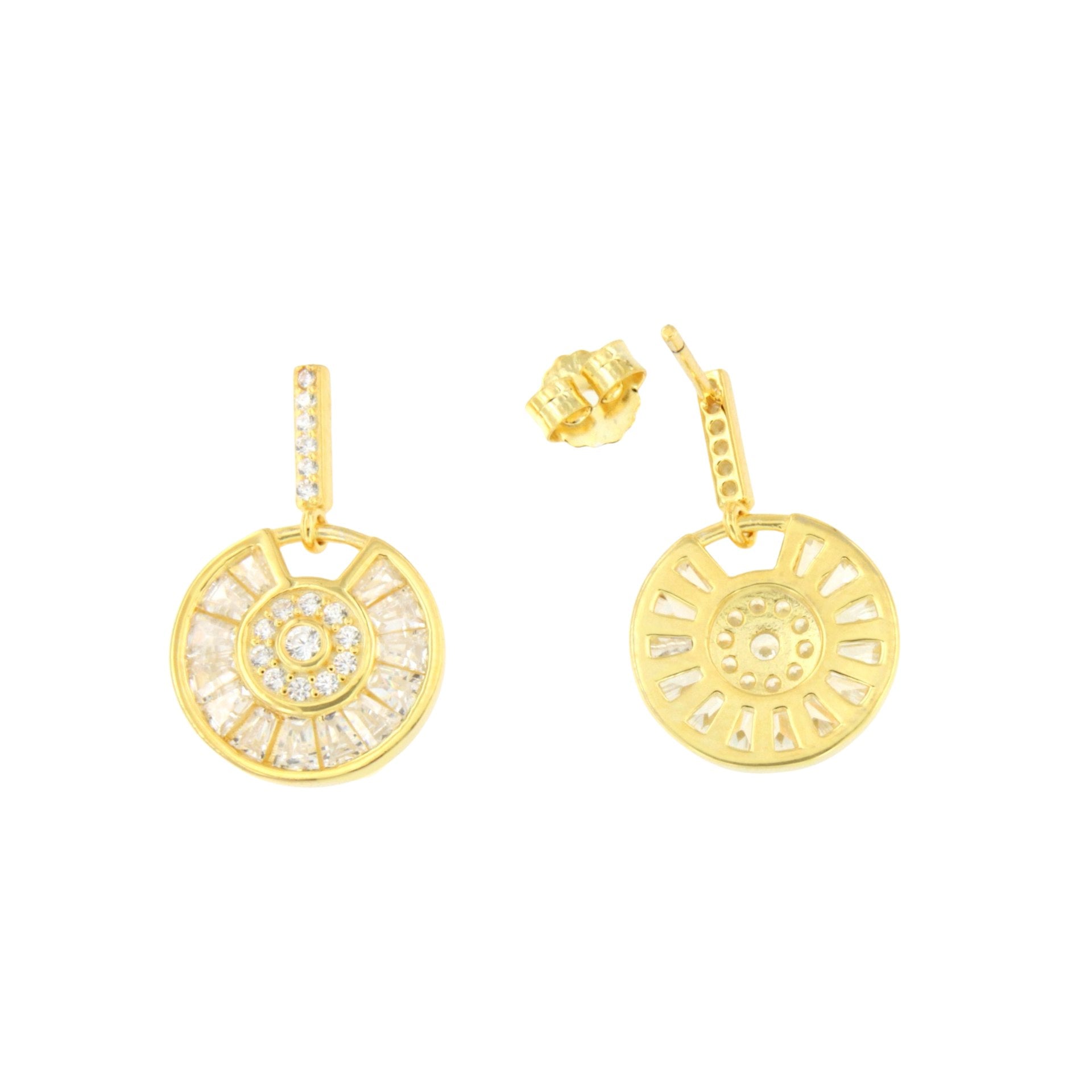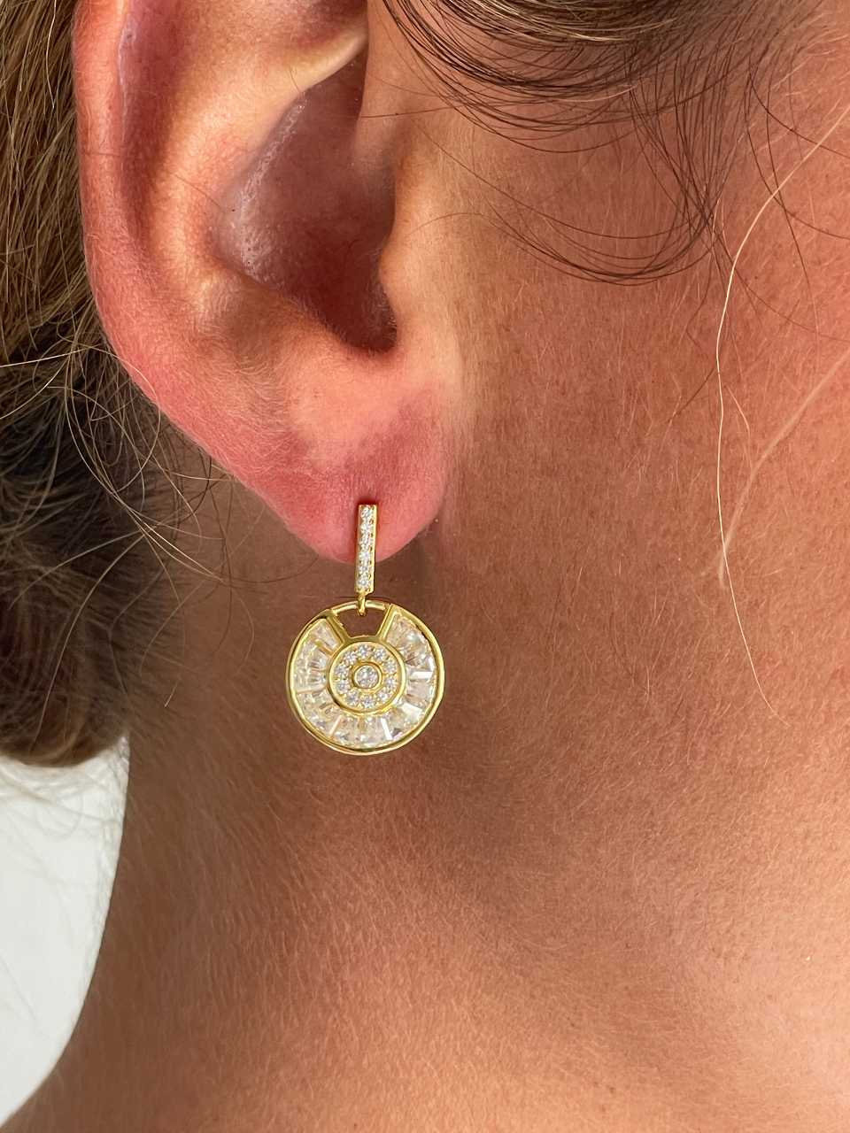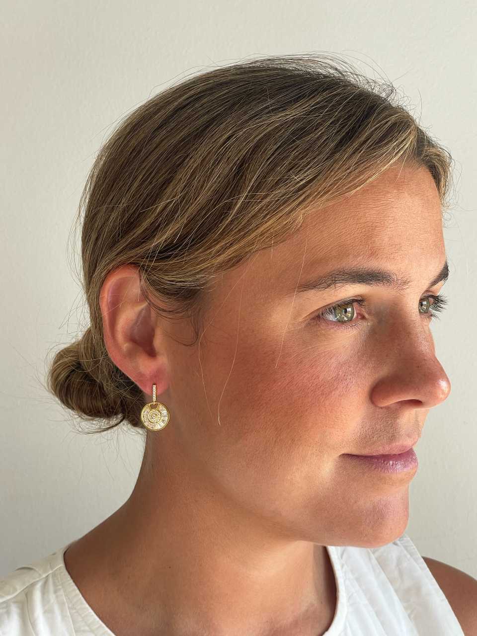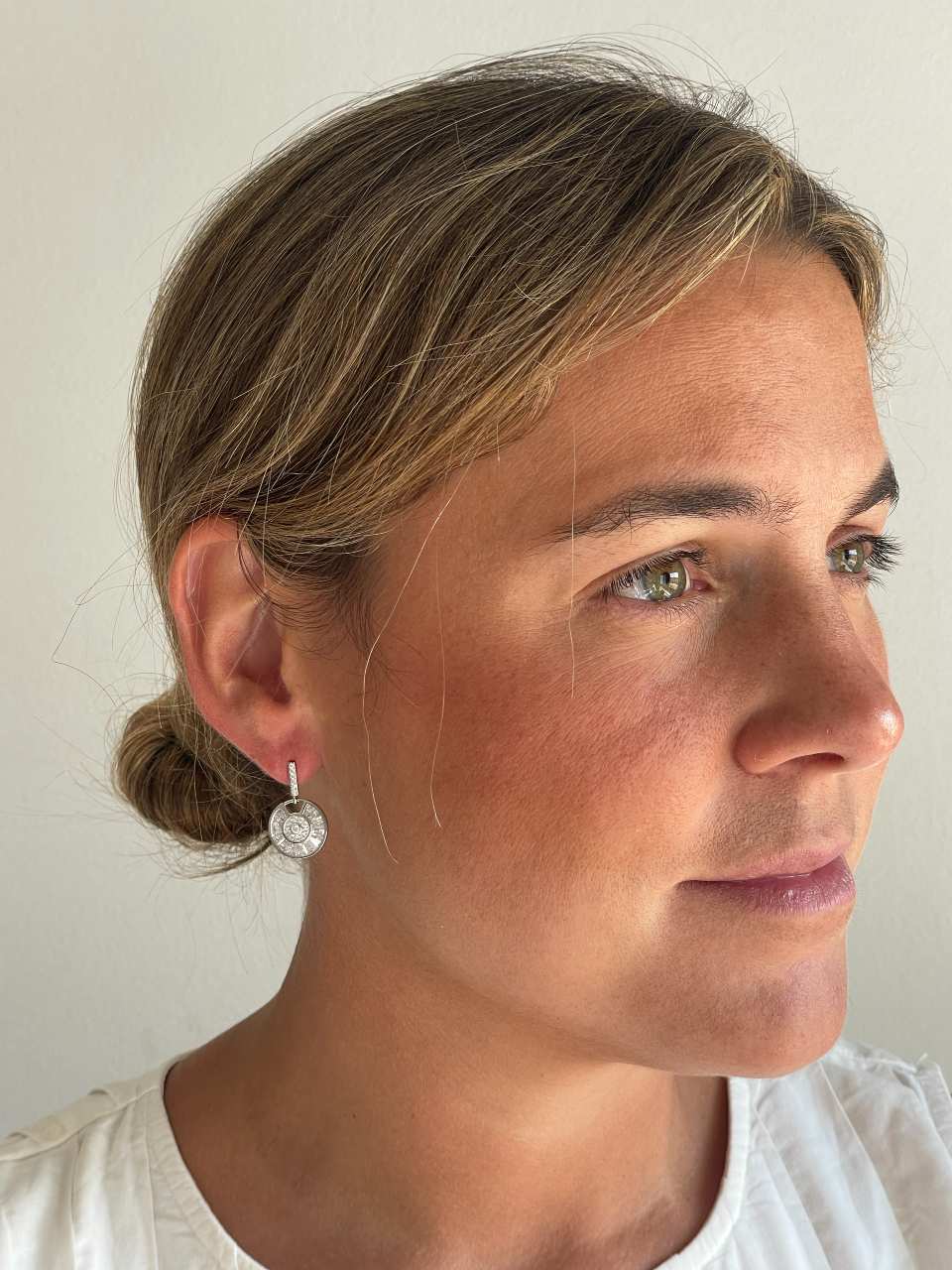Its circular design with a delicate central bar creates a sophisticated and balanced aesthetic, perfect for brides who want to complement their look with discretion and good taste. Ideal if you're wearing a tiara, hair comb, or other accessories, as its style doesn't compete with them, but rather enhances them. They're also beautiful for everyday wear with jeans.