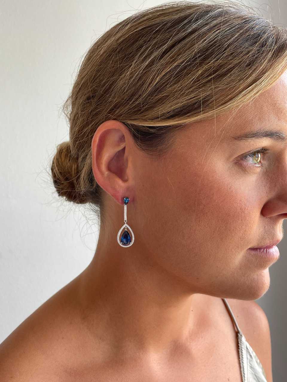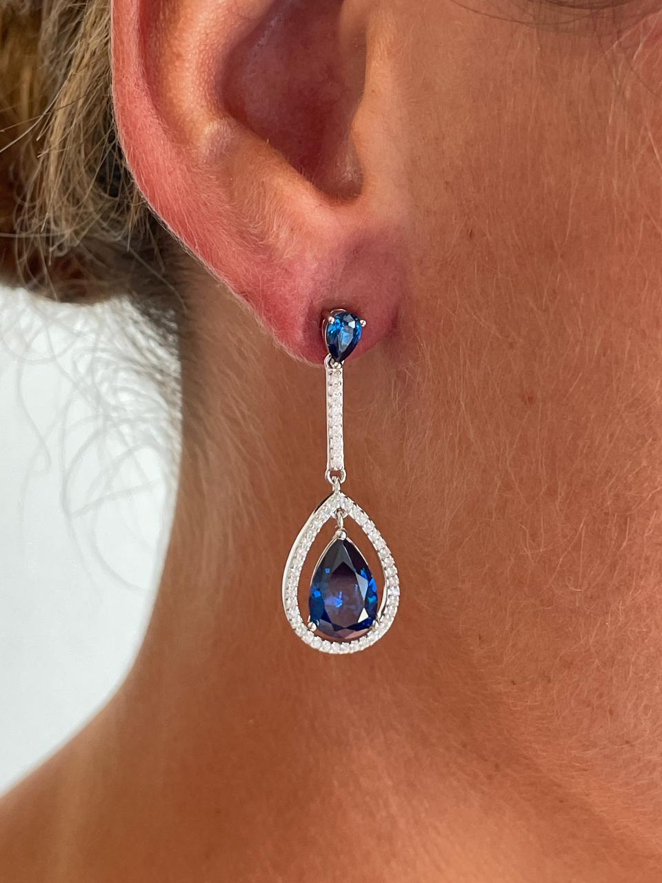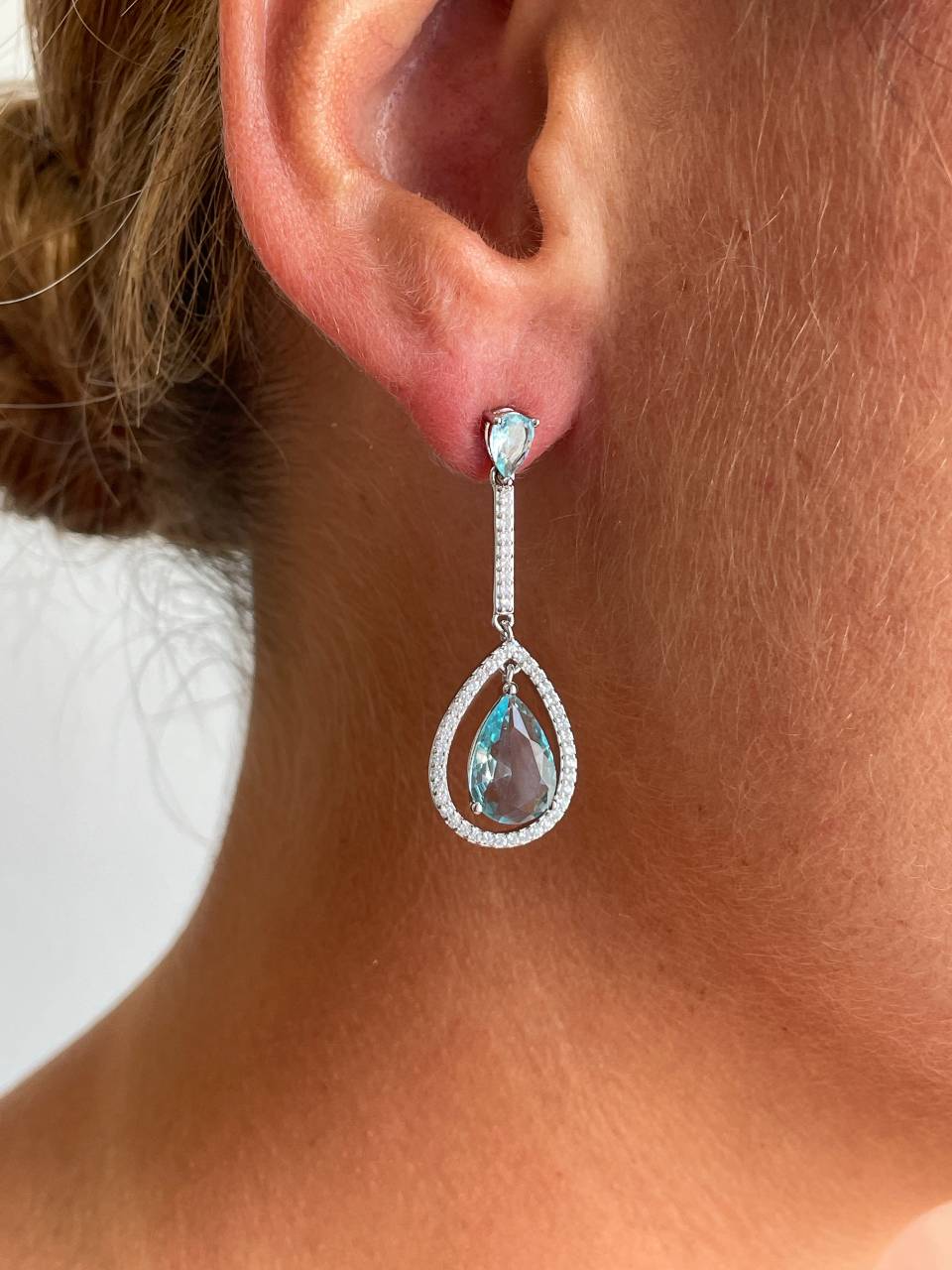 VERACRUZ long earrings in sapphire quartz/aquamarine