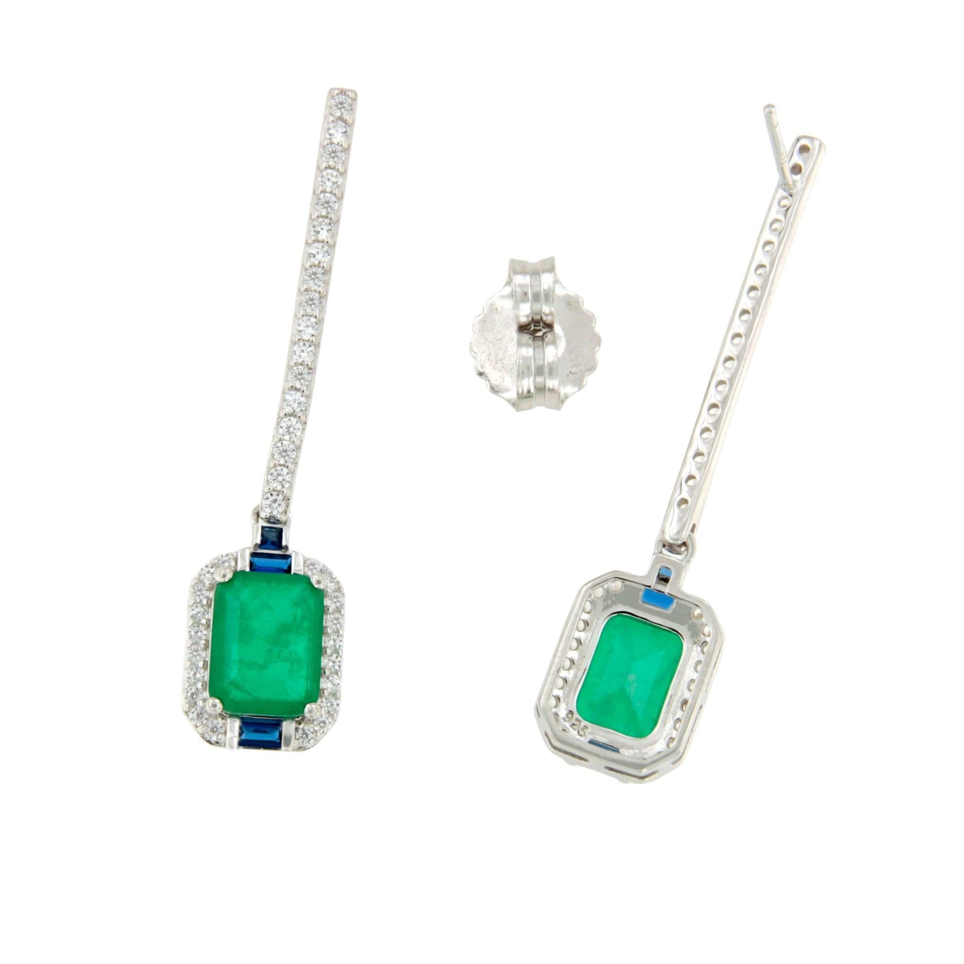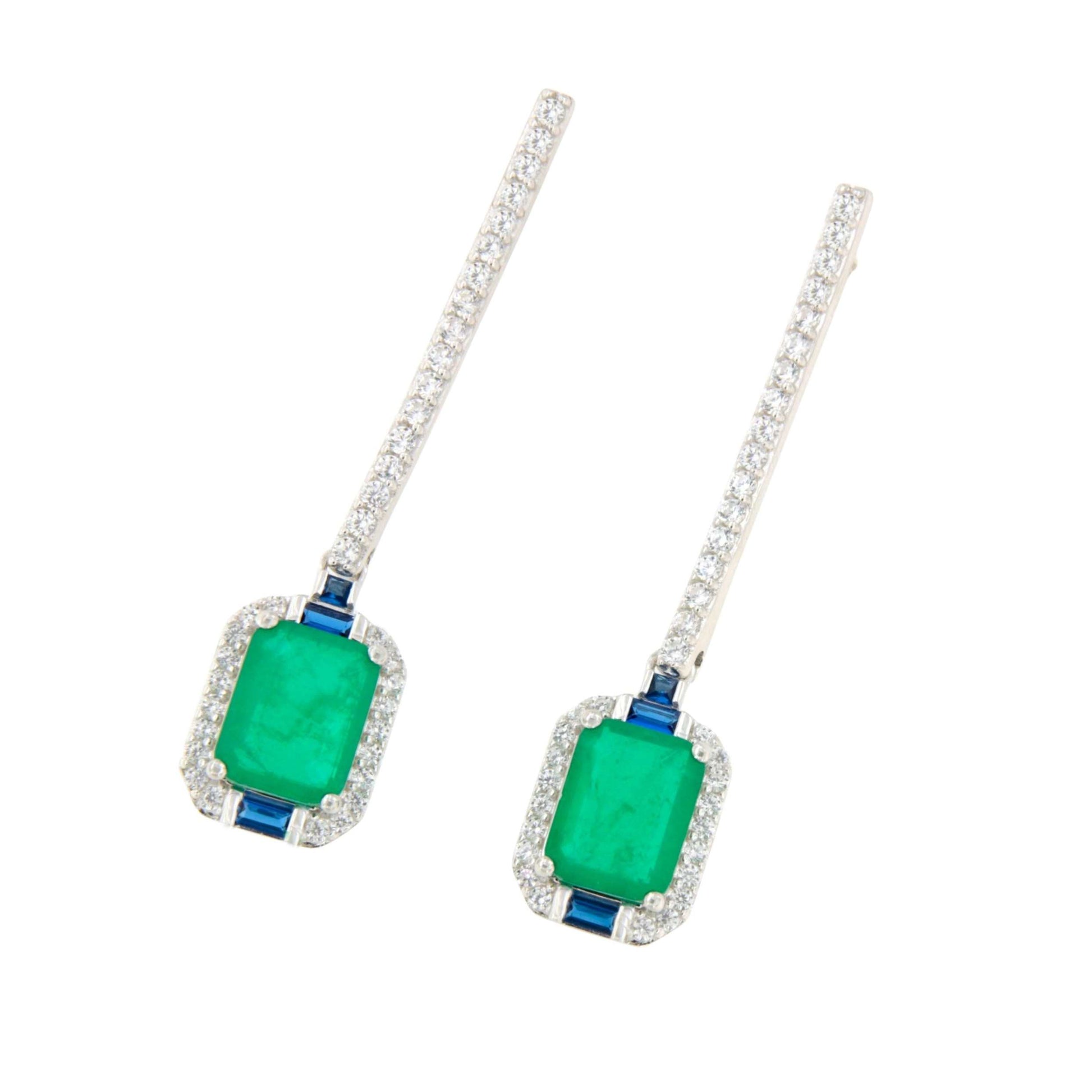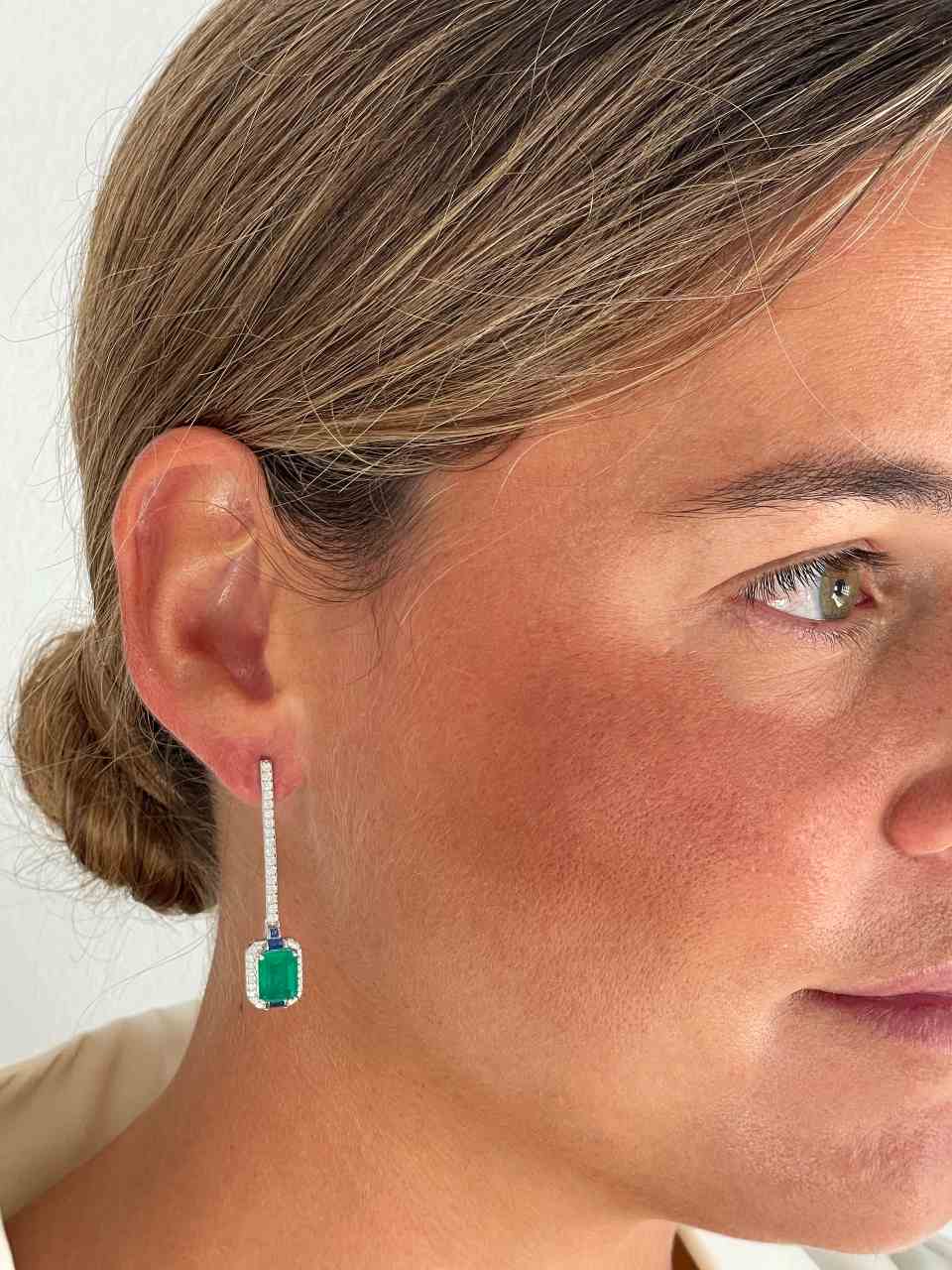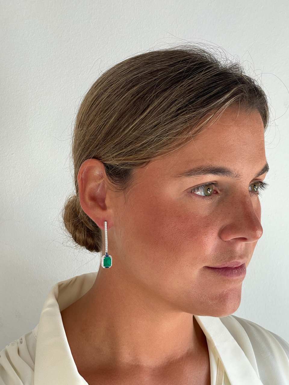 Long ZOE earrings in sterling silver with cubic zirconia and emerald quartz