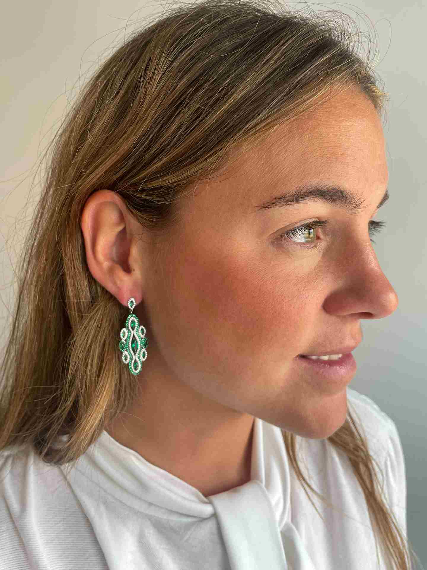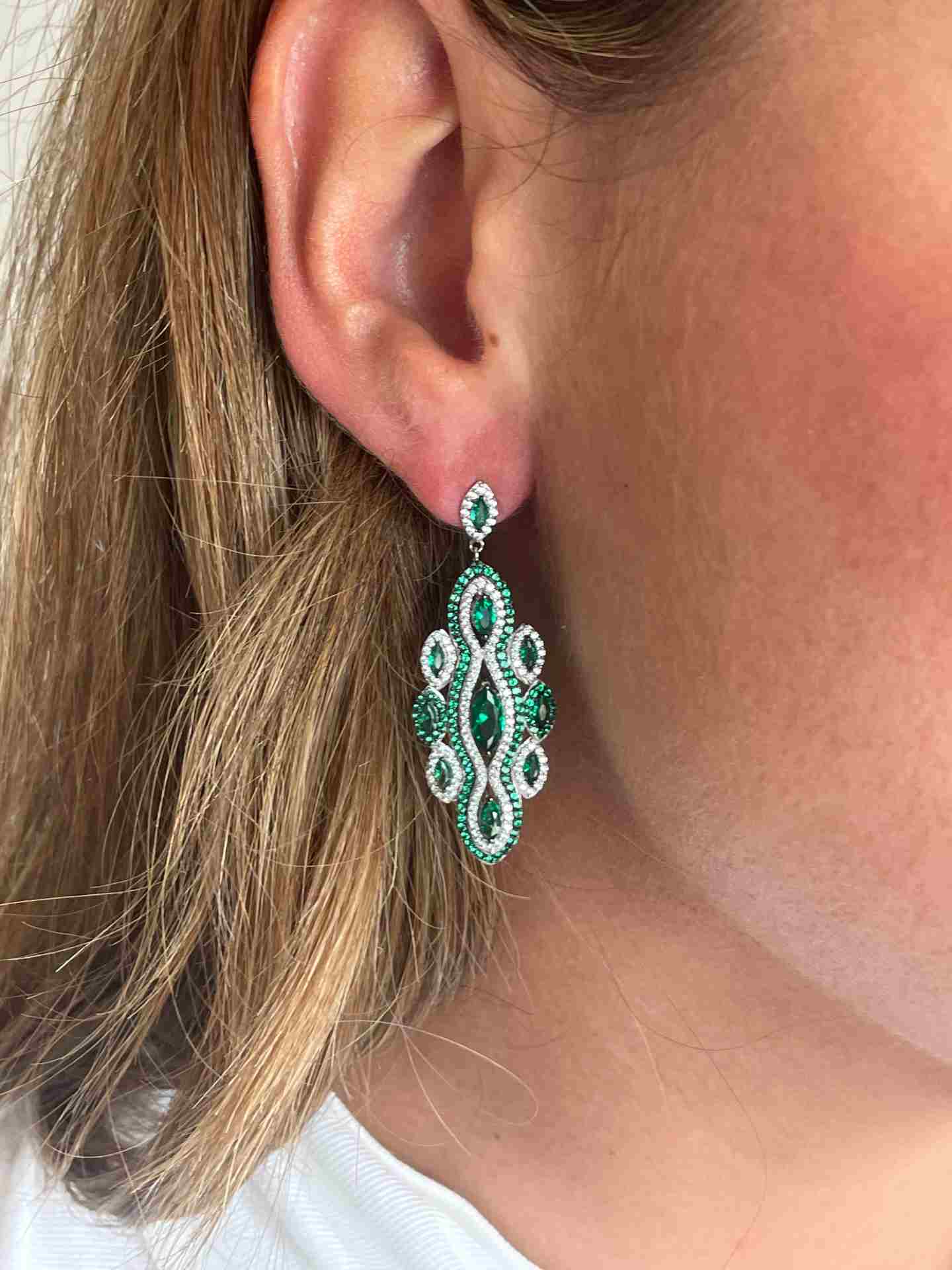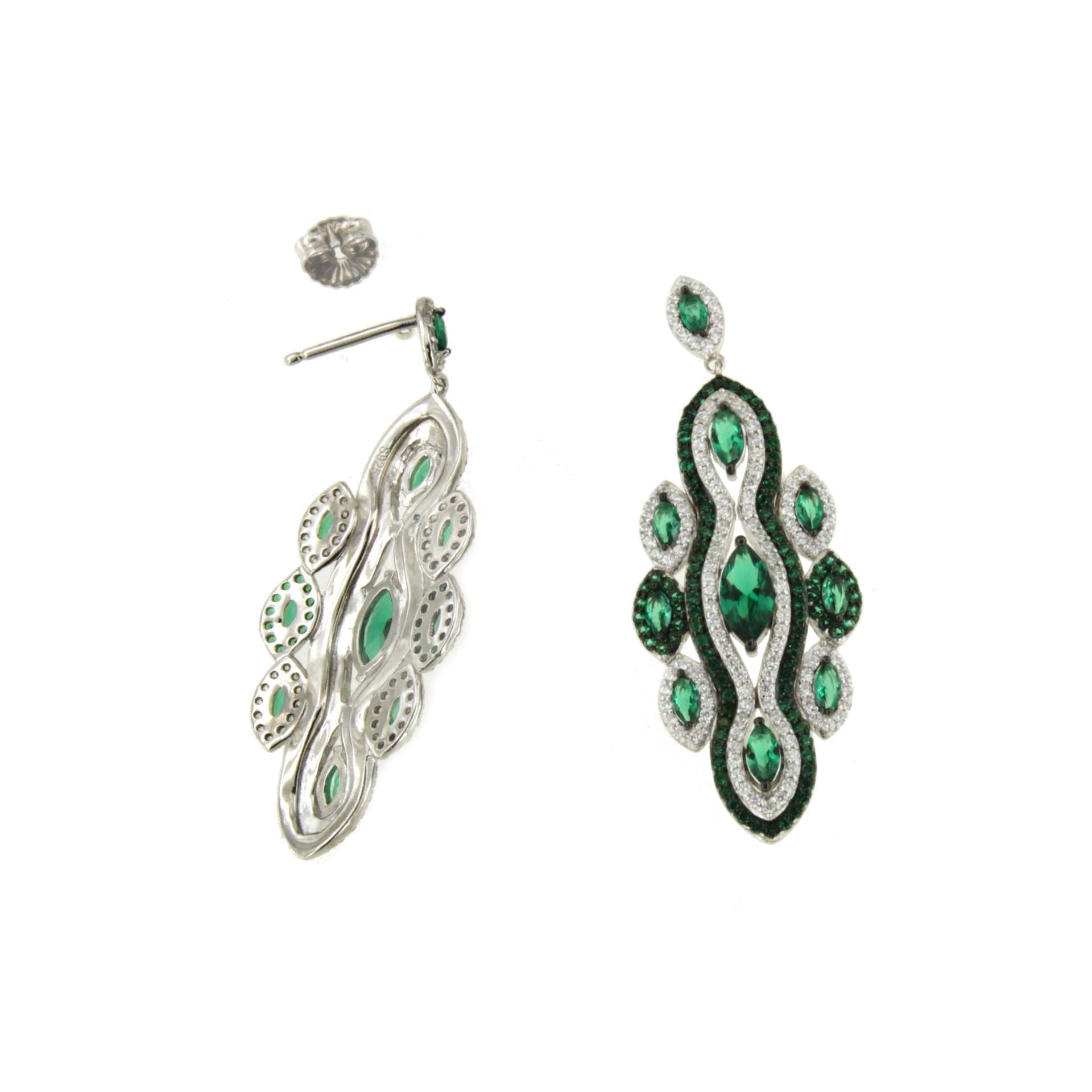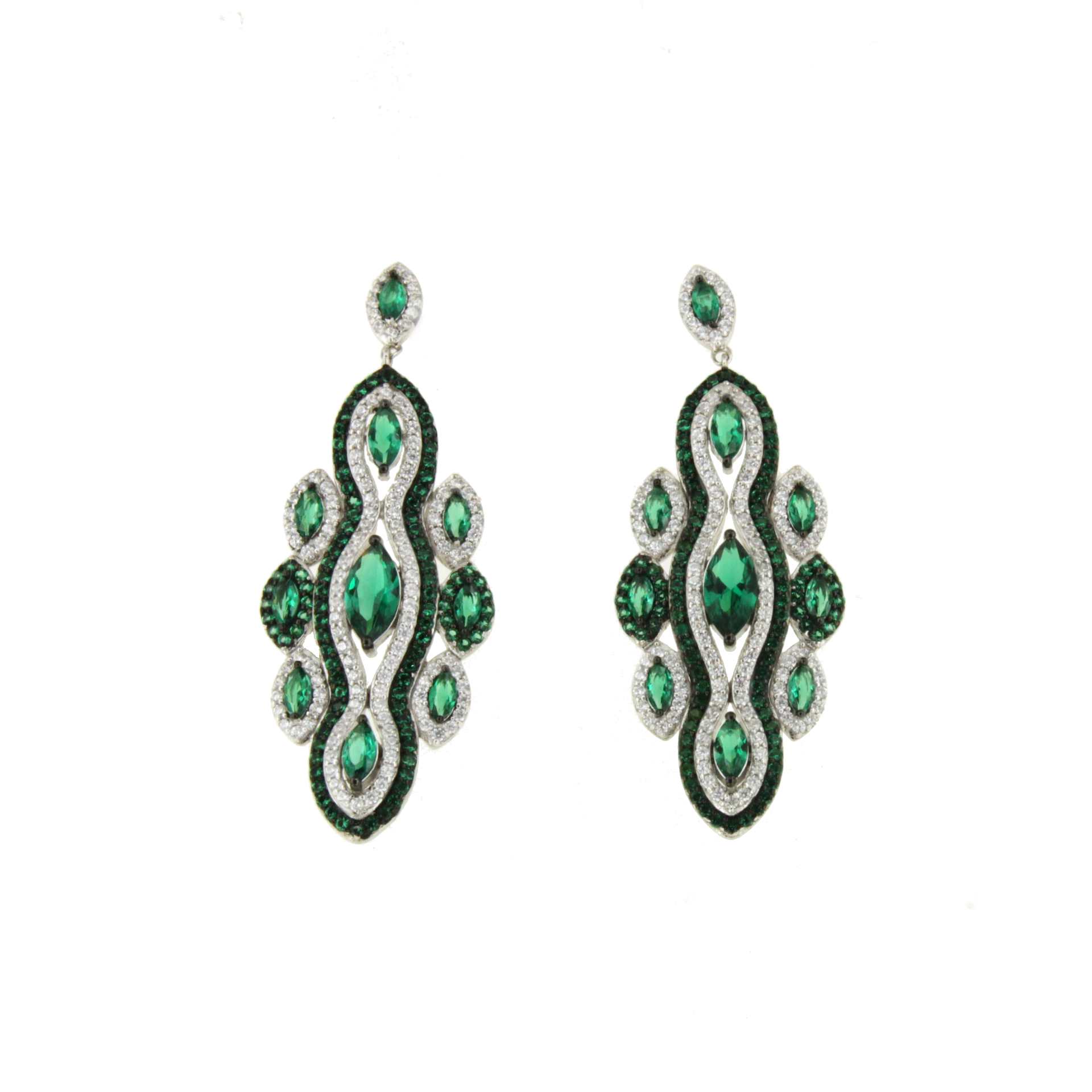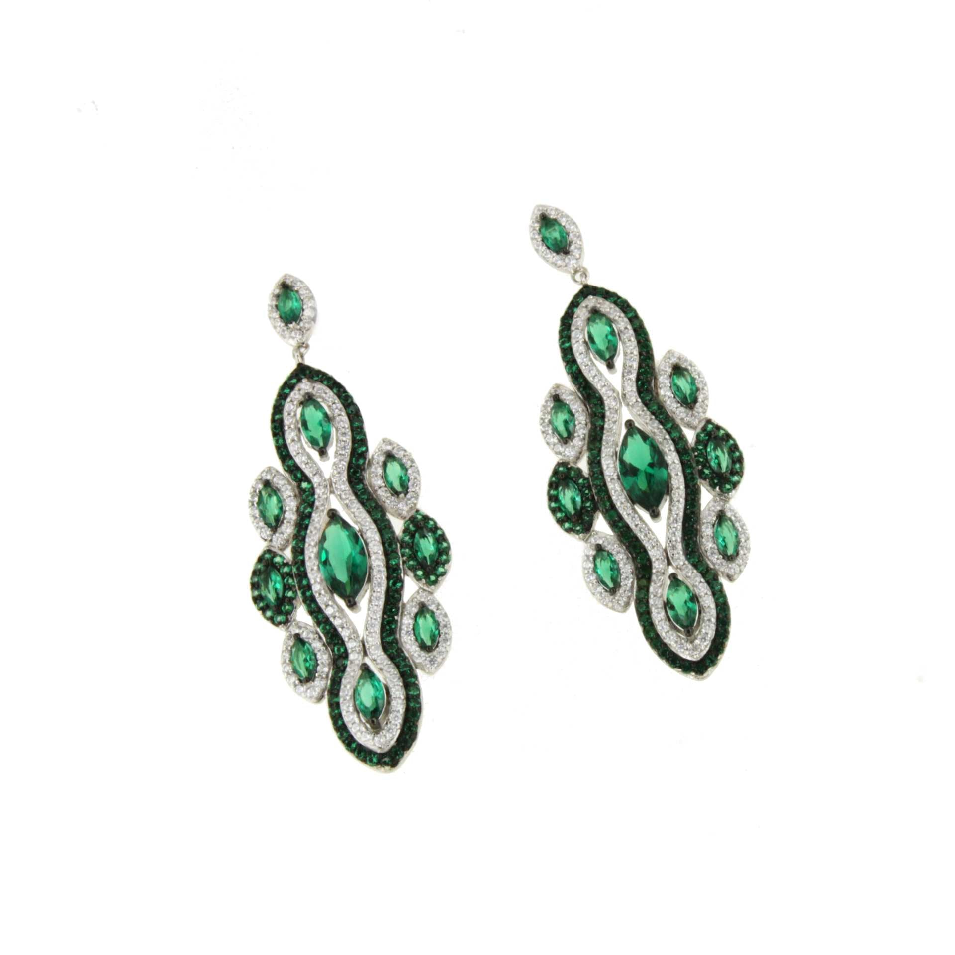 CARDENO is a very new long earring , to wear elegantly, made of 925 sterling silver with cubic zirconia and emerald quartz.