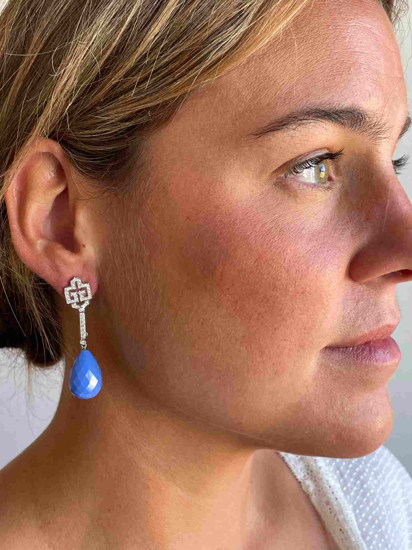 COLOSO stud earrings are the perfect complement to detachable earrings . Pear-shaped pendants, smooth or faceted, in various stones (quartz, agate, and porcelain) in a multitude of colors .