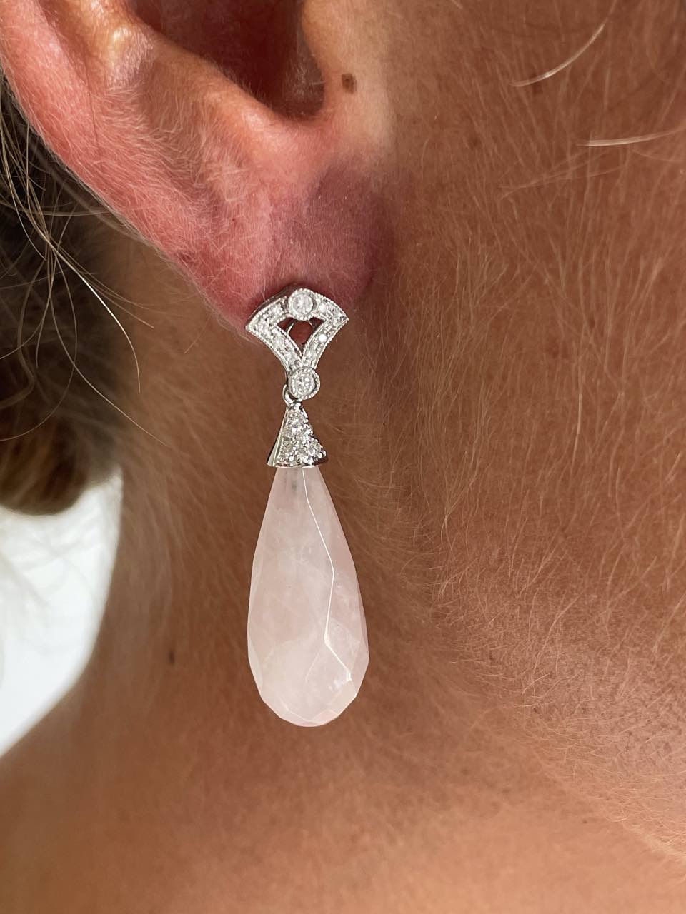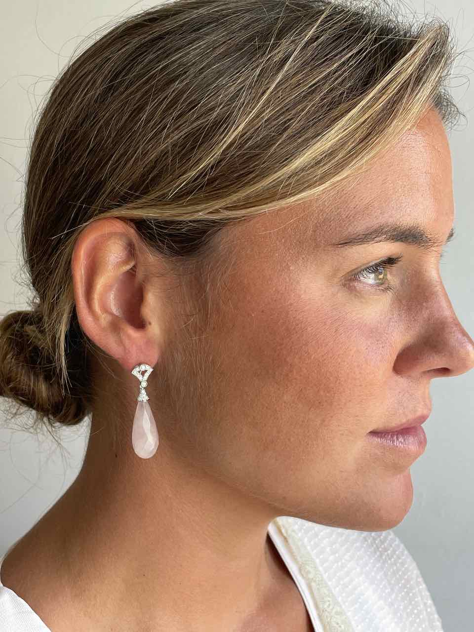 JUNGLE, these enchanting rose quartz knobs that They form an elegant duo, each with a delicate Diamond-set studs in 18-karat white gold . They are the perfect choice to complement our detachable earrings for a special event or even for brides, adding a touch of sophistication and color to your look.