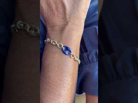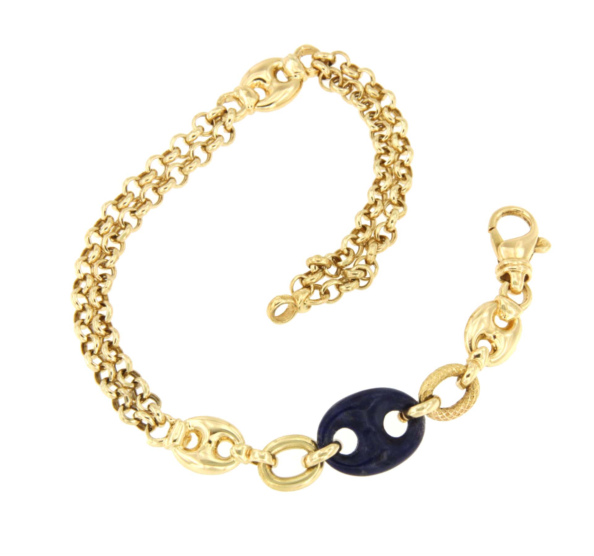 ANGOULEME , 18-karat yellow gold bracelet with mixed curb links and a lapis lazuli curb link detail. Its Italian design is very original.