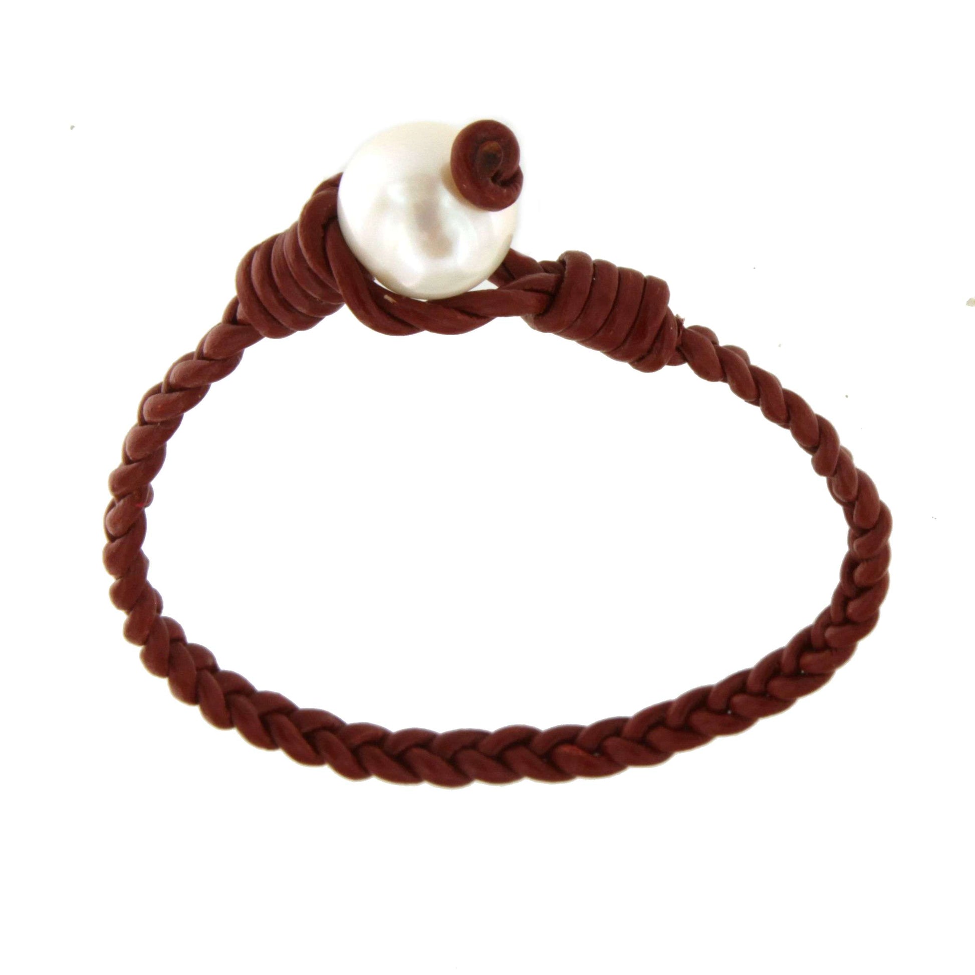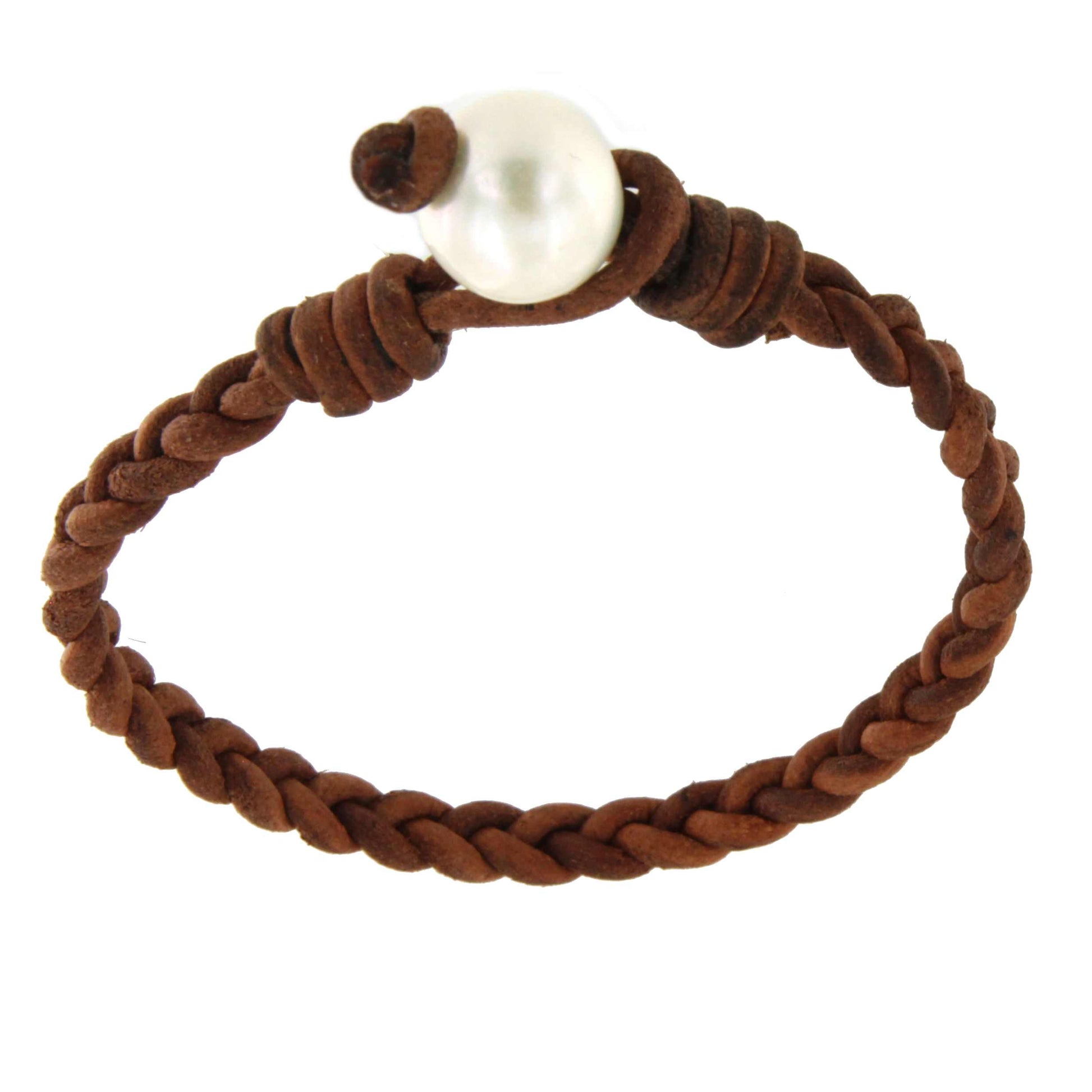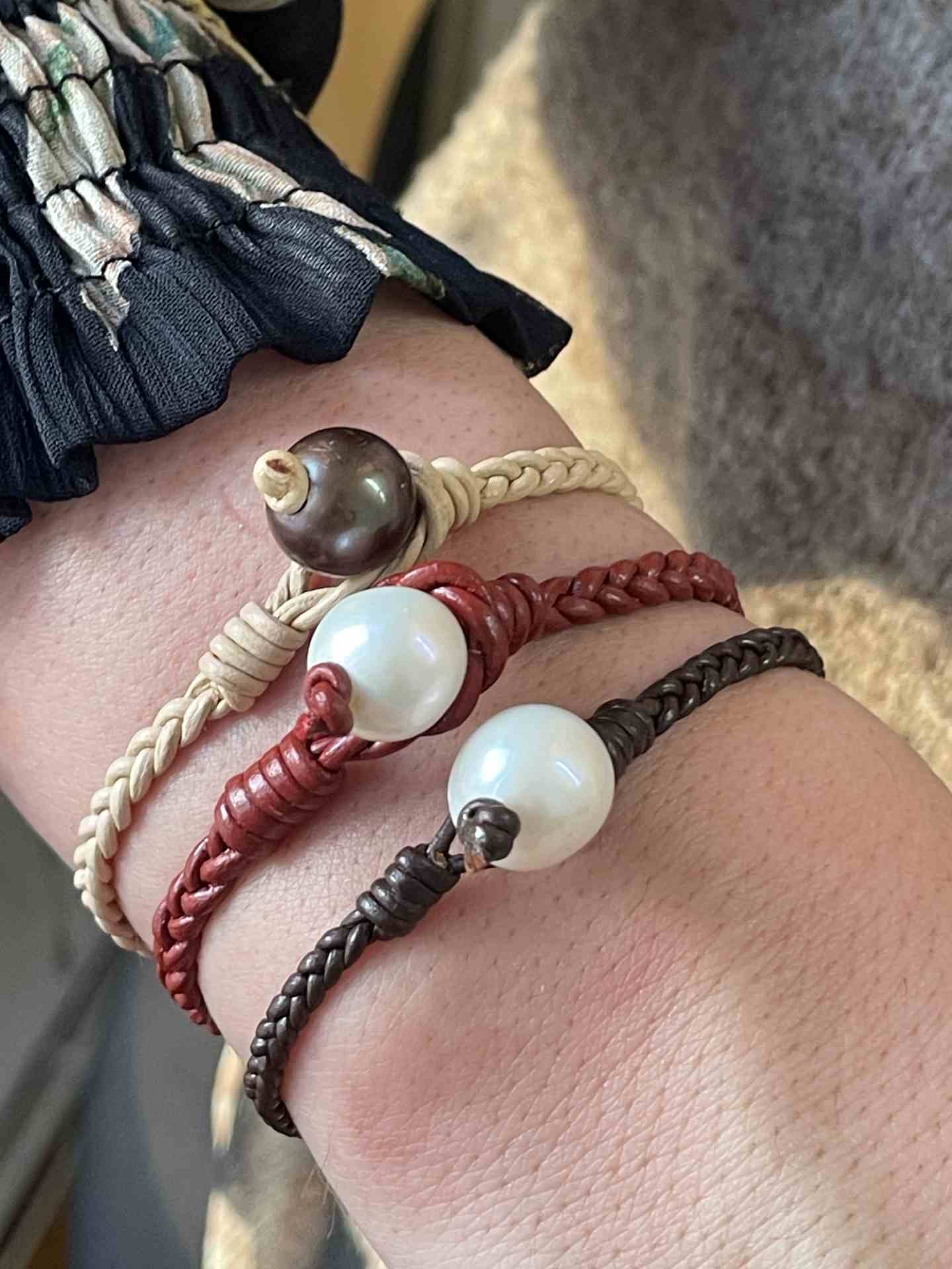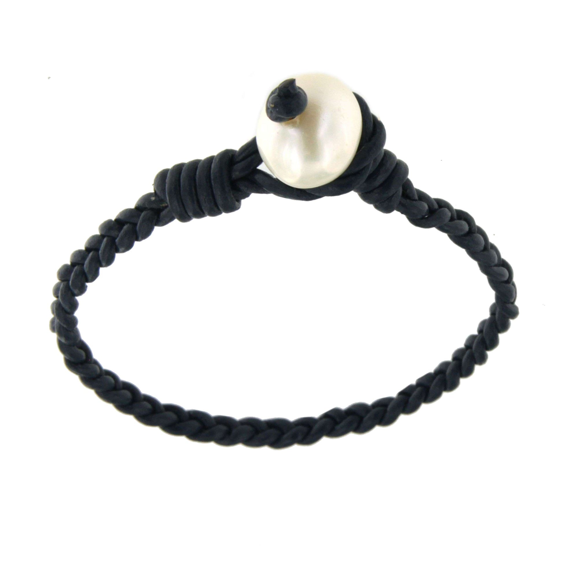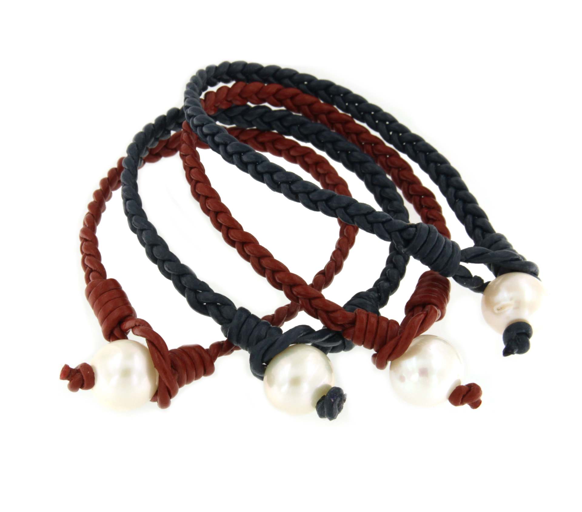 CABO is a very modern bracelet made with leather in different colors with a braid that ends in a loop-like pass that holds an Indonesian pearl.