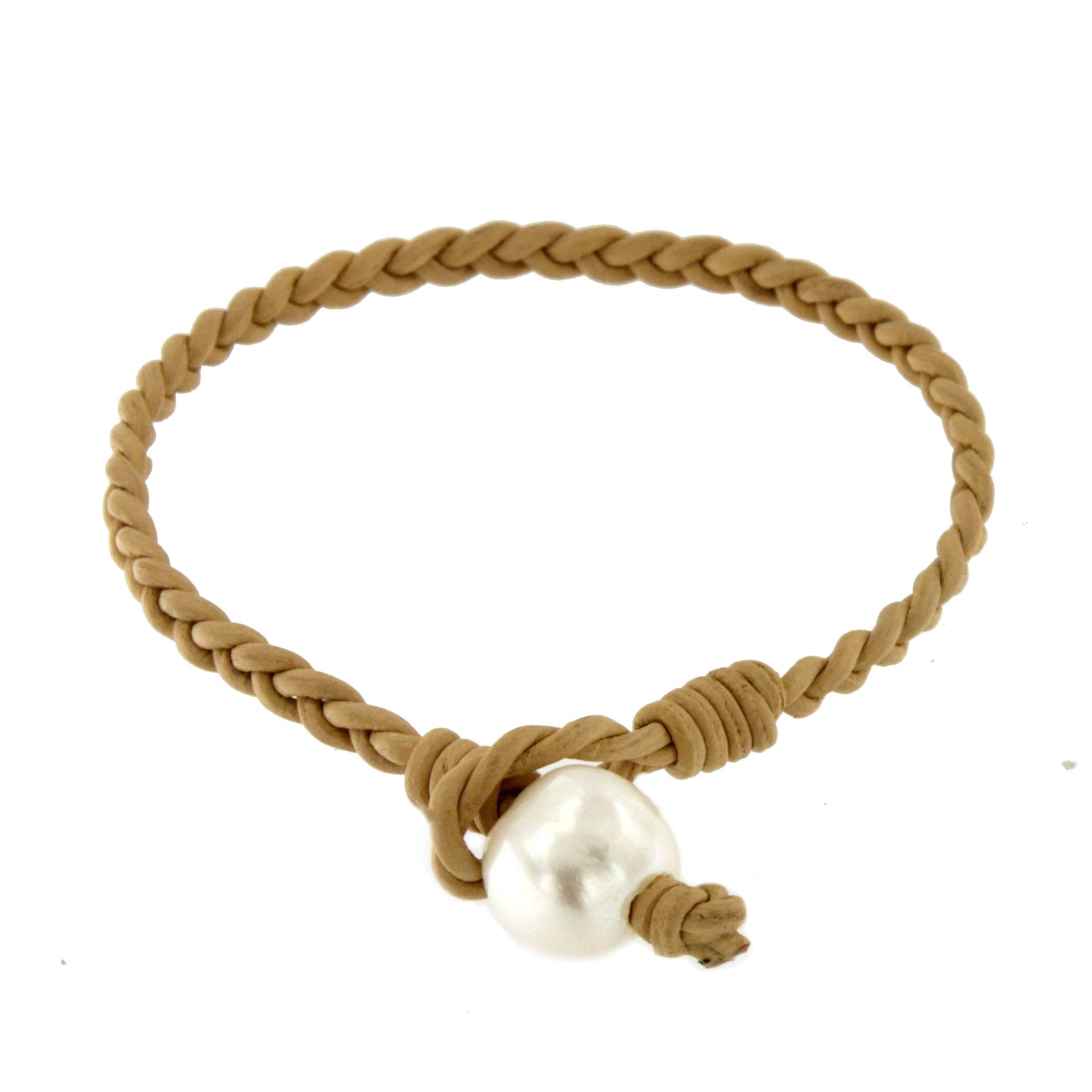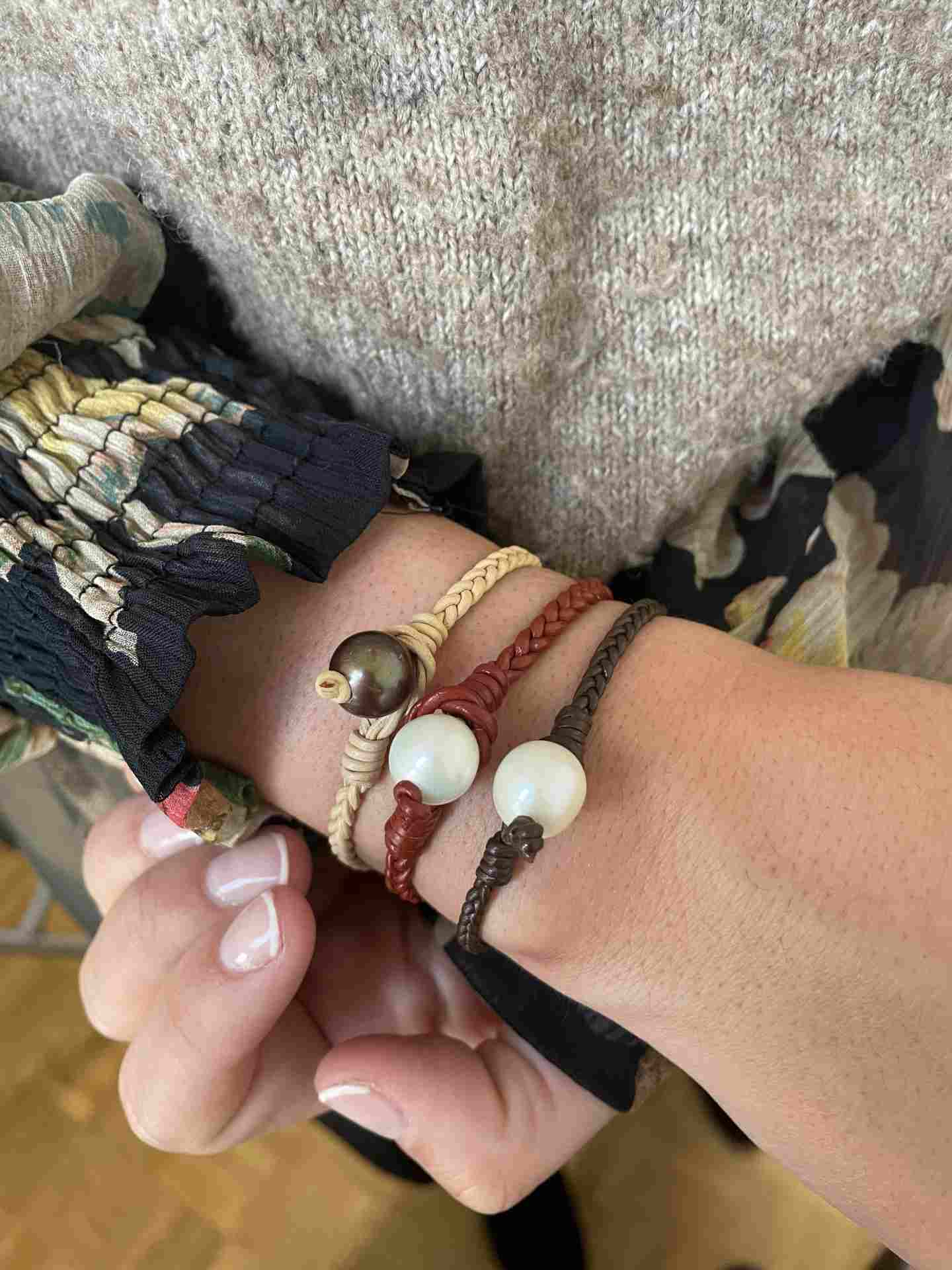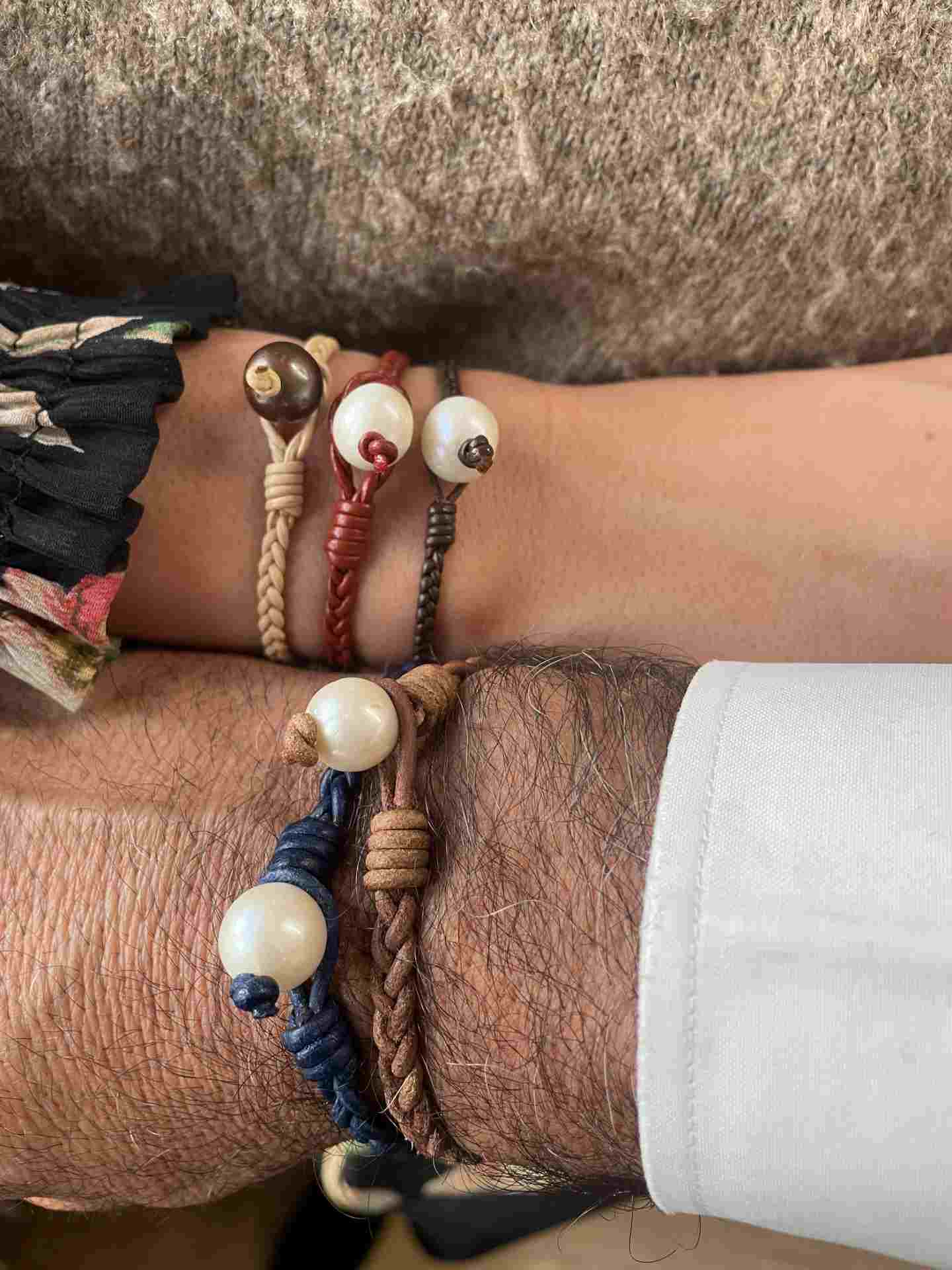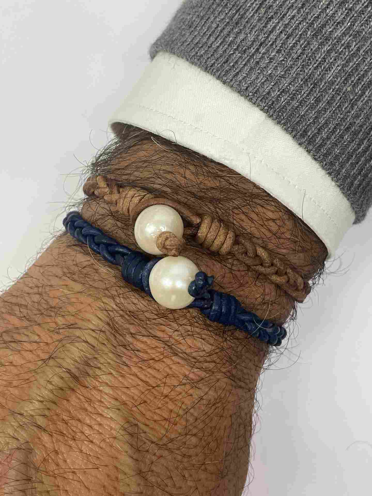 CABO is a very modern bracelet made with leather in different colors with a braid that ends in a loop-like pass that holds an Indonesian pearl.