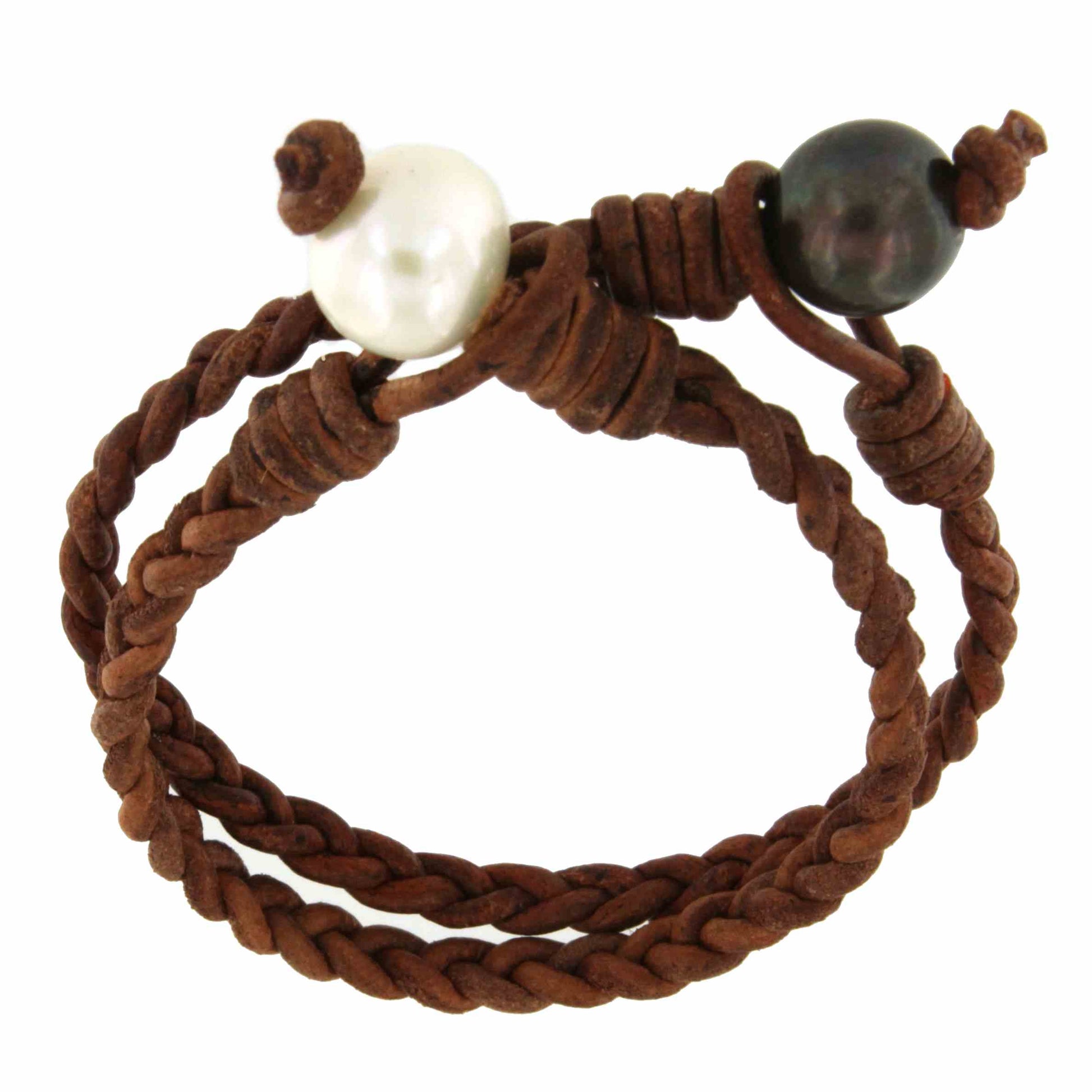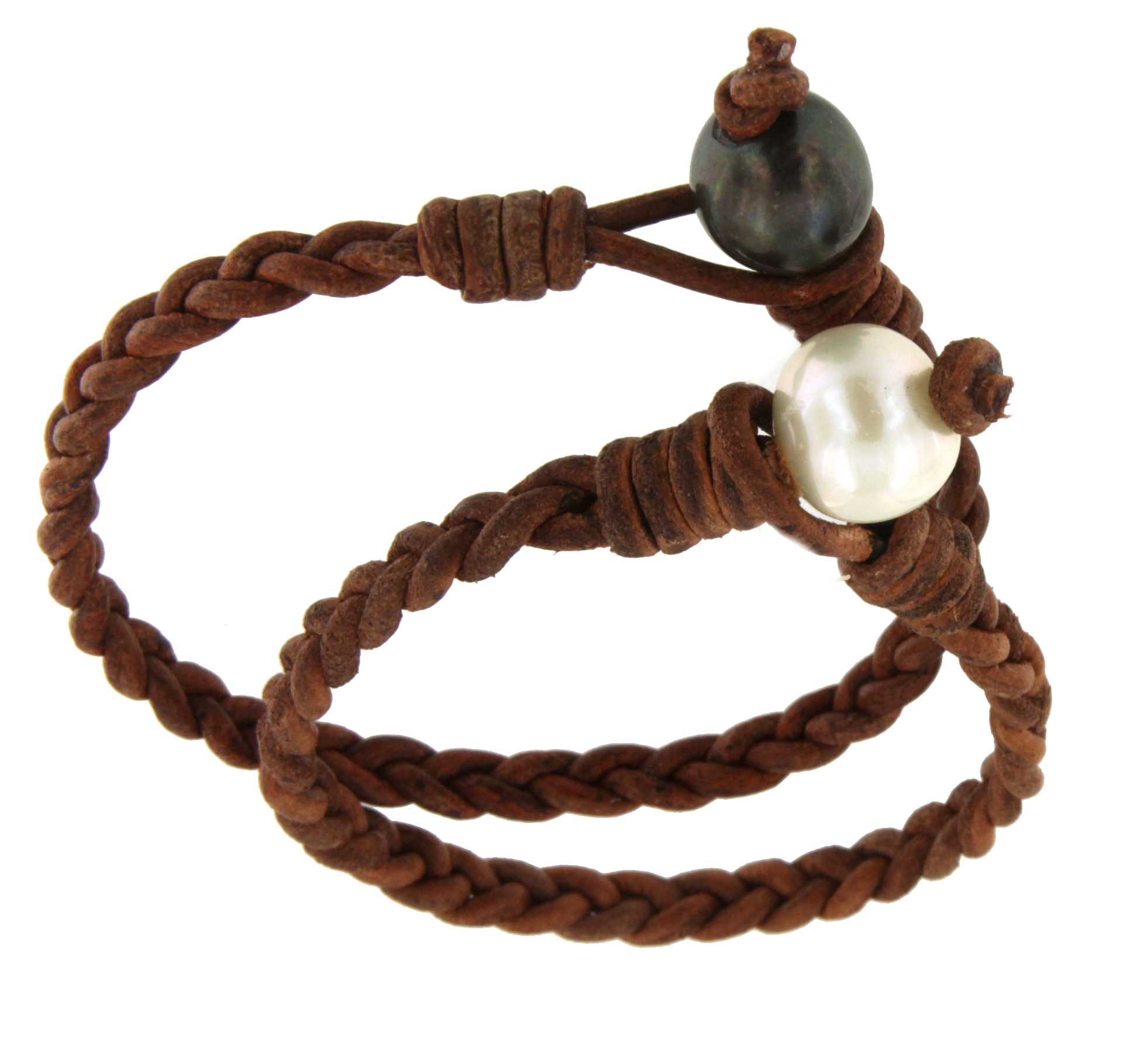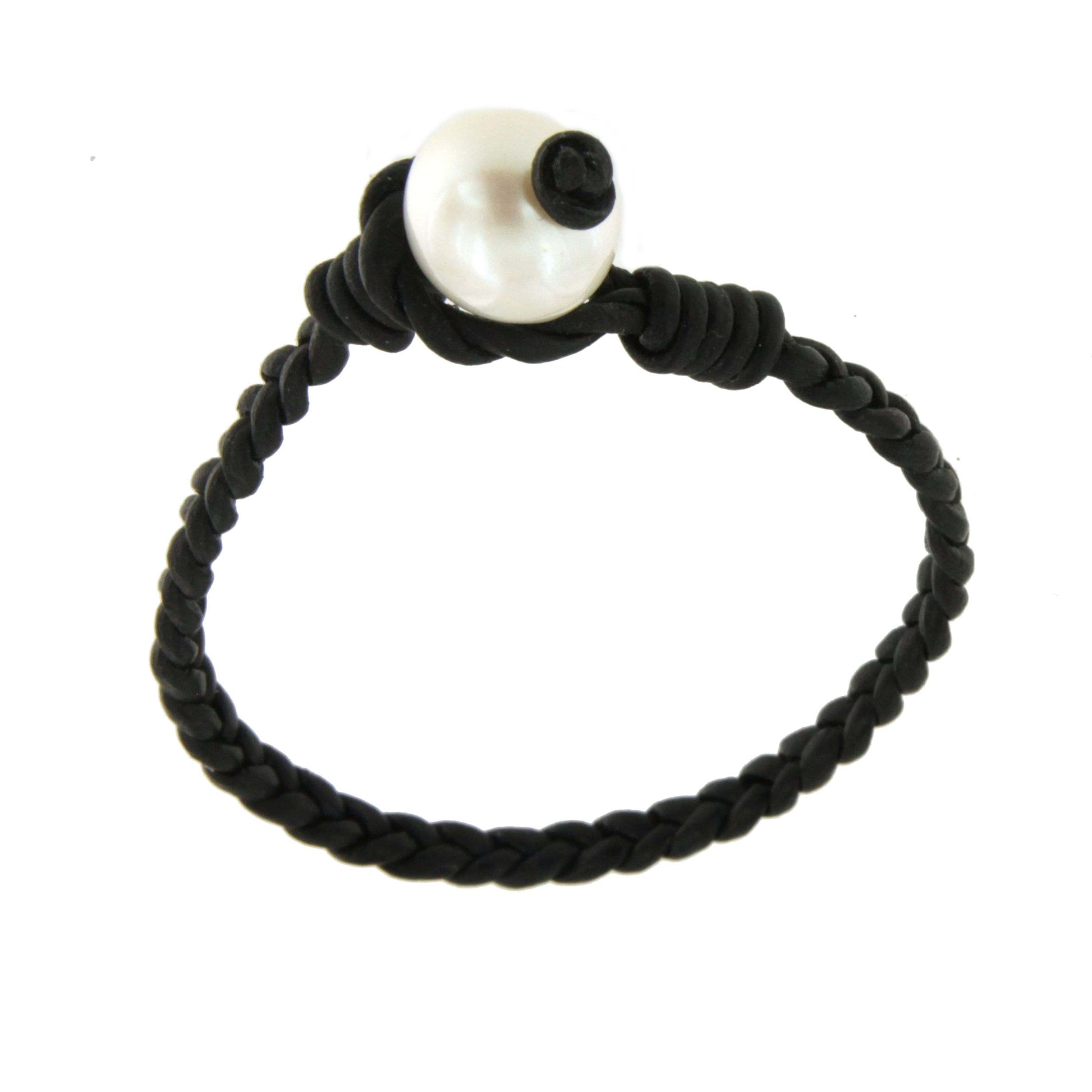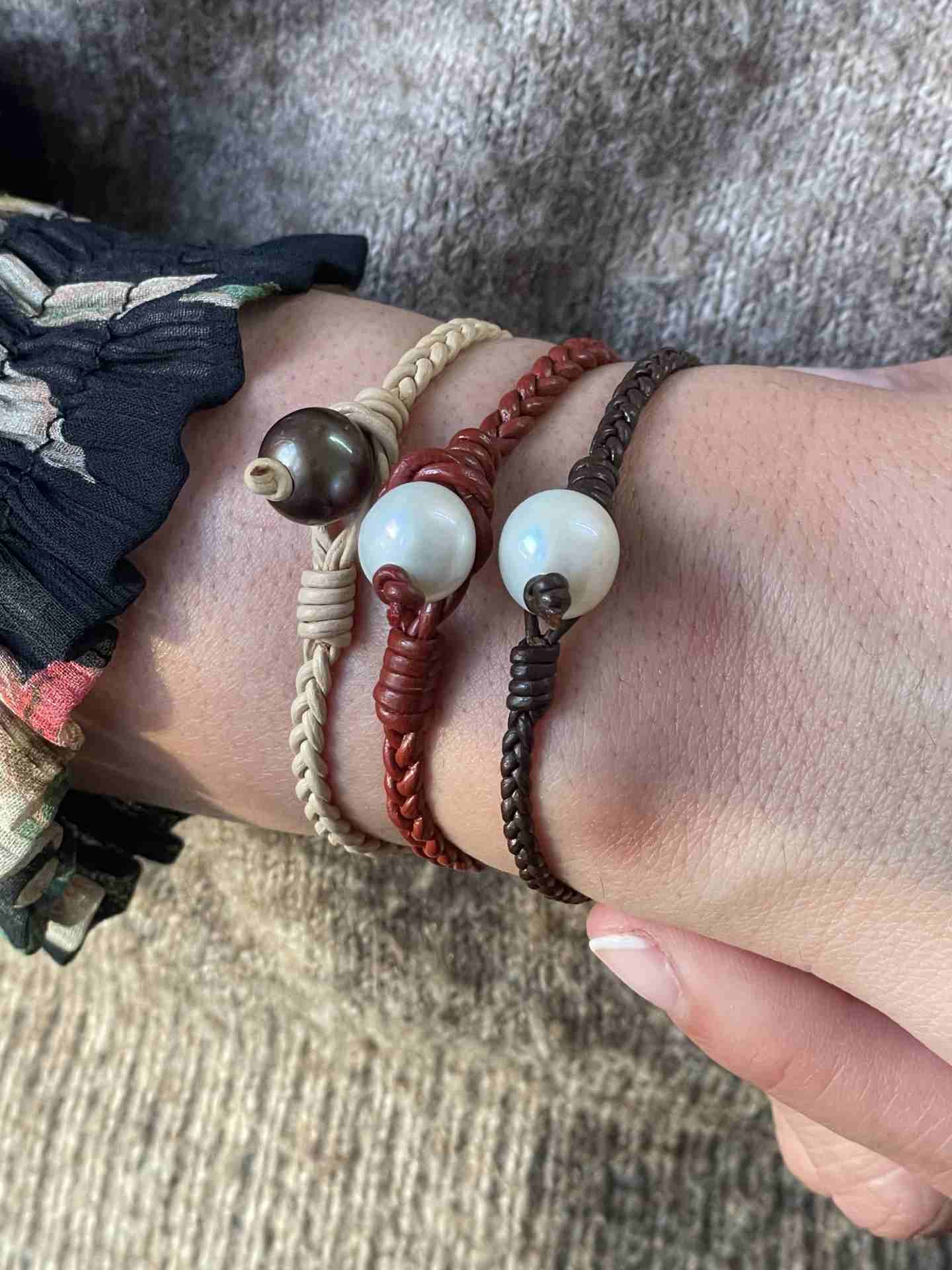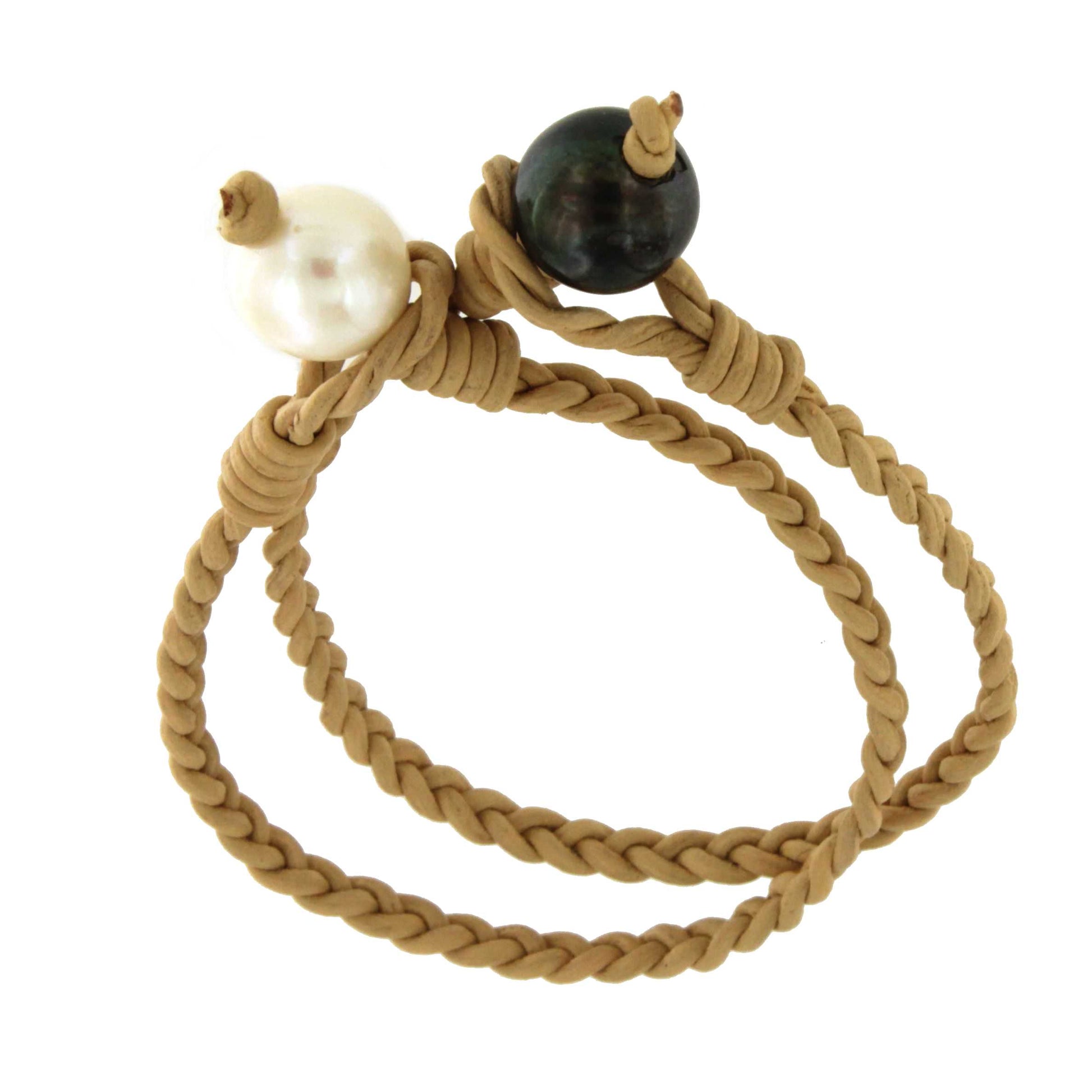 CABO is a very modern bracelet made with leather in different colors with a braid that ends in a loop-like pass that holds an Indonesian pearl.