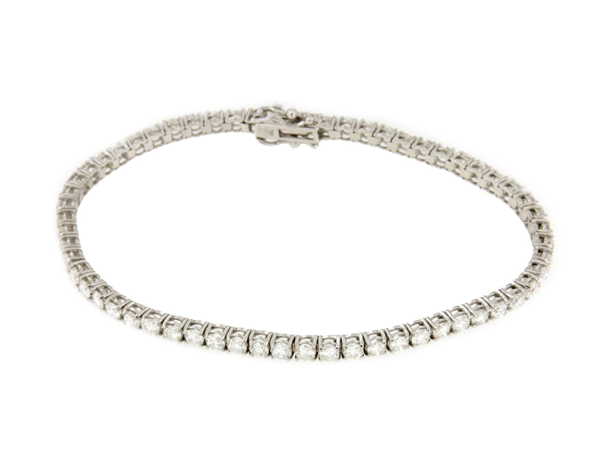 CHERBOURG is a rivière-style bracelet with diamonds set in four prongs and finished in 18-karat white gold . Available in two sizes.