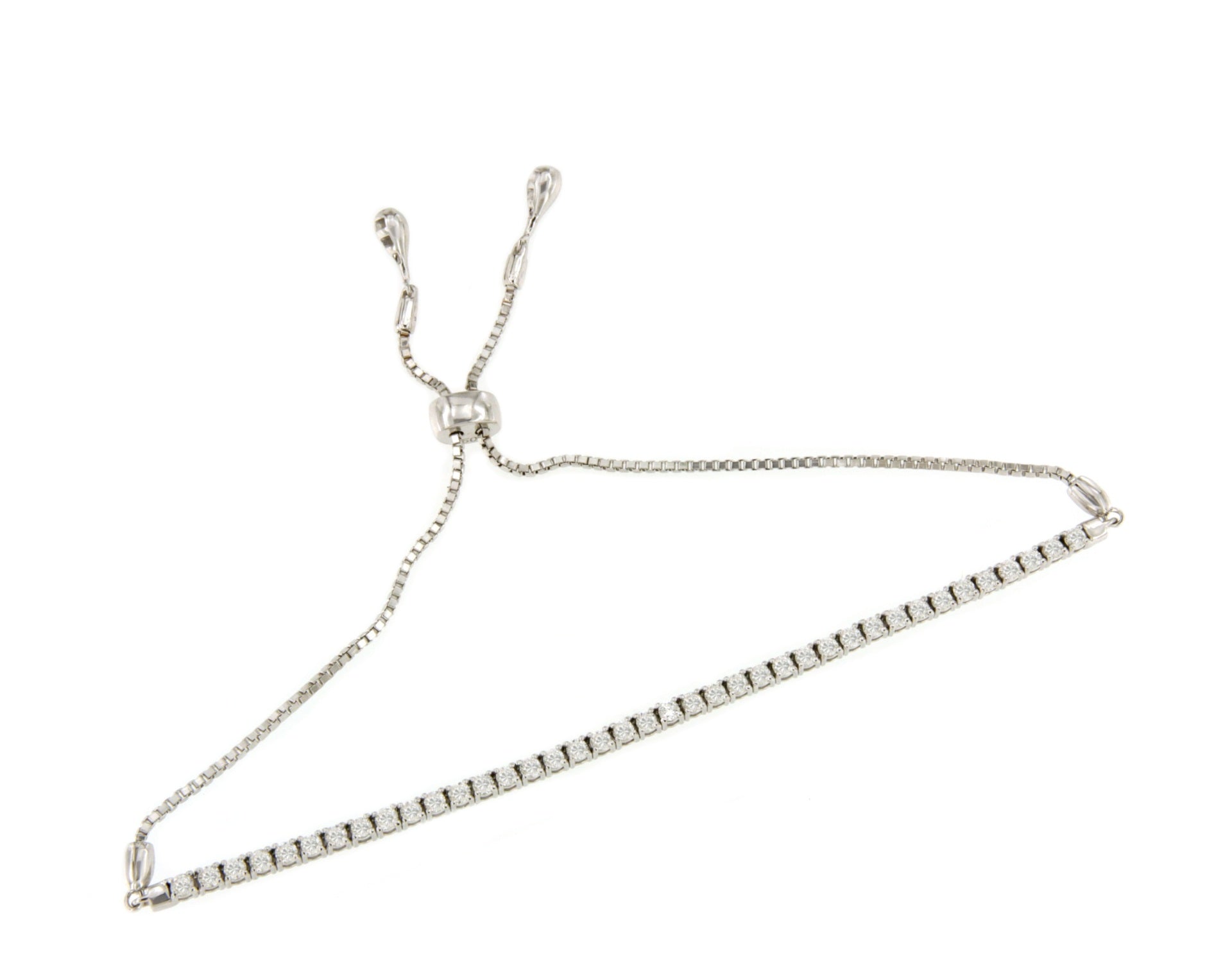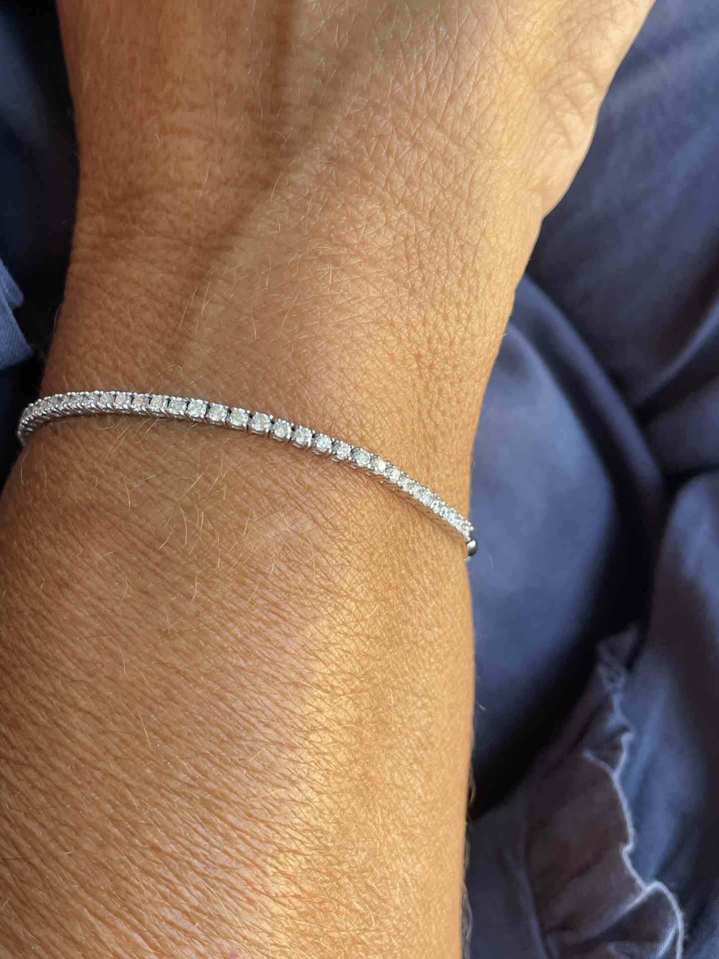 NARBONNE , a delicate rivière-style bracelet with diamonds set in prongs, adjustable to the wrist , very fashionable. It is made of 18-karat white gold .