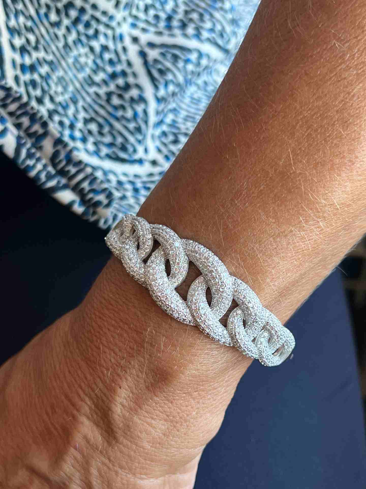 The ESTONIA bracelet stands out for its stunning design of interlocking links in sterling silver and adorned with fine cubic zirconias that add a spectacular sparkle.