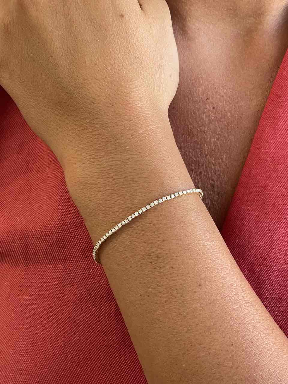 ZEZENA is a classic-style diamond rivière bracelet in 18-karat yellow gold, set in claws. Its delicate design makes it a piece you'll never want to take off.