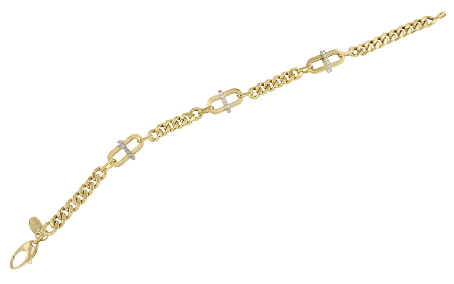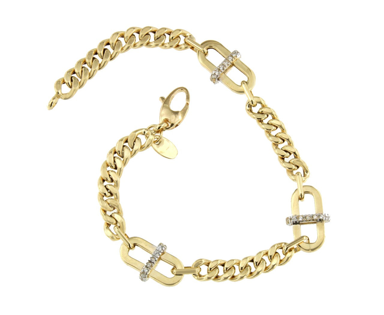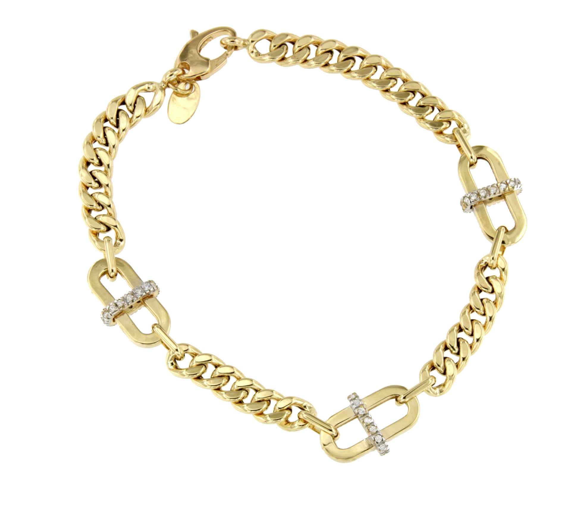 SINTRA is a classic curb bracelet , with rhodium-plated white spacers and cubic zirconia , all mounted in 18-karat yellow gold.