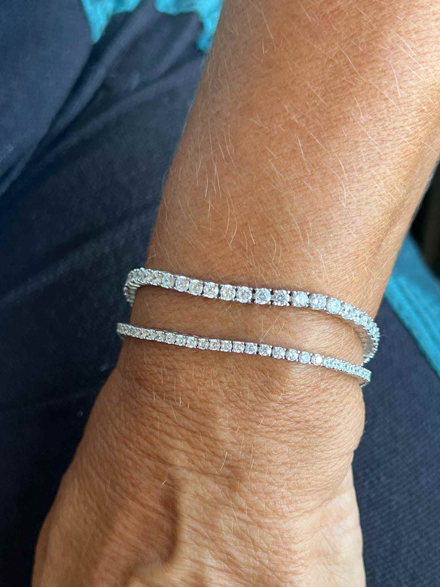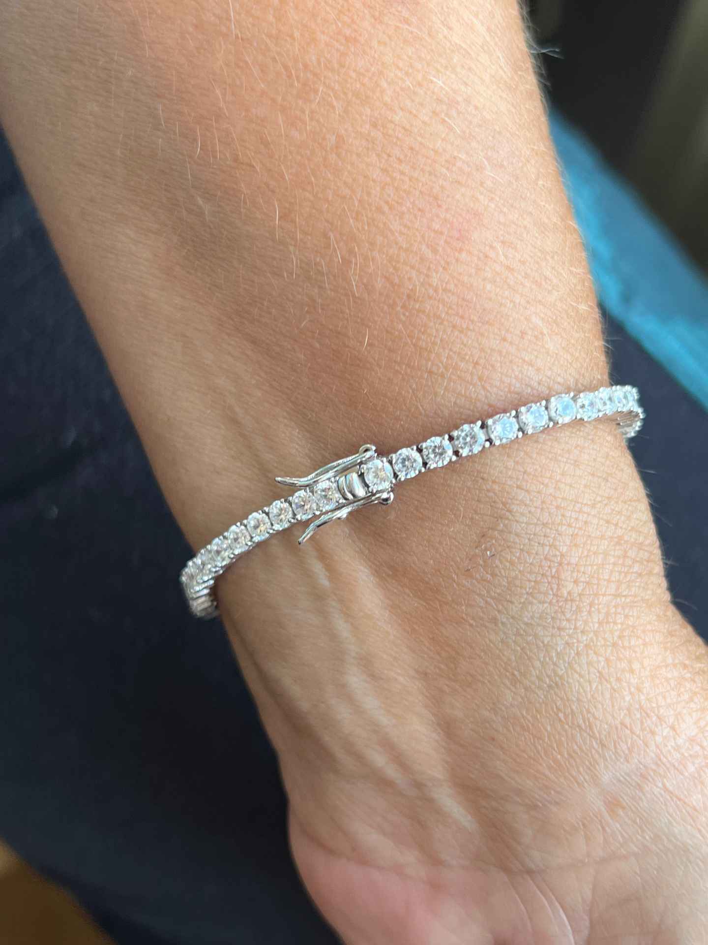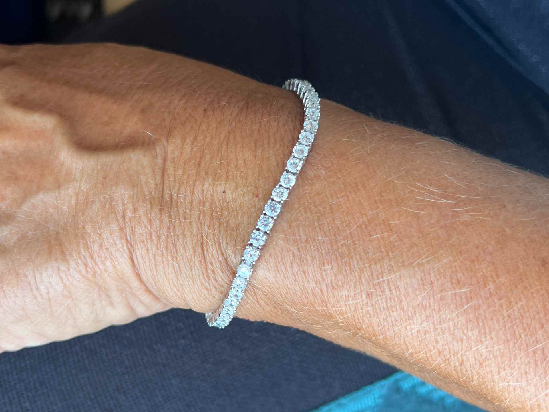Crafted from sterling silver and rhodium-plated, this rivière-style bracelet is the perfect accessory. Available in three lengths—17, 18, and 19 cm —its timeless design adds a touch of sophistication and versatility for an elegant look.