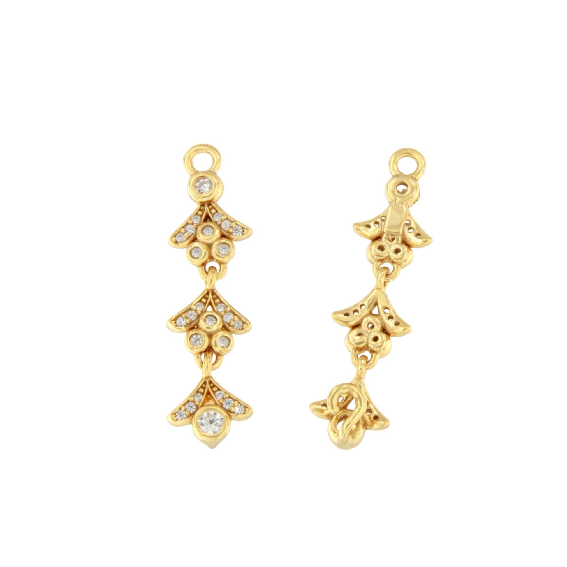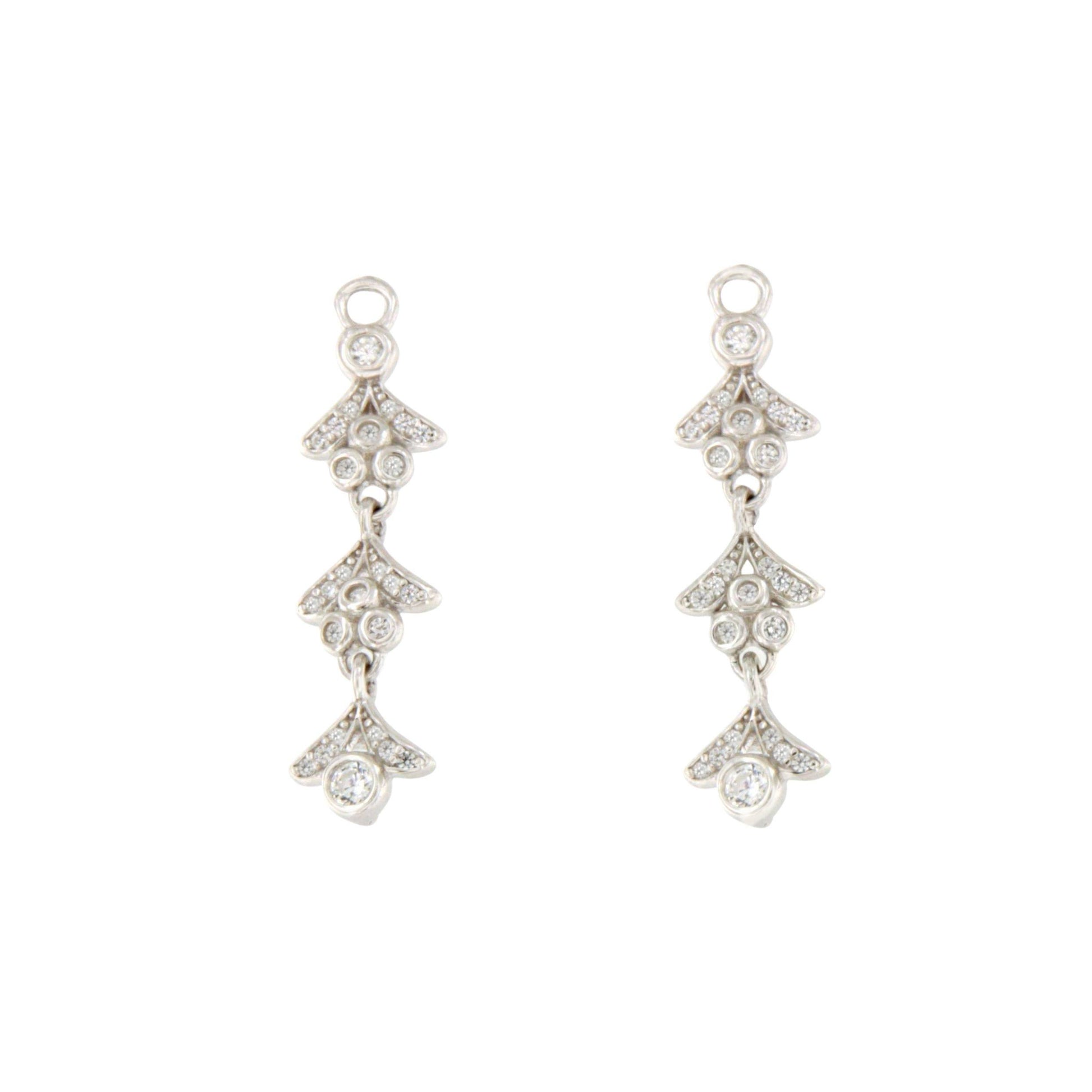 Elaborados en plata de ley con circonitas, estos alargadores aportan un brillo sutil y refinado. Su estilo romántico, inspirado en hojas que caen, añade un toque de elegancia natural que realza cualquier pendiente desmontable.