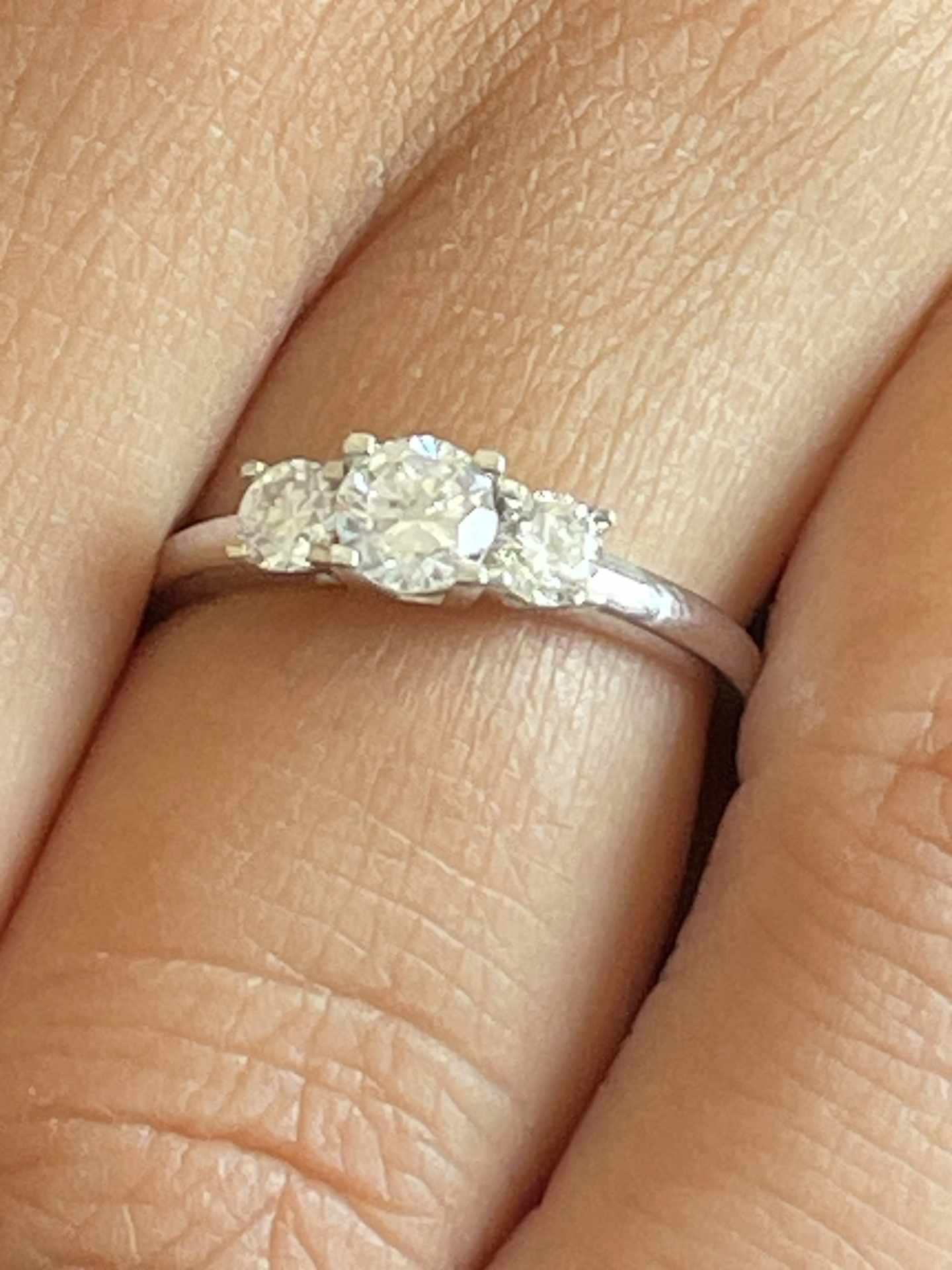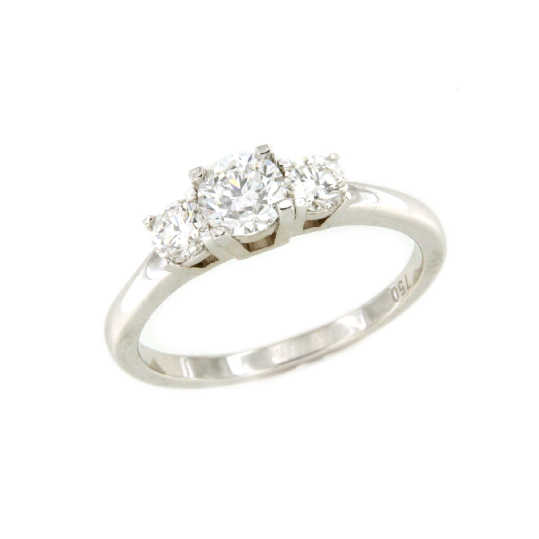 ANNECY, precioso tresillo de diamantes talla brillante montados sobre una montura de diseño clásico de 4 garras. Esta realizada en oro blanco de 18 kilates.