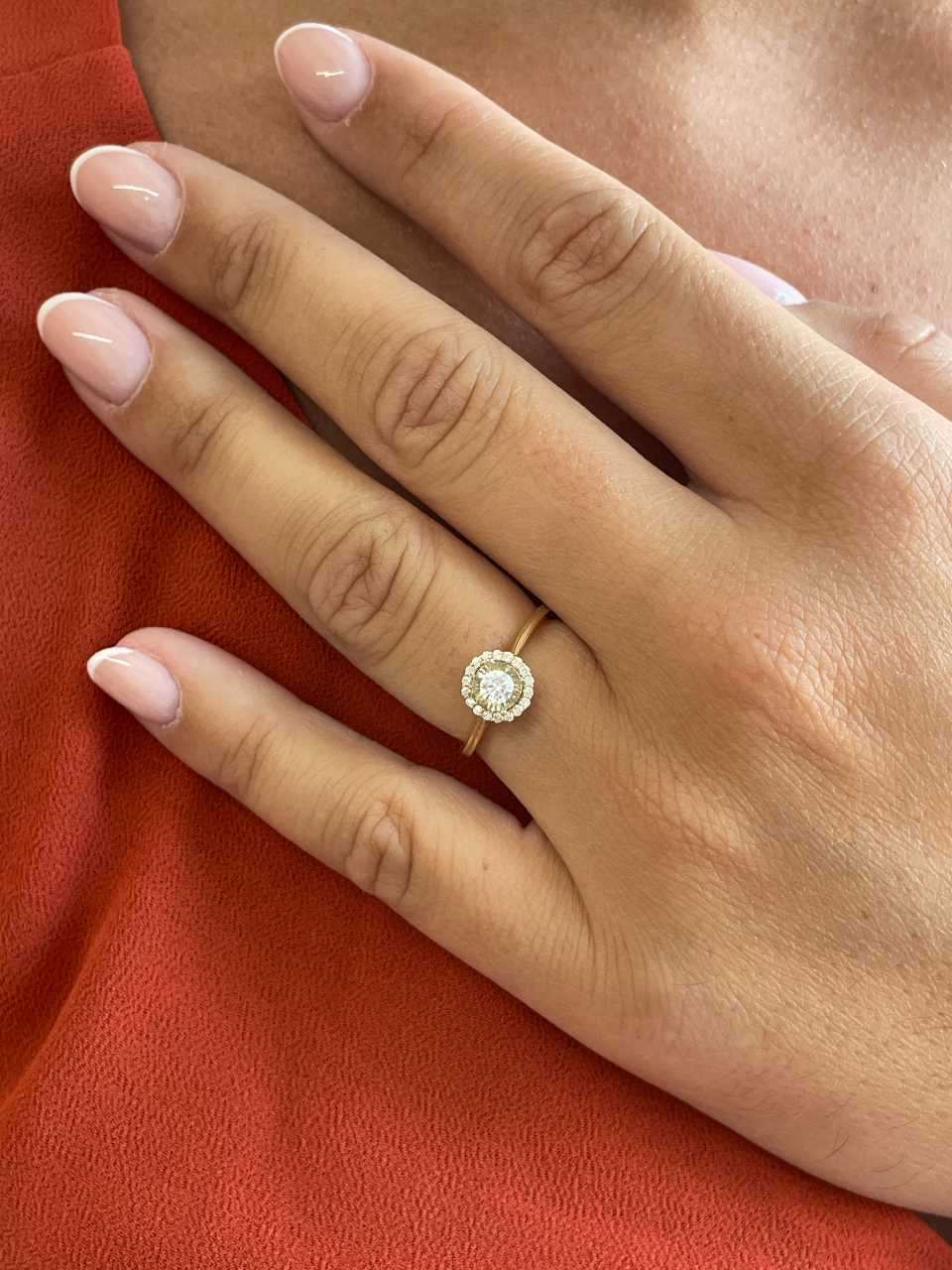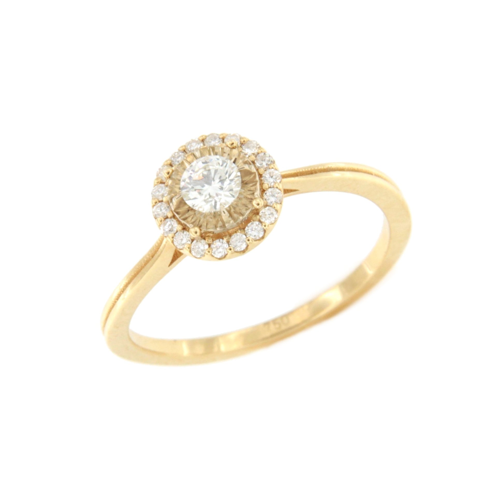 Anillo MANGABA solitario roseta con diamantes en oro amarillo de 18 ktes.