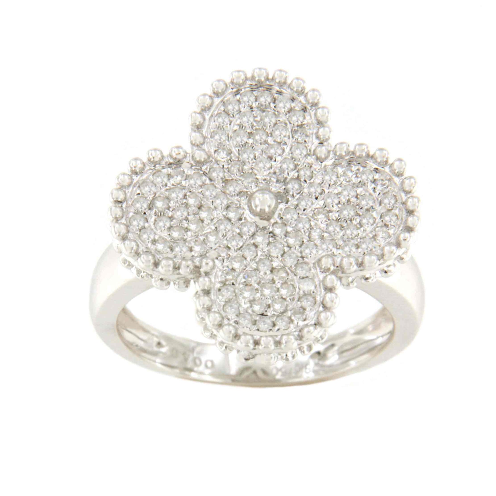 RENTERIA, es una anillo con forma de trebol, engastado con brillantes en pave muy del estilo actual y realizado en oro blanco de 18 kilates.