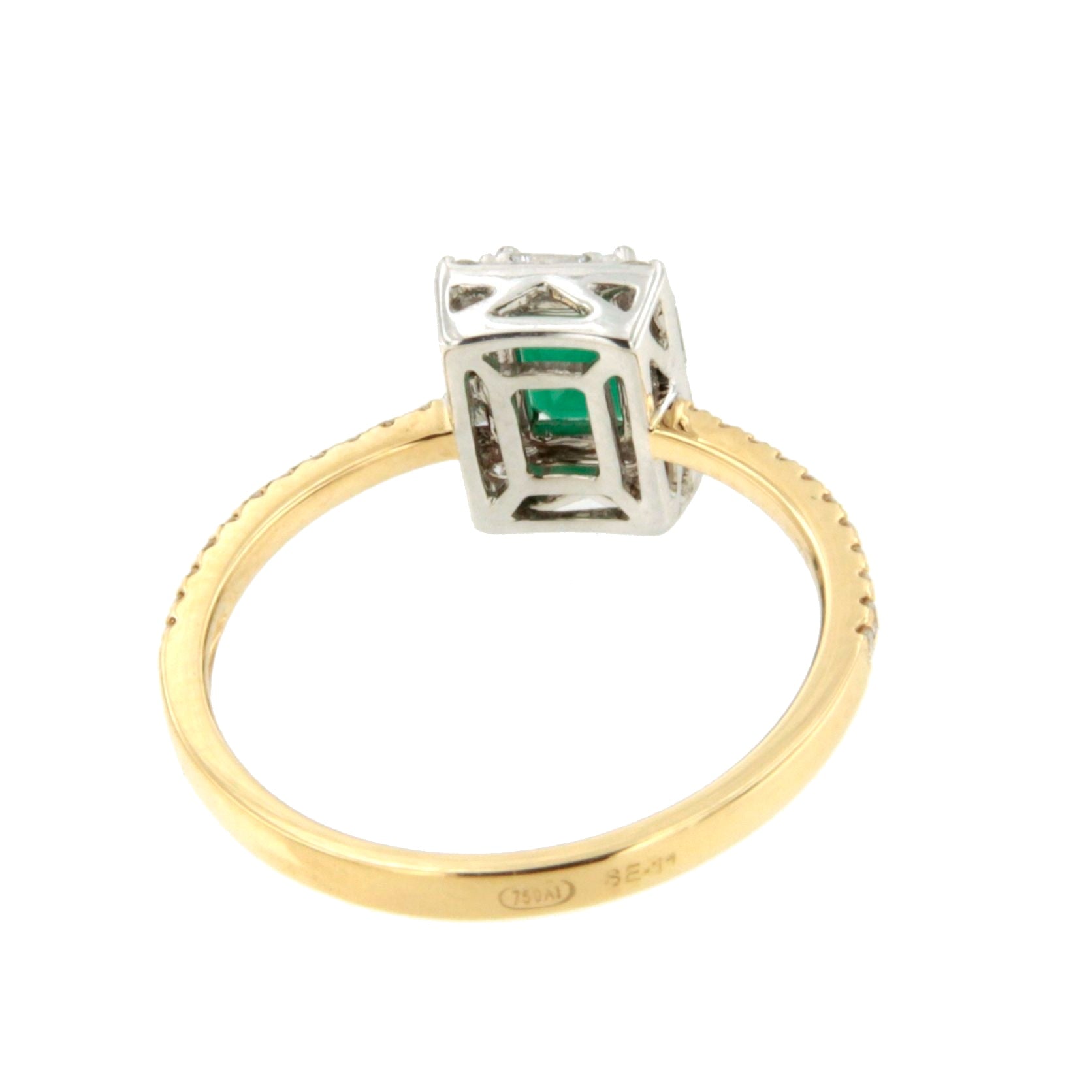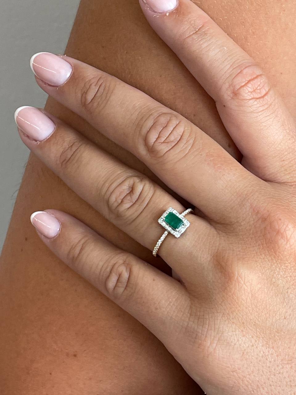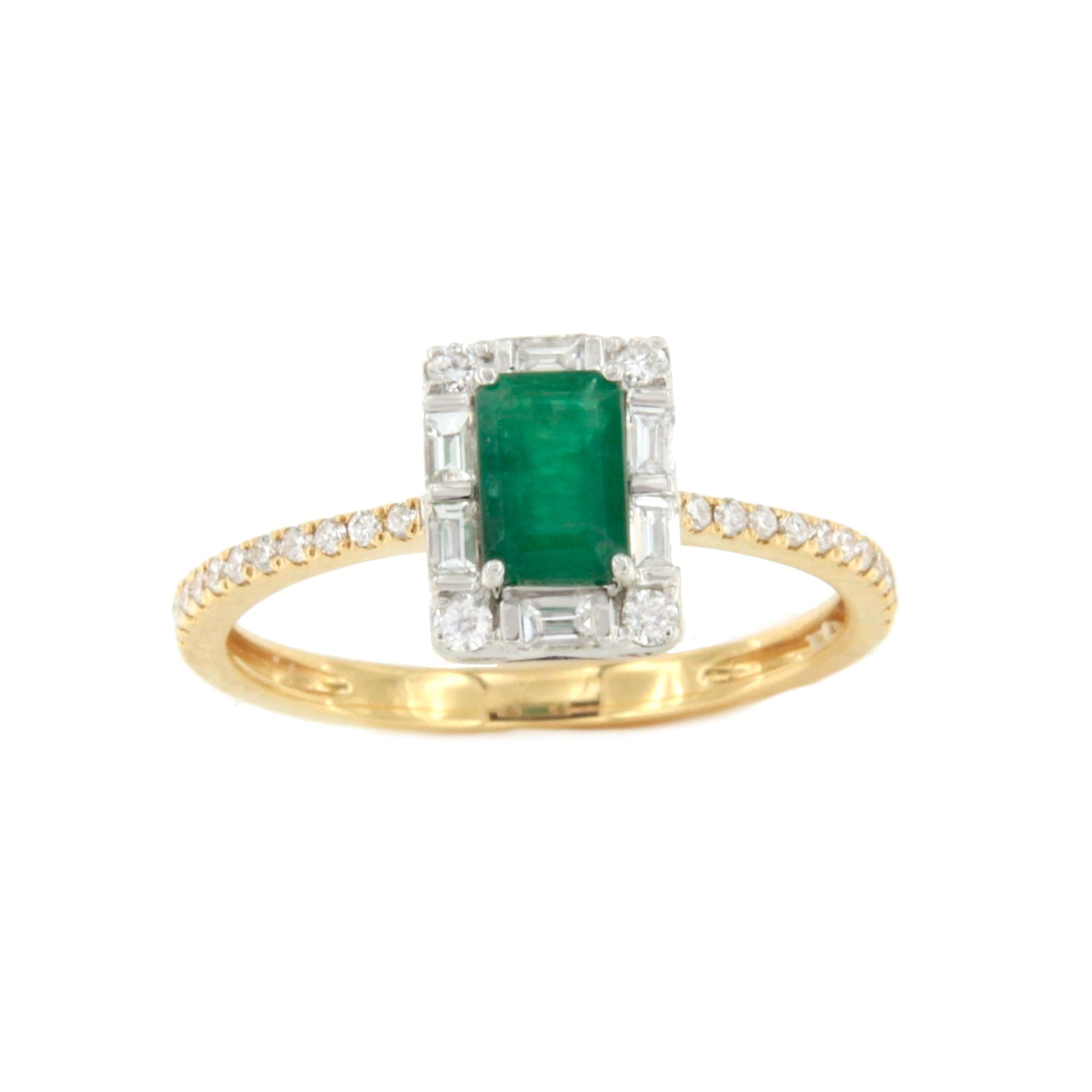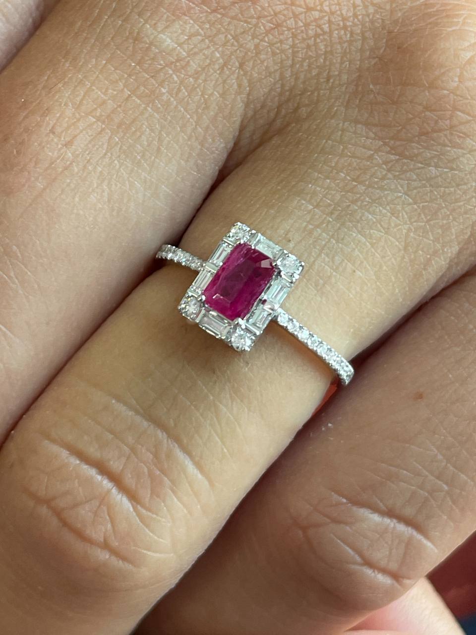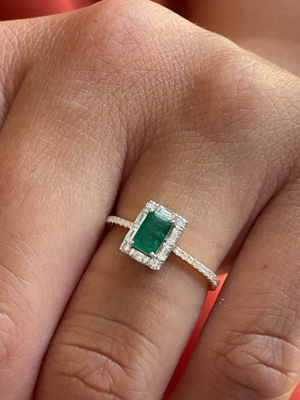 TAMARINDO, es un anillo precioso, con un centro en esmeralda, rubie o zafiro en talla esmeralda y diamantes talla baguettes con brillantes en el brazo . Está realizada en oro blanco o amarillo de 18 kilates.