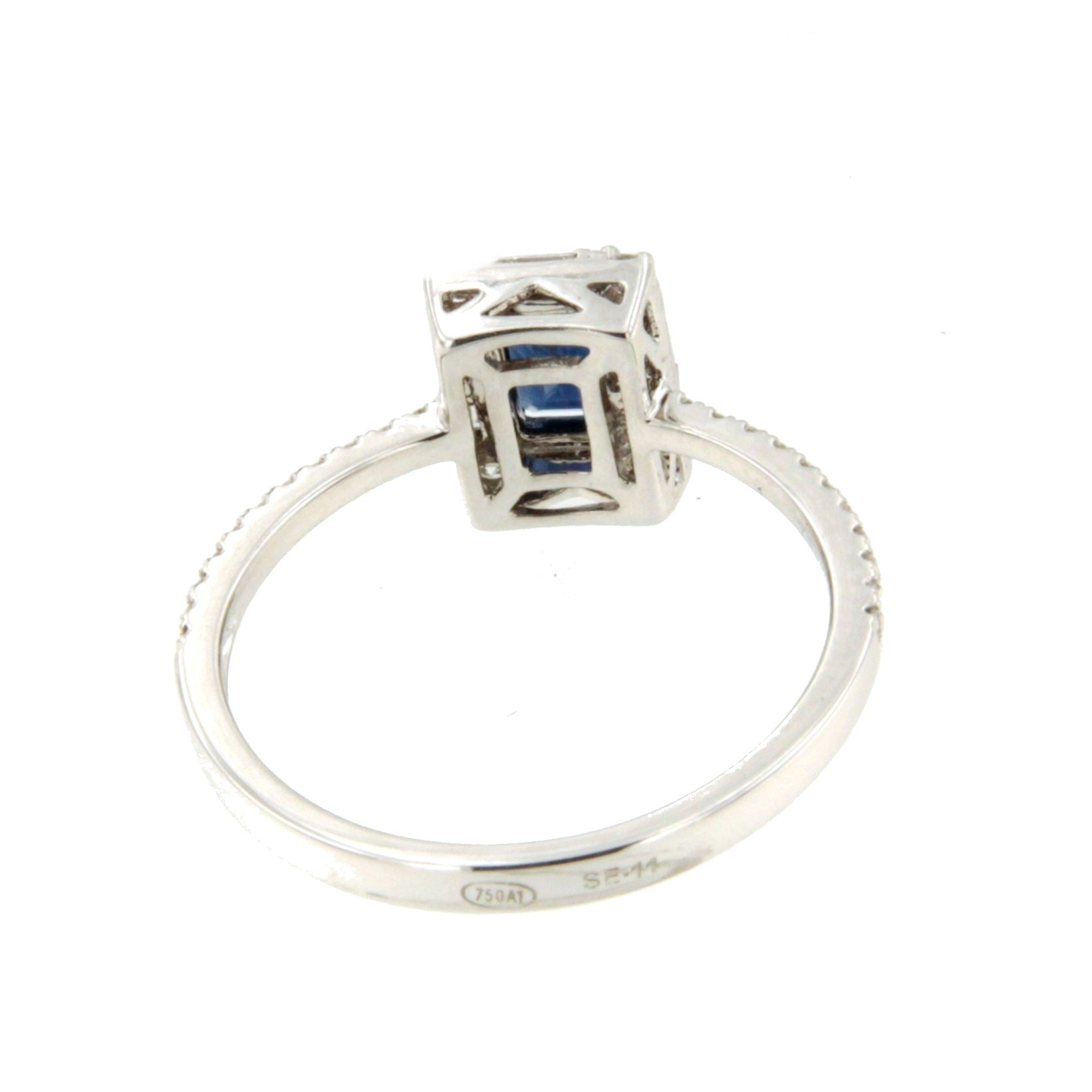 Anillo TAMARINDO roseta esmeralda, rubi o zafiro y brillantes oro blanco 18 ktes