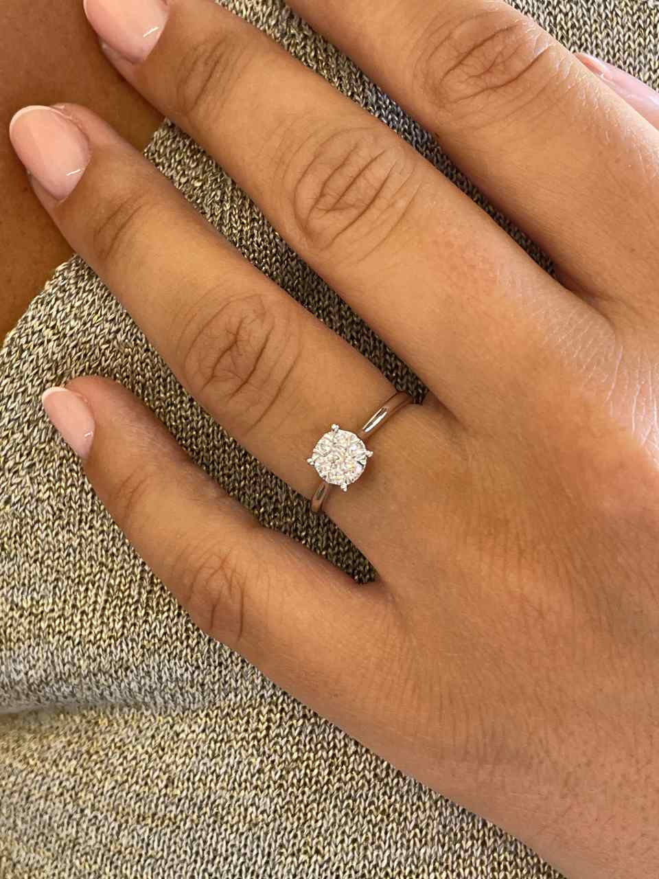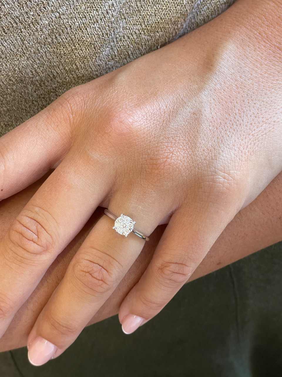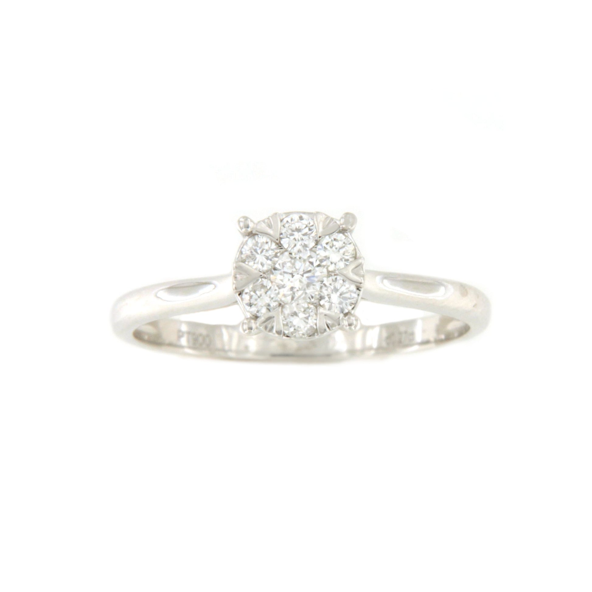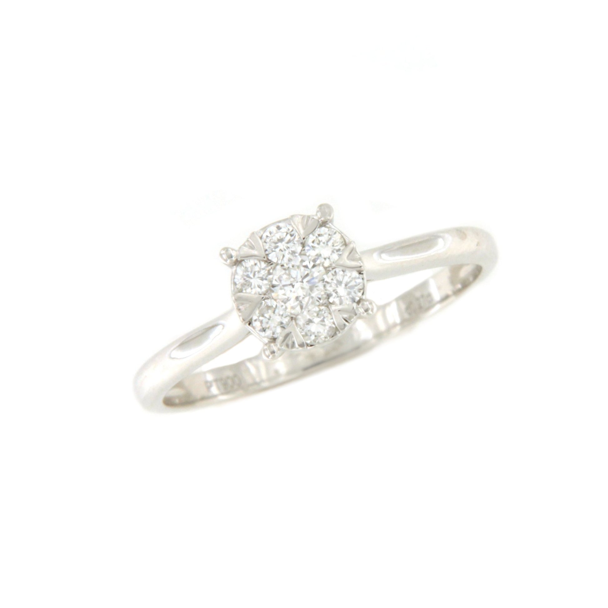 Anillo TEJOCOTE roseta con brillantes sobre 4 garras en oro blanco de 18 ktes
