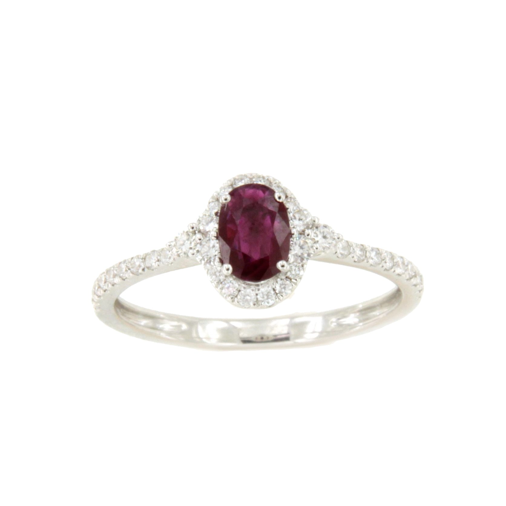 YANTEN, es un anillo de roseta, con un centro en esmeralda o rubie en talla oval y diamantes talla brillante en el brazo . Está realizada en oro blanco o amarillo de 18 kilates.