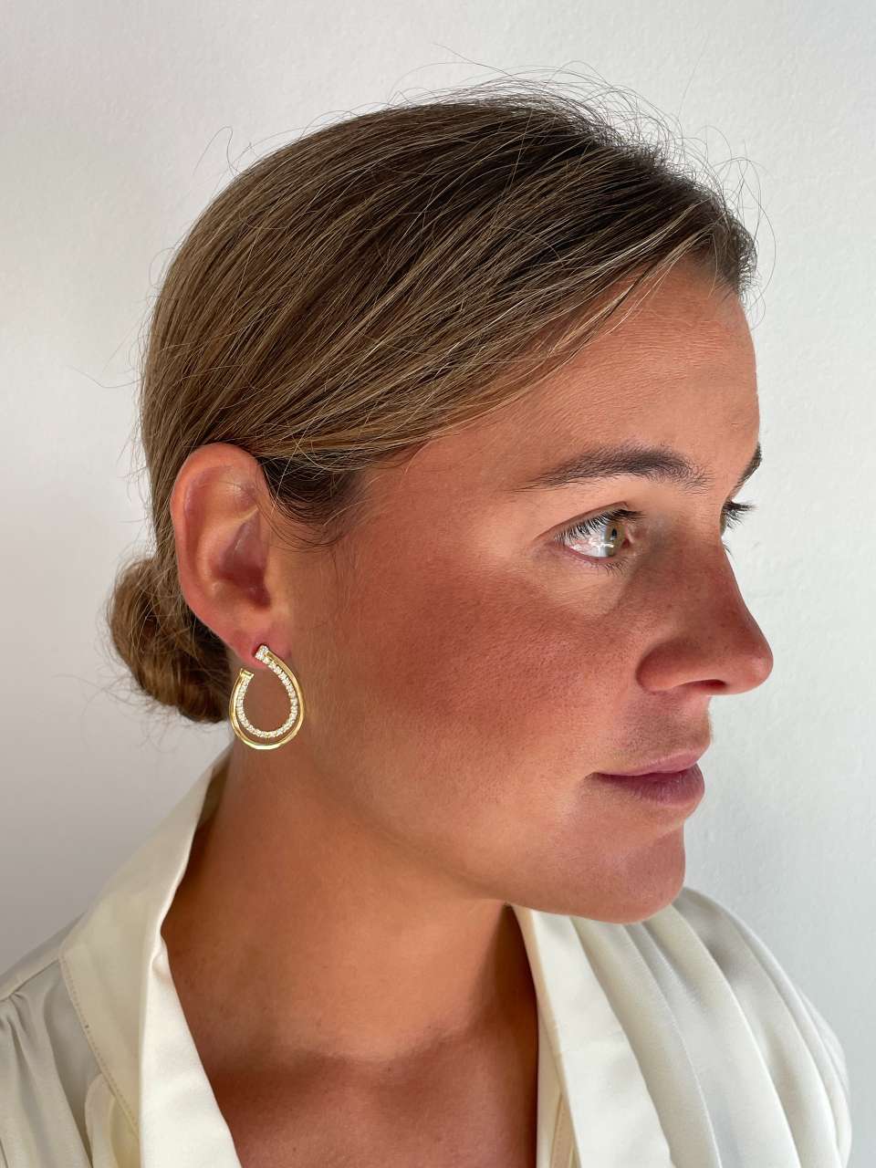 CONTADORA son unas argollas muy ligera, realizada en plata de primera ley, con baño de oro amarillo de 18 kilates, su diseño está compuesto lineas curvas y circonitas haciéndolas un diseño muy actual. Una pieza imprescindible para tu joyero y perfecta para llevar una noche con amigas o incluso, un evento especial .