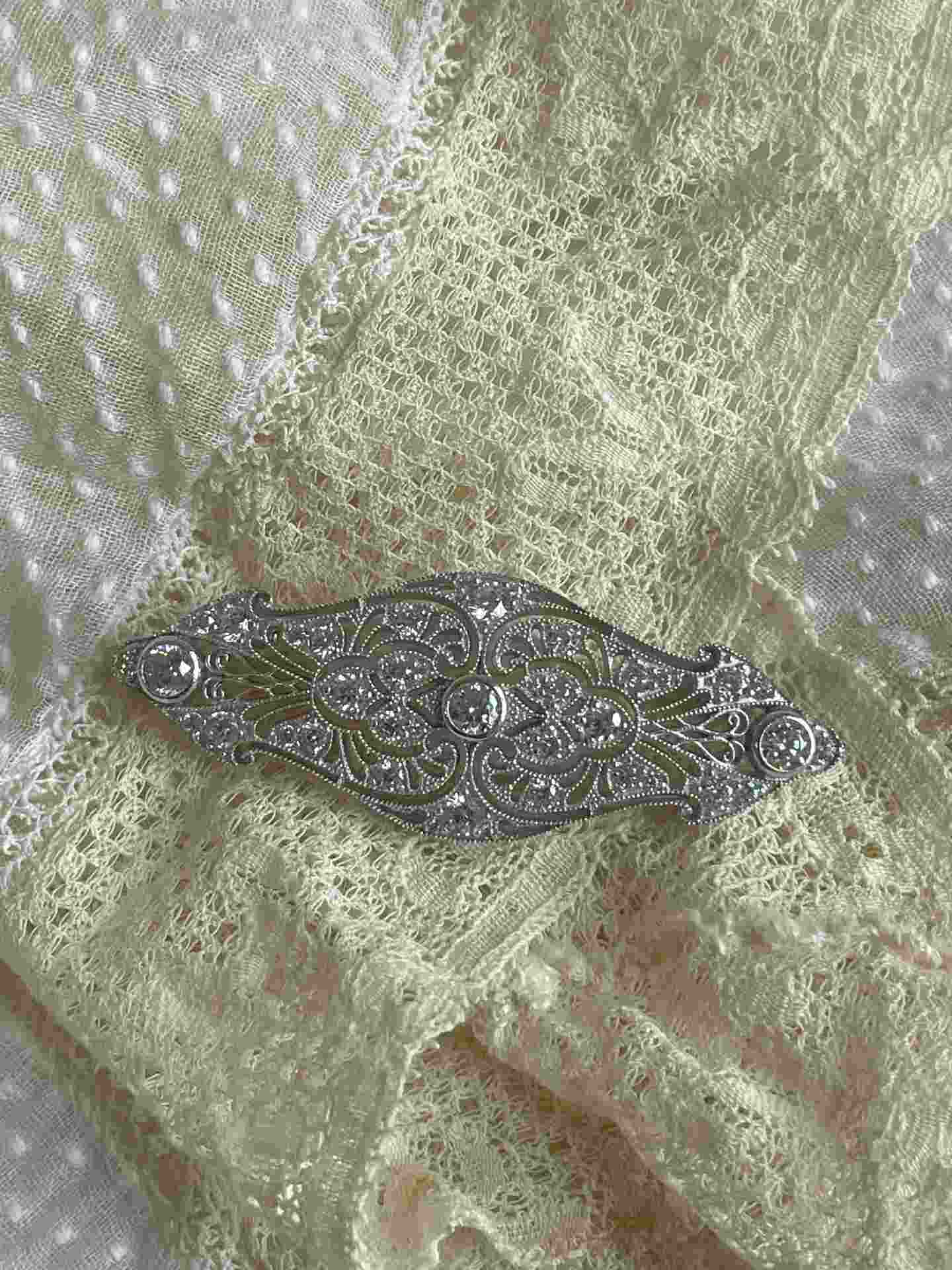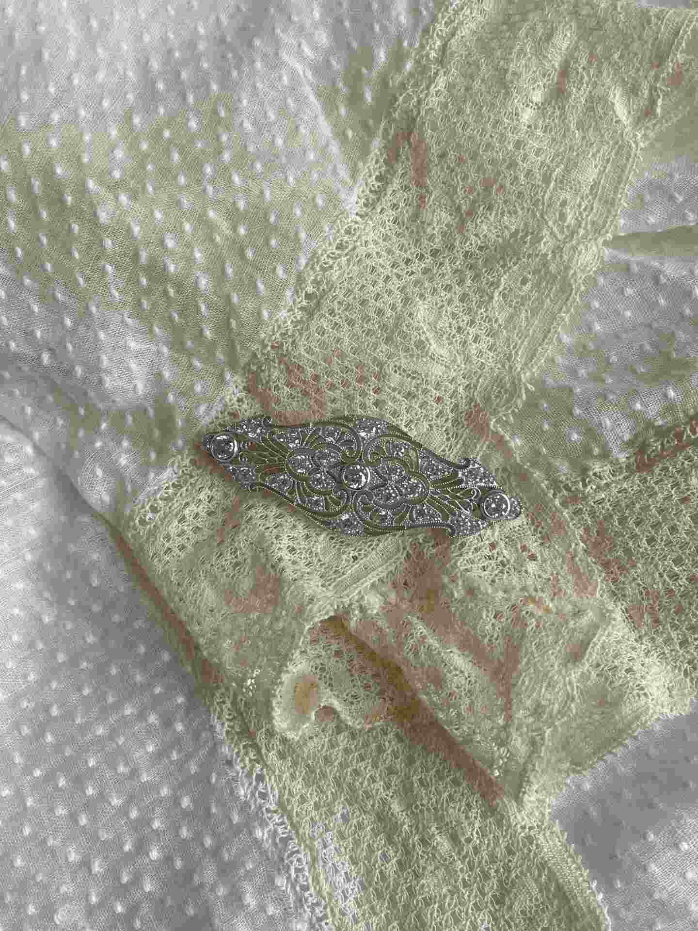 JARA es un precioso broche de plata de ley de 925 ml montado en circonitas y con el filo característico del estilo art deco . Es ideal para novias, madrinas,...