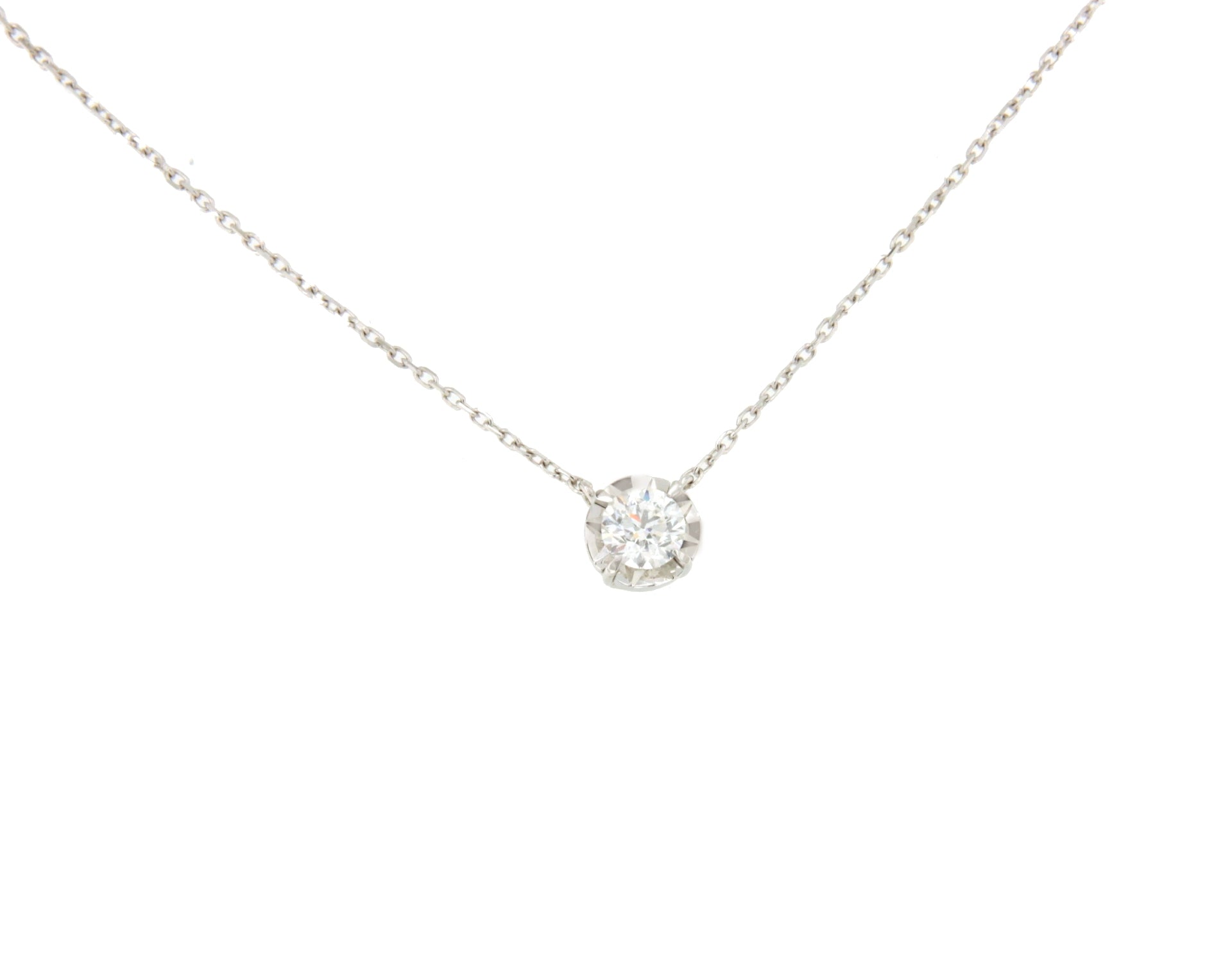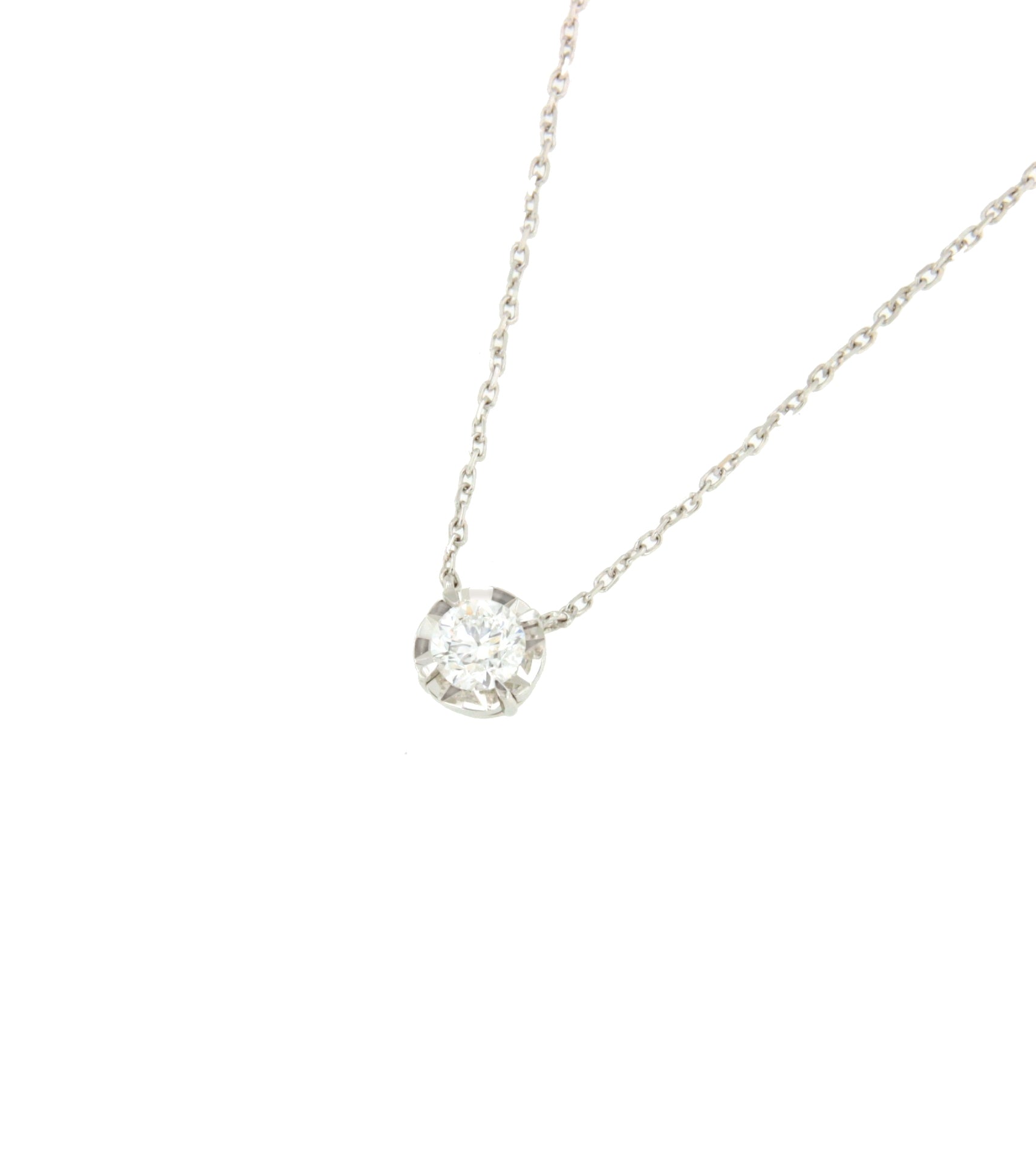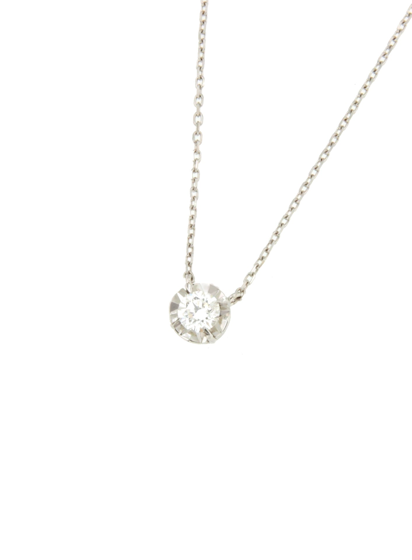 La gargantilla LINZ, es una fina cadena clásica de oro blanco de 18 Kilates, montada en 4 garras con un diamante solitario talla brillante engastado al centro sobre una base adiamantada. Es sencilla, actual e imprescindible.