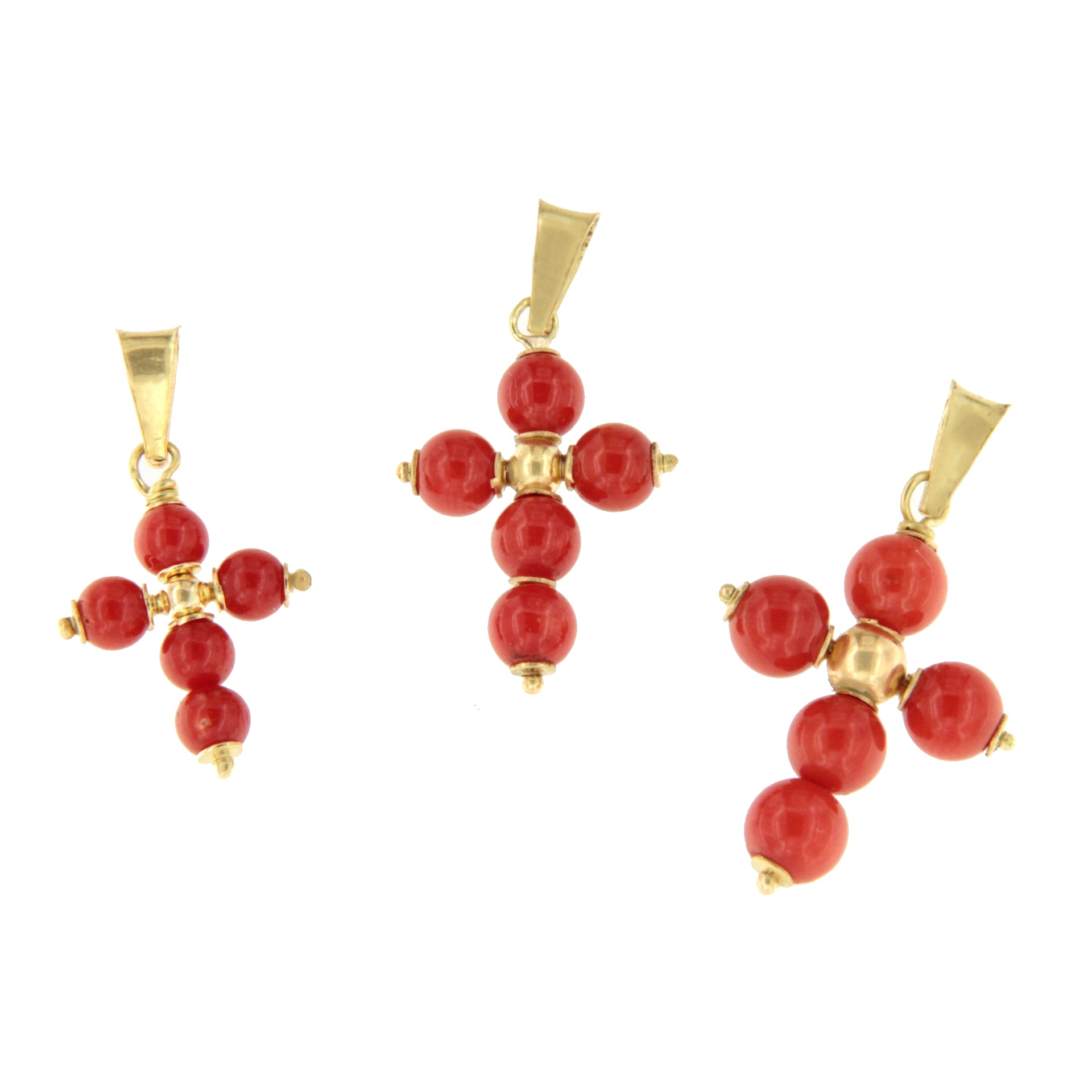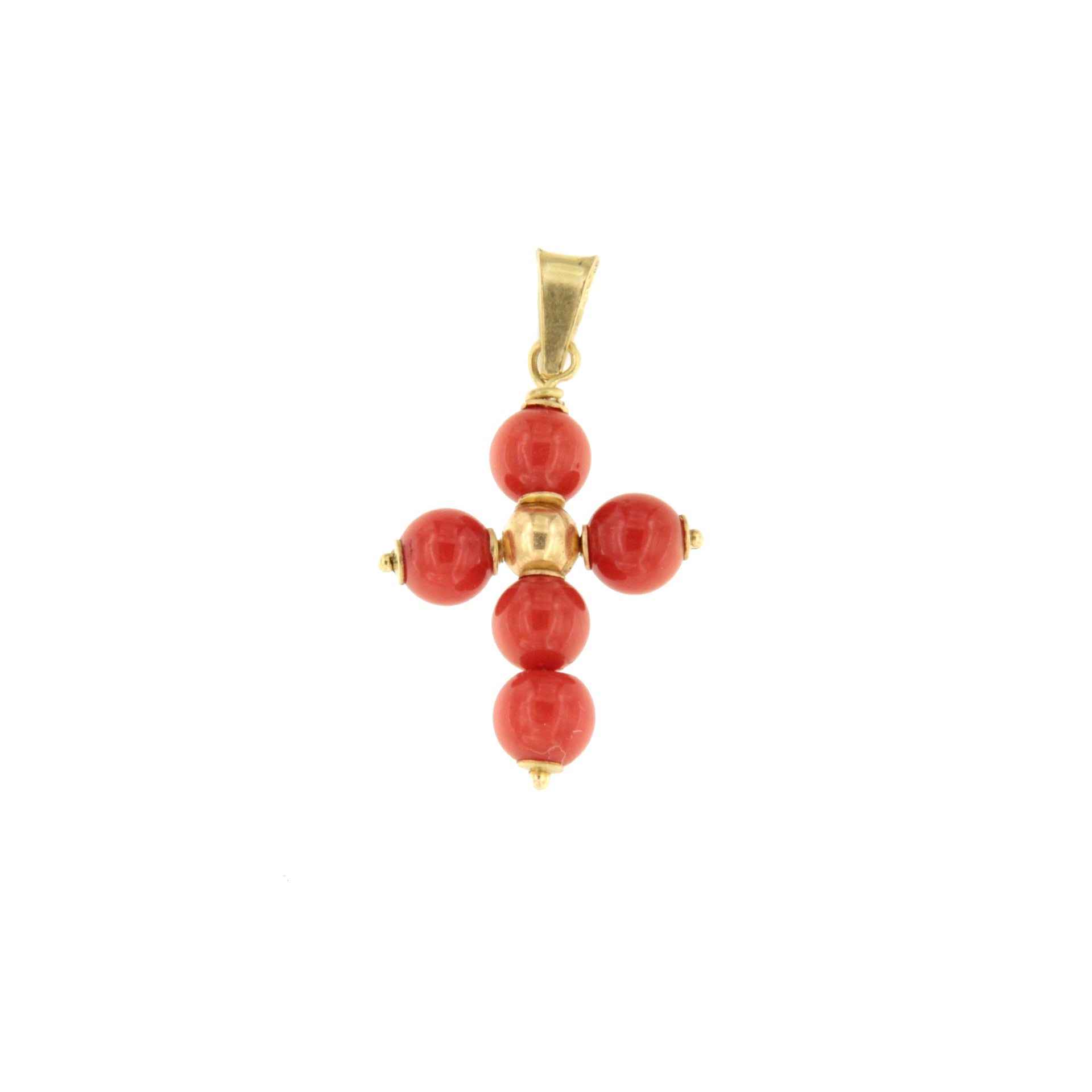 Colgante cruz FIJI de oro de 18 kilates y corales