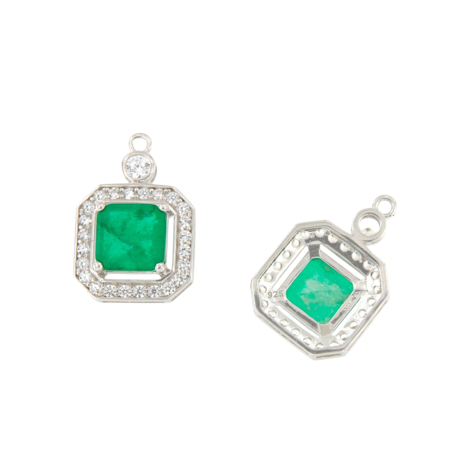 PARIA, son unos colgantes para nuestros pendientes desmontables en plata de ley con un diseño clásico en talla esmeralda. Ideales para quien busque aportar un toque de color a sus pendientes de una forma elegante y llamativa.