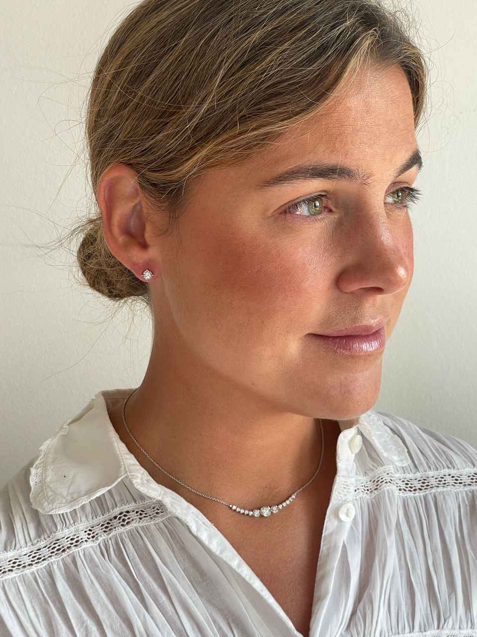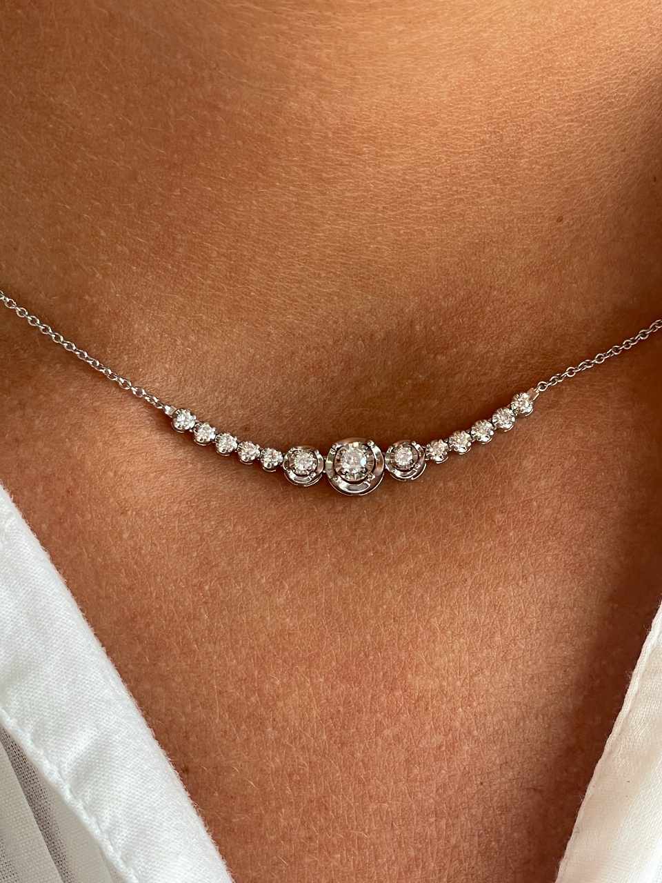 AKEE, gargantilla muy original y llevadera con un centros de 13 brillantes tipo riviere y unidos por una cadena clásica de oro blanco de 18 ktes.
