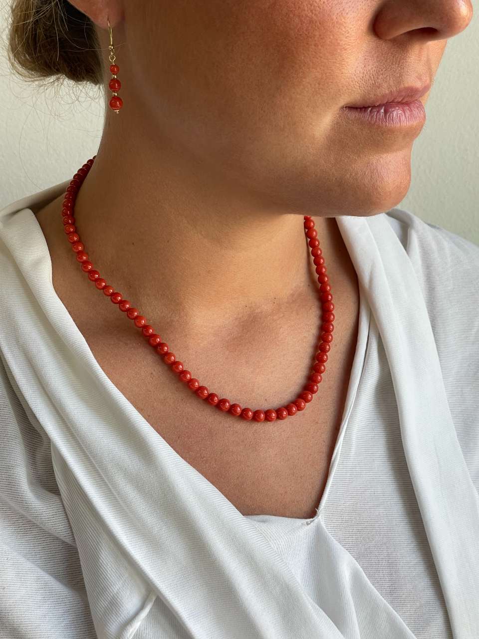 COMPAS, es una preciosa gargantilla en collar de coral, con corales en bolas engarzados con un cierre de oro amarillo de 18 kilates.