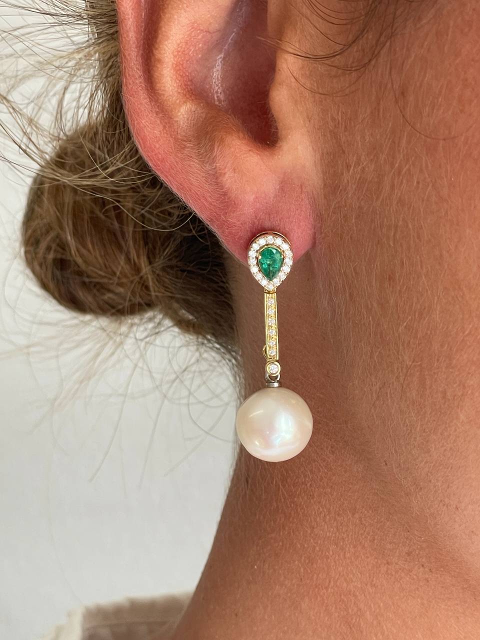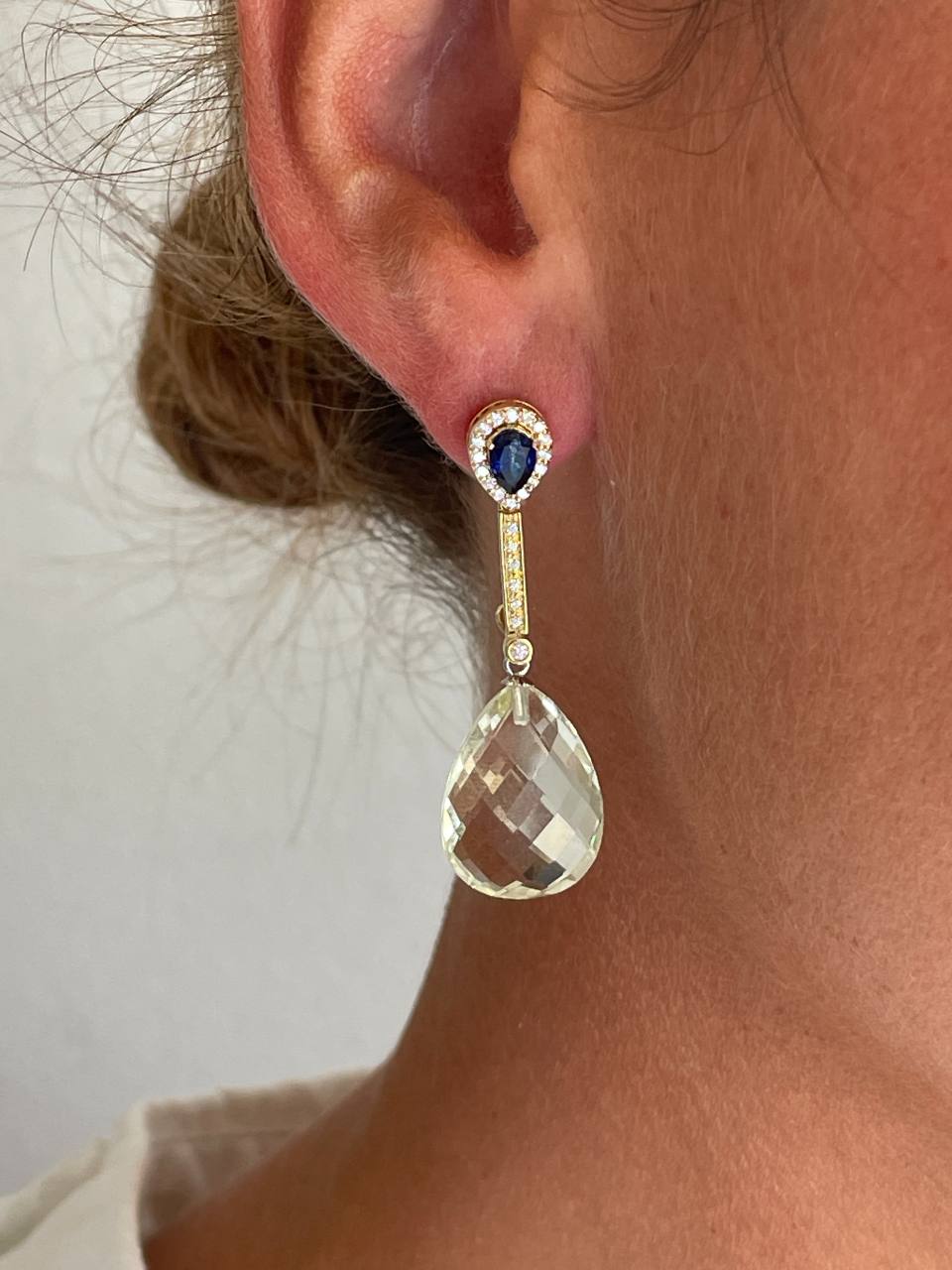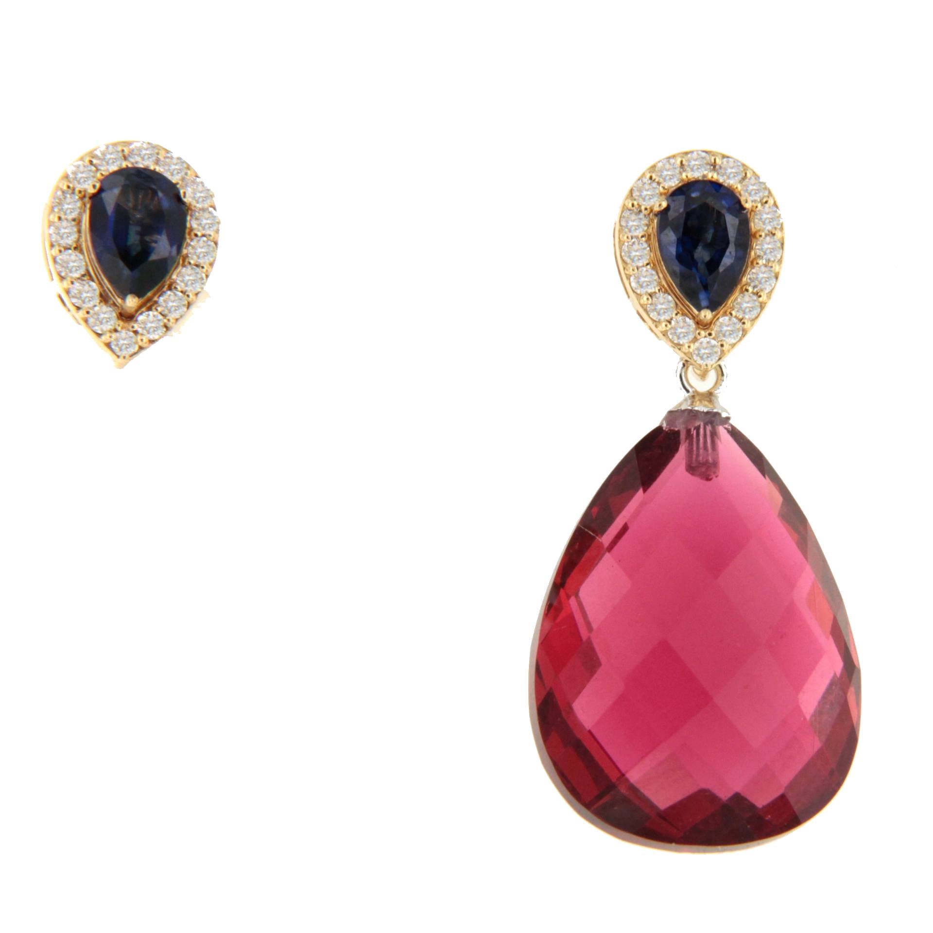 Pendiente KAZAN desmontables oro amarillo 18 ktes zafiros o esmeraldas y brillantes.